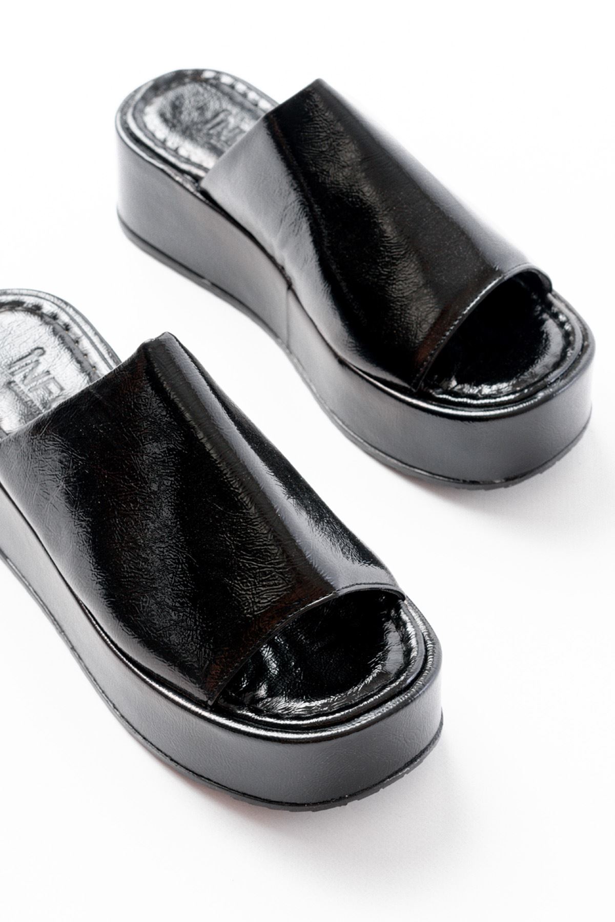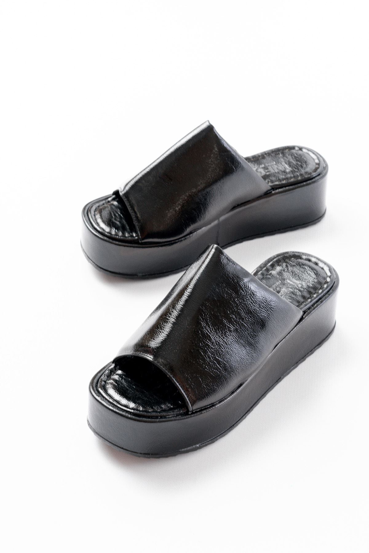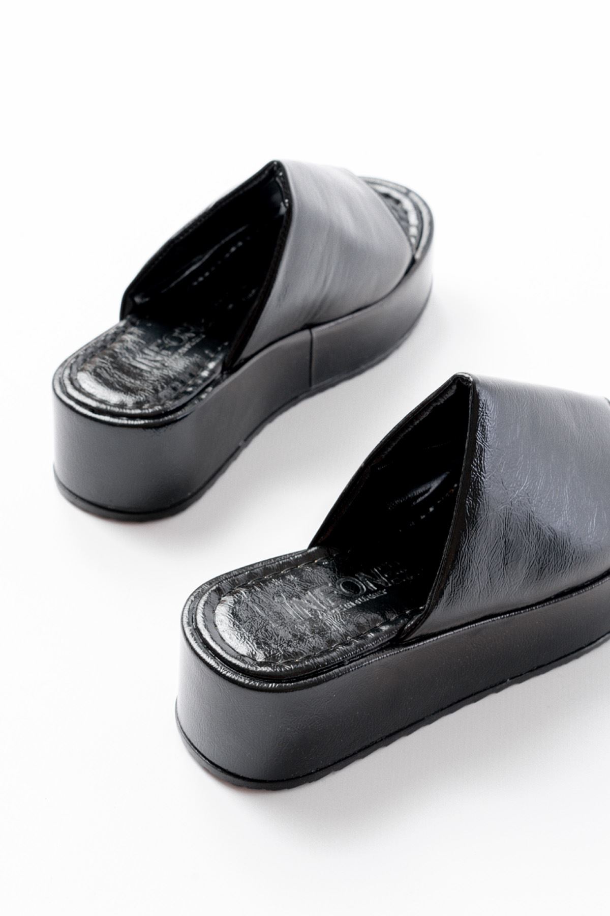 861-1011 Siyah Cam Kırığı Geniş Bantlı Dolgu Kadın Terlik