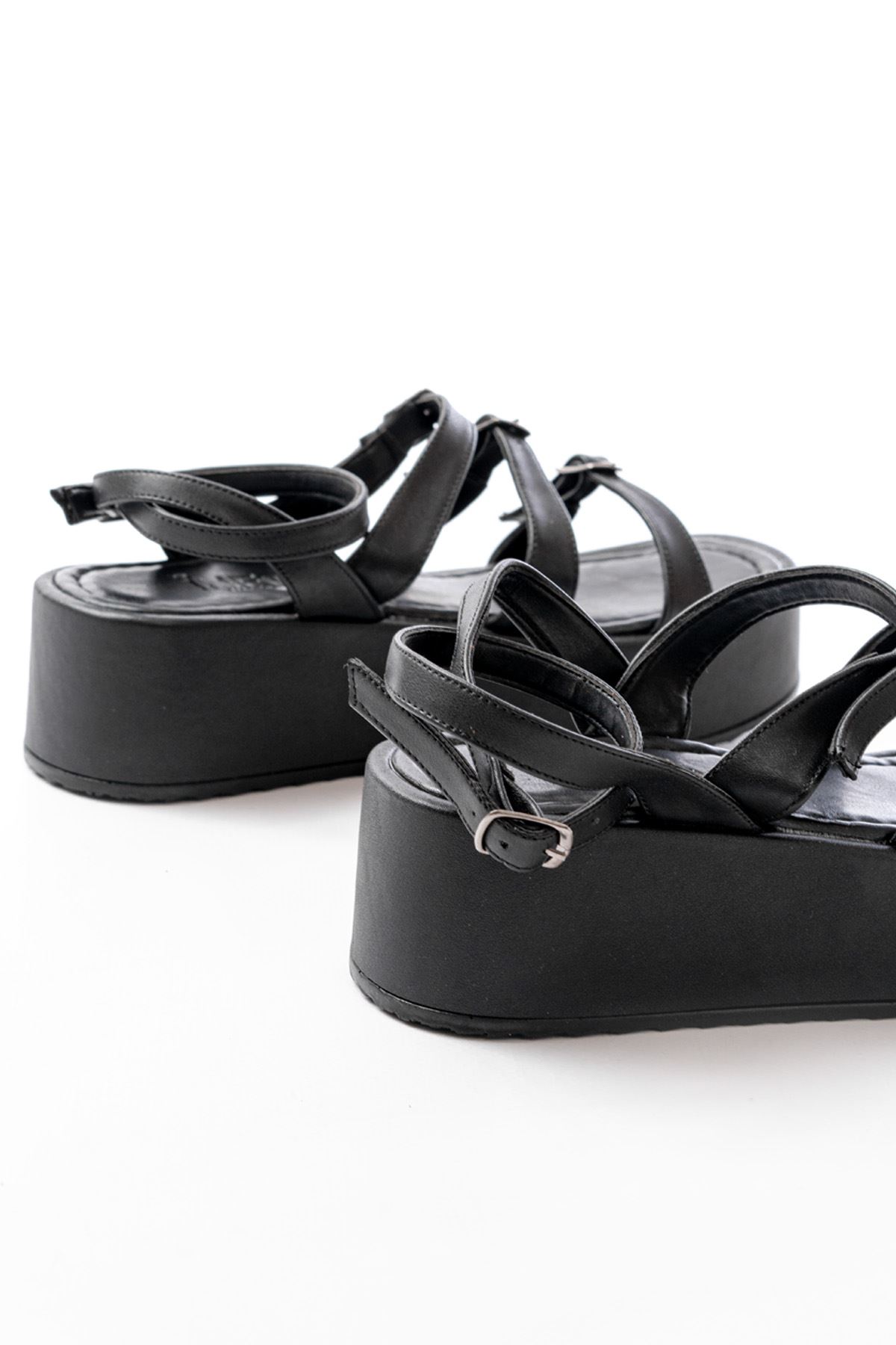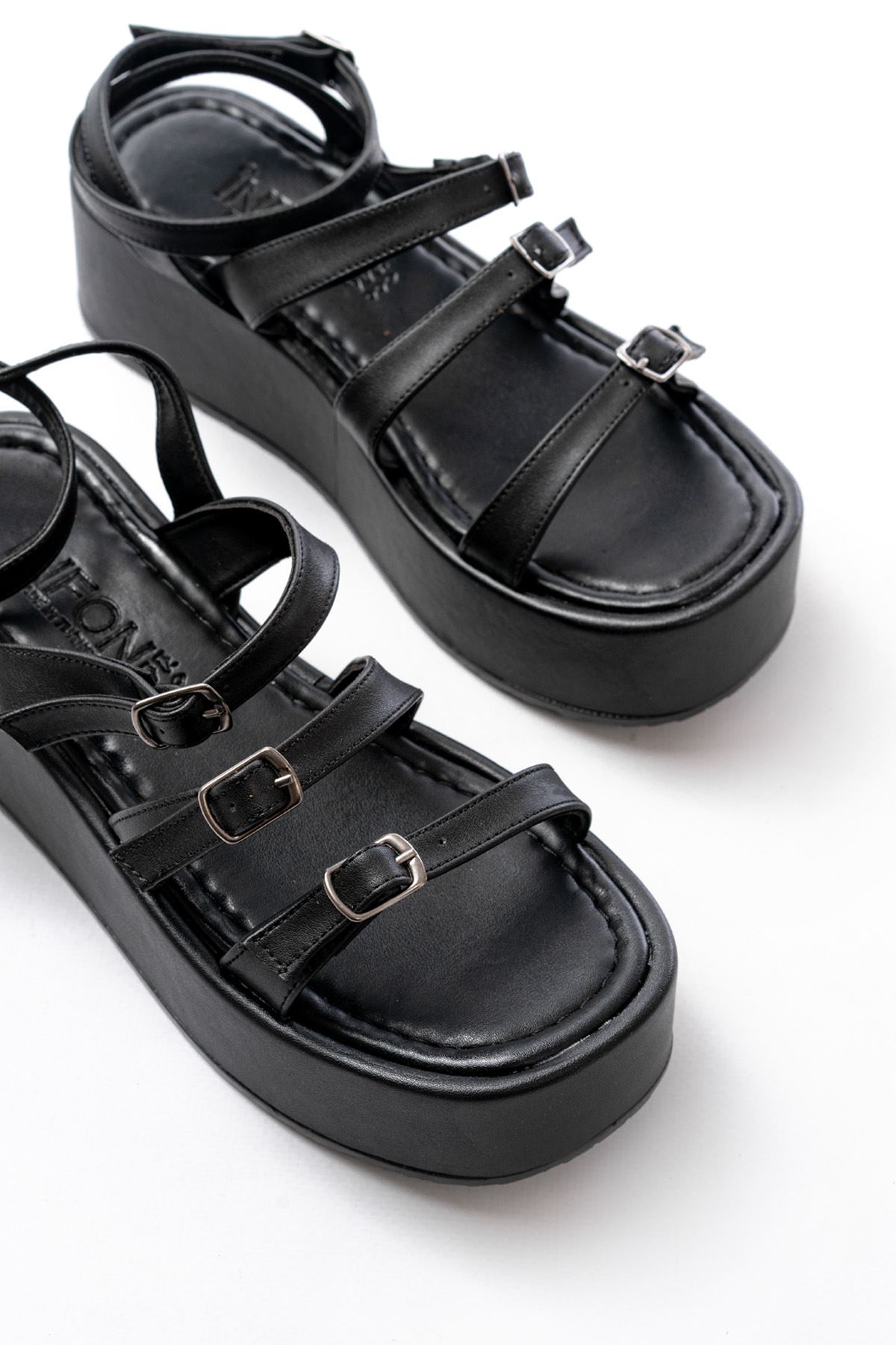 861-1222 Siyah Tokalı Bilekten Bağlamalı Dolgu Kadın Sandalet