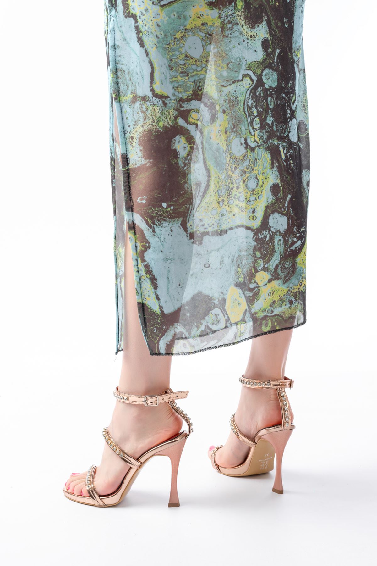 A-40 Rose Taşlı Platformlu Topuklu Kadın Ayakkabı