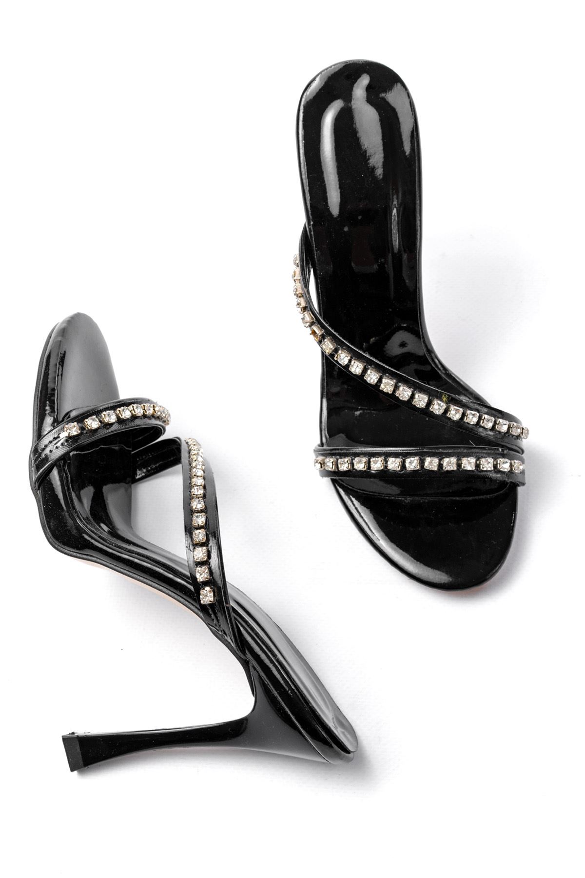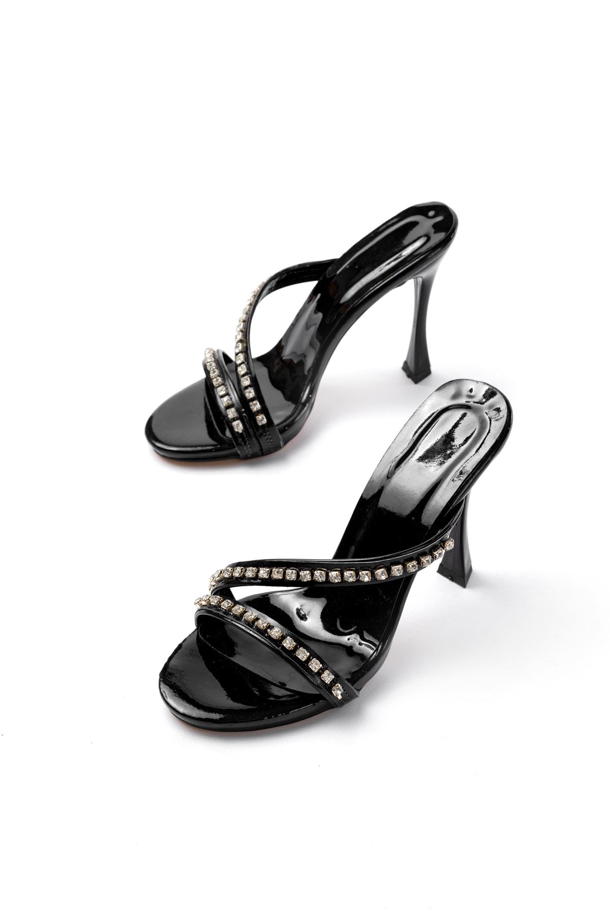 A-60 Kadın Siyah Gümüş Taşlı Platformlu Topuklu Terlik
