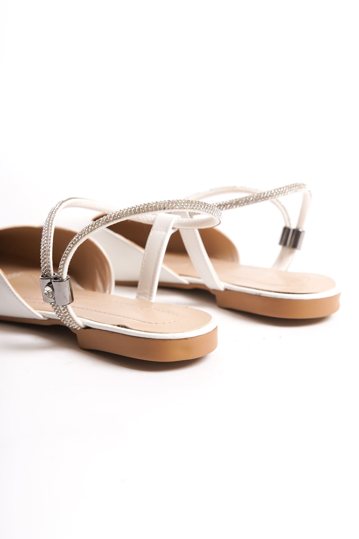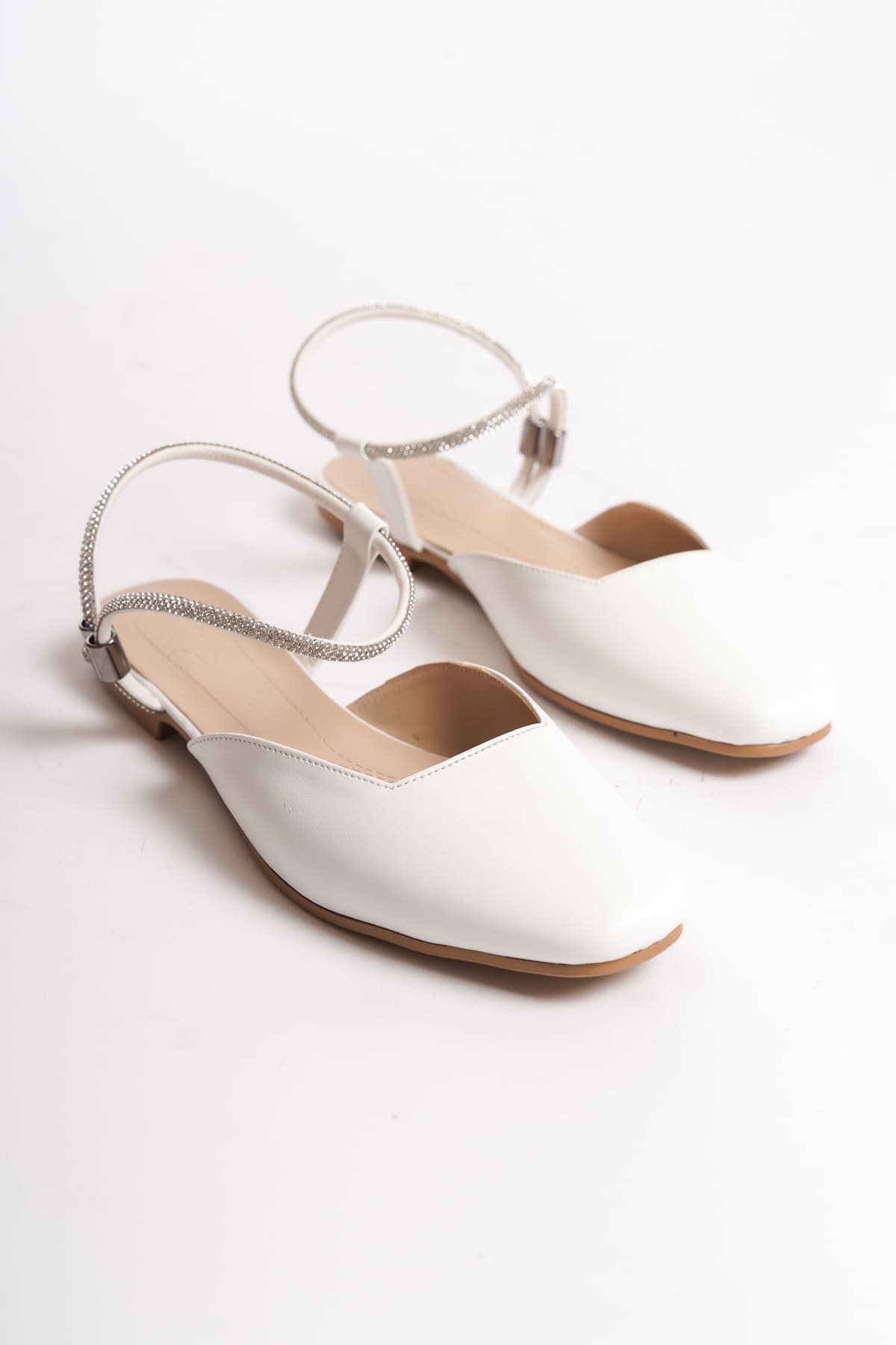CAROLINE Lastikli Ortopedik Rahat Taban Bilekten Taş Detaylı Kadın Babet Ayakkabı CKT – Beyaz