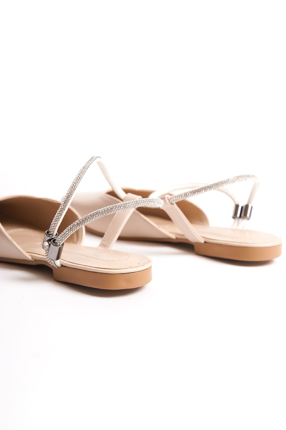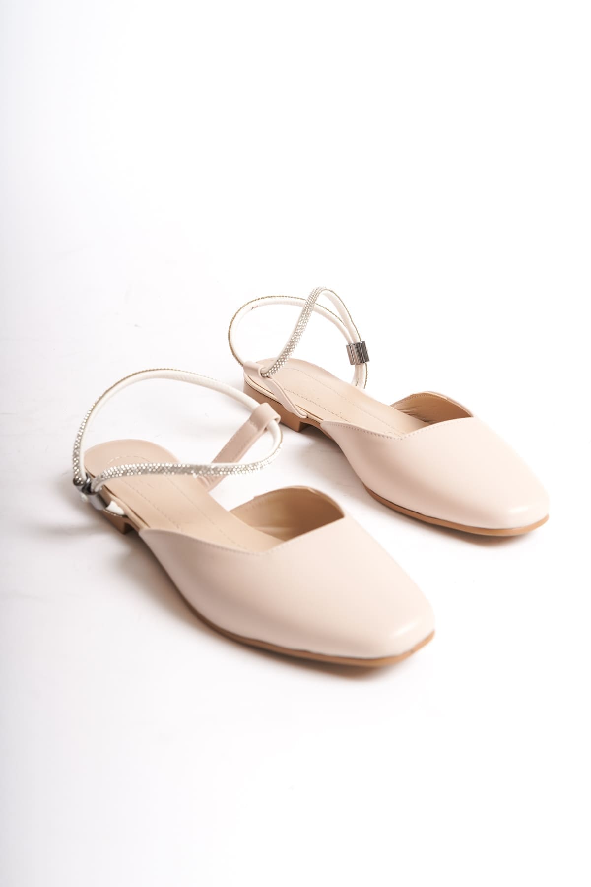 CAROLINE Lastikli Ortopedik Rahat Taban Bilekten Taş Detaylı Kadın Babet Ayakkabı CKT – Krem