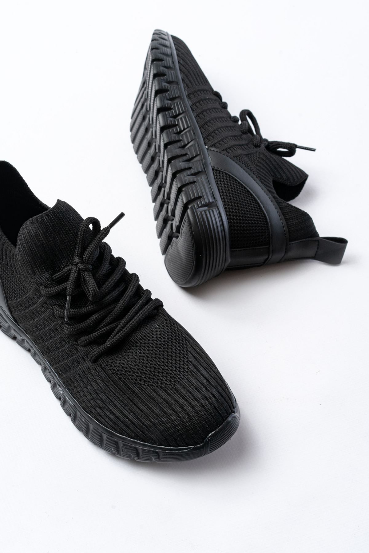 DM-501 Siyah Bağcıklı Faylon Taban Günlük Spor Ayakkabı
