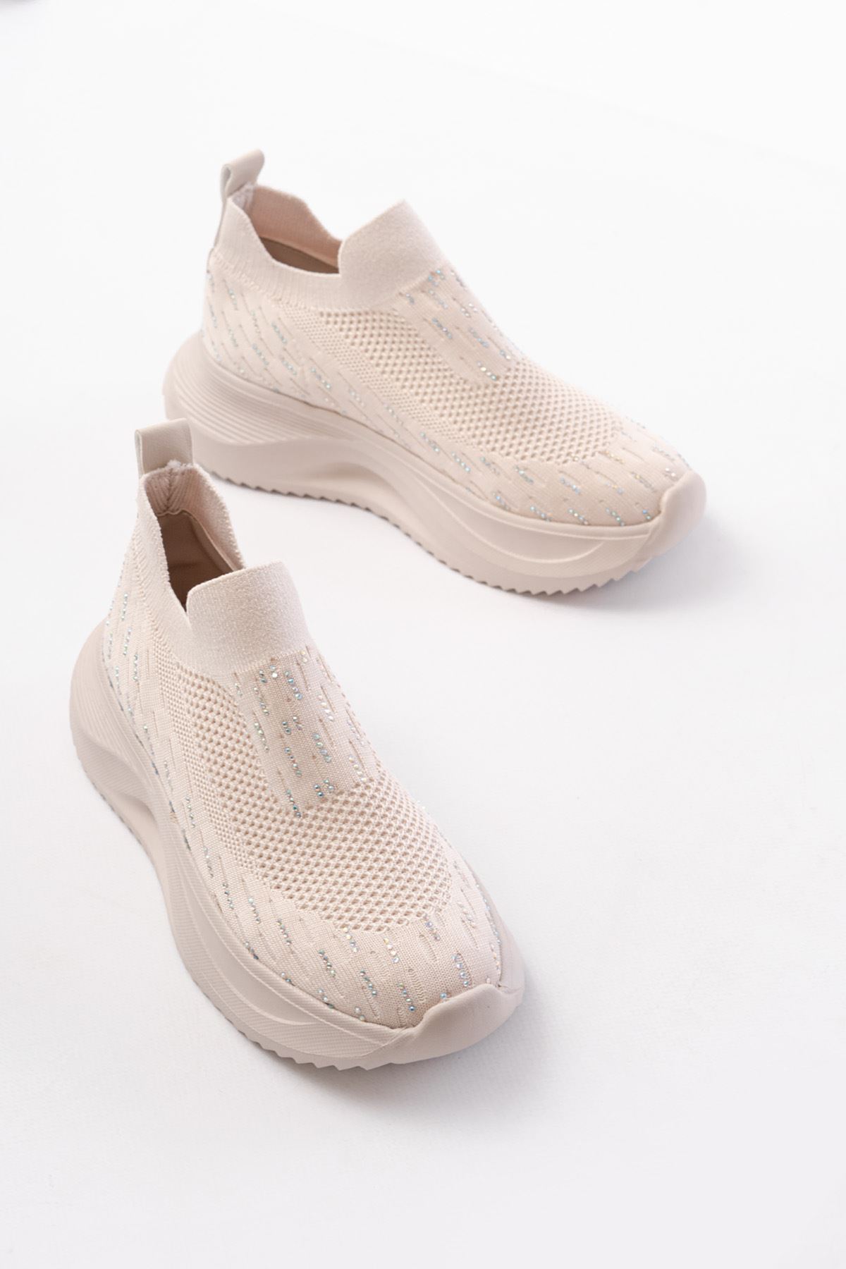 DM-707 Bej Fileli Faillant Taban Taş Aksesuarlı Günlük Spor Ayakkabı
