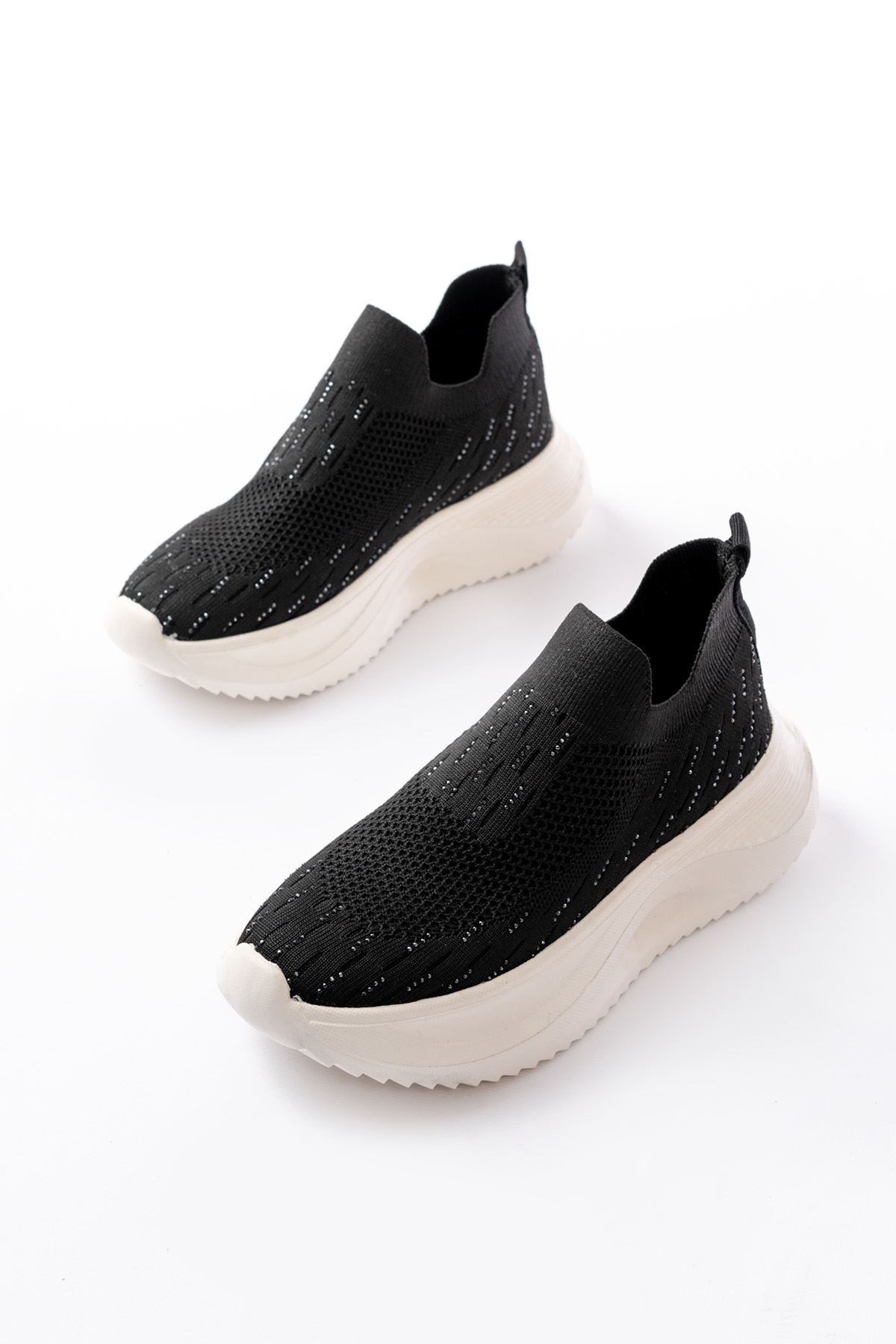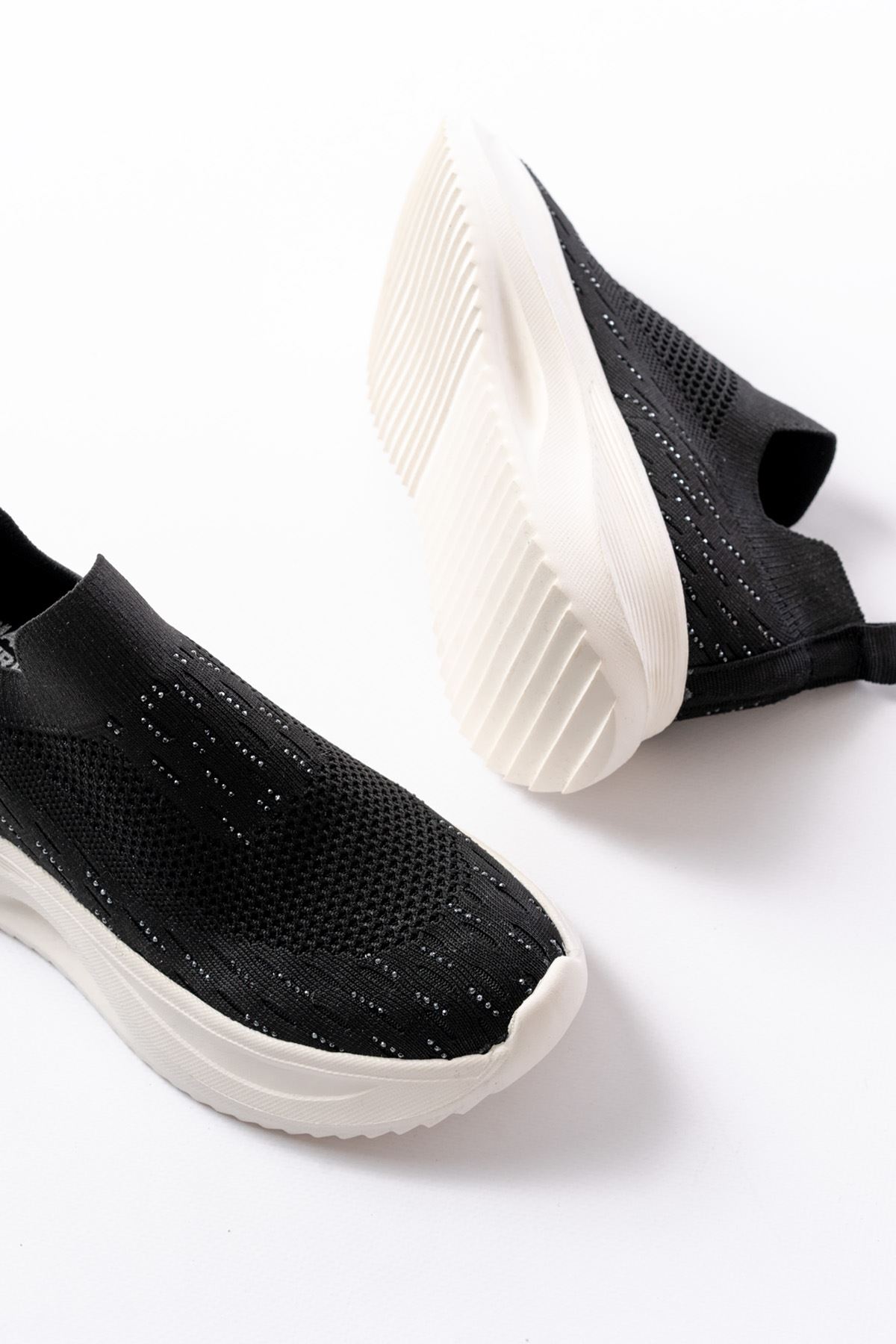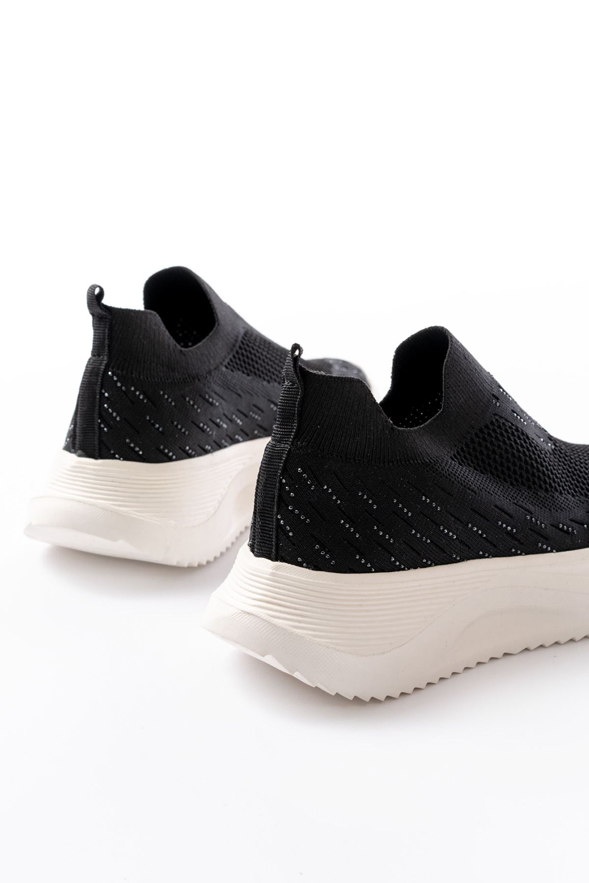 DM-707 Siyah Fileli Beyaz Faillant Taban Taş Aksesuarlı Günlük Spor Ayakkab