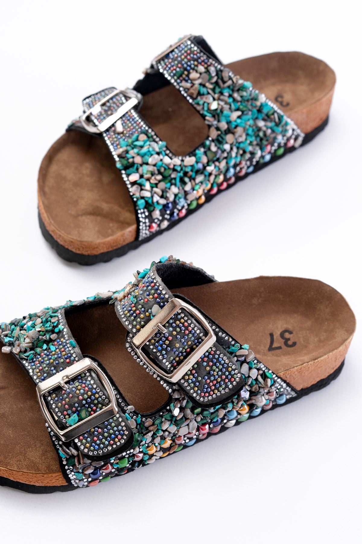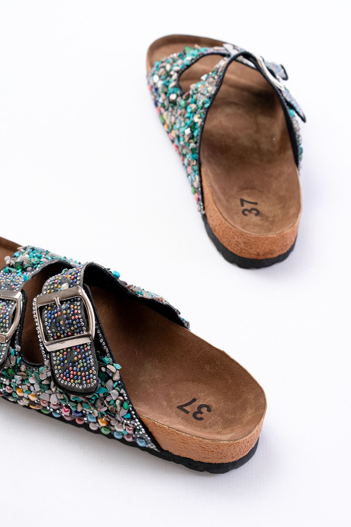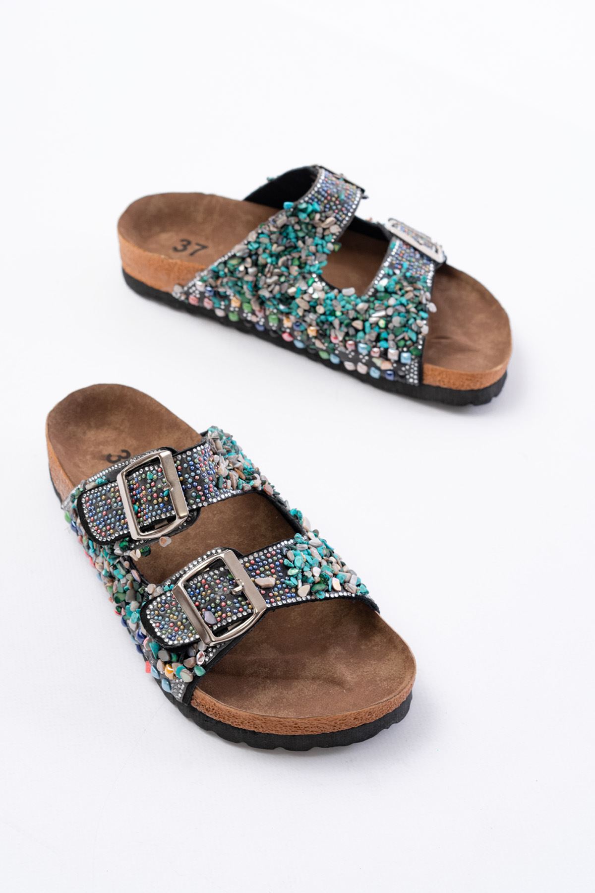 DN-07 Siyah Günlük Taş Aksesuarlı Kadın Terlik