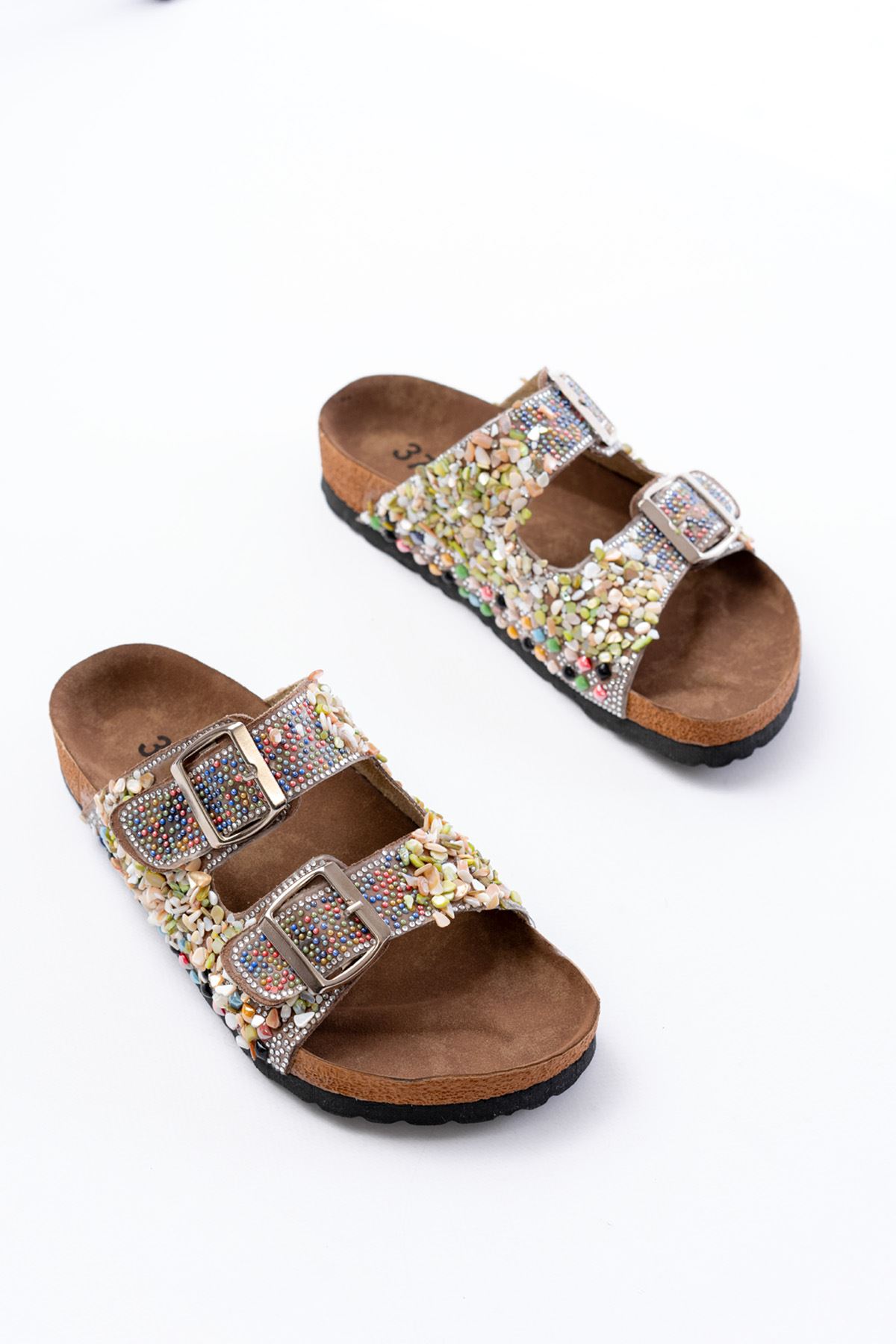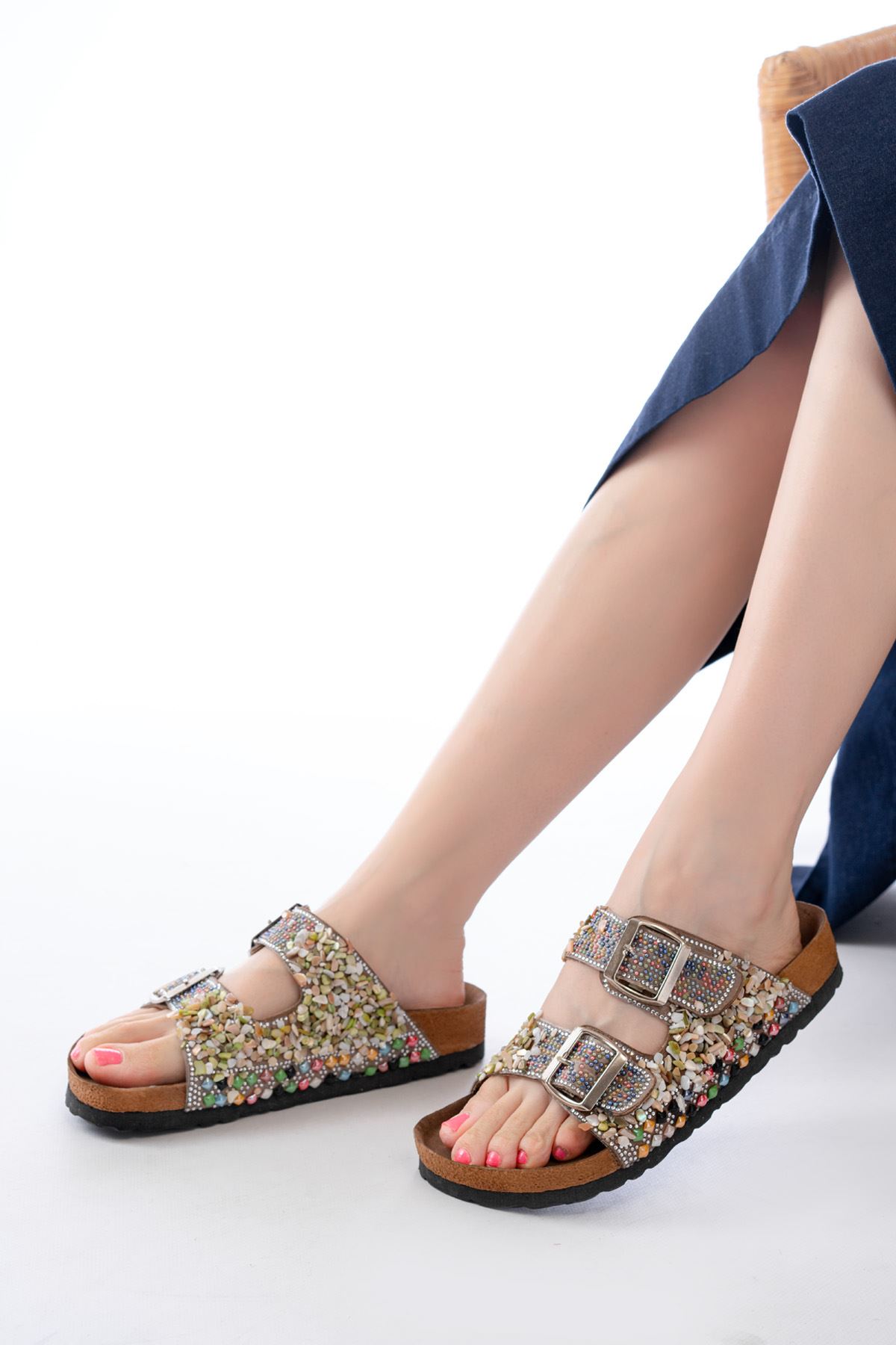 DN-07 Vizon Günlük Taş Aksesuarlı Kadın Terlik
