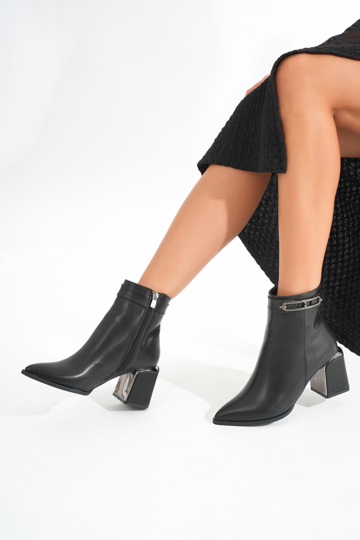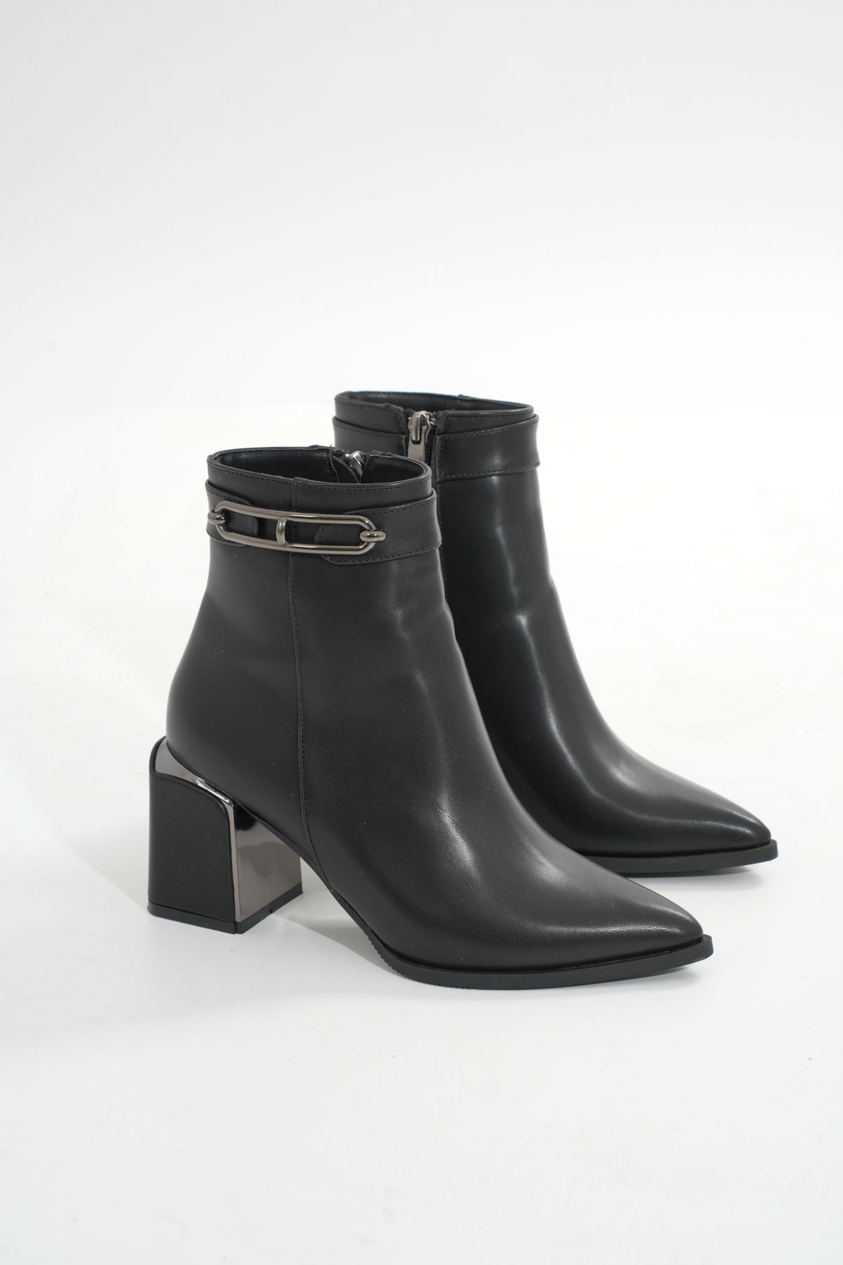 DNZ-401 Siyah Fermuarlı Topuklu Kadın Günlük Bot