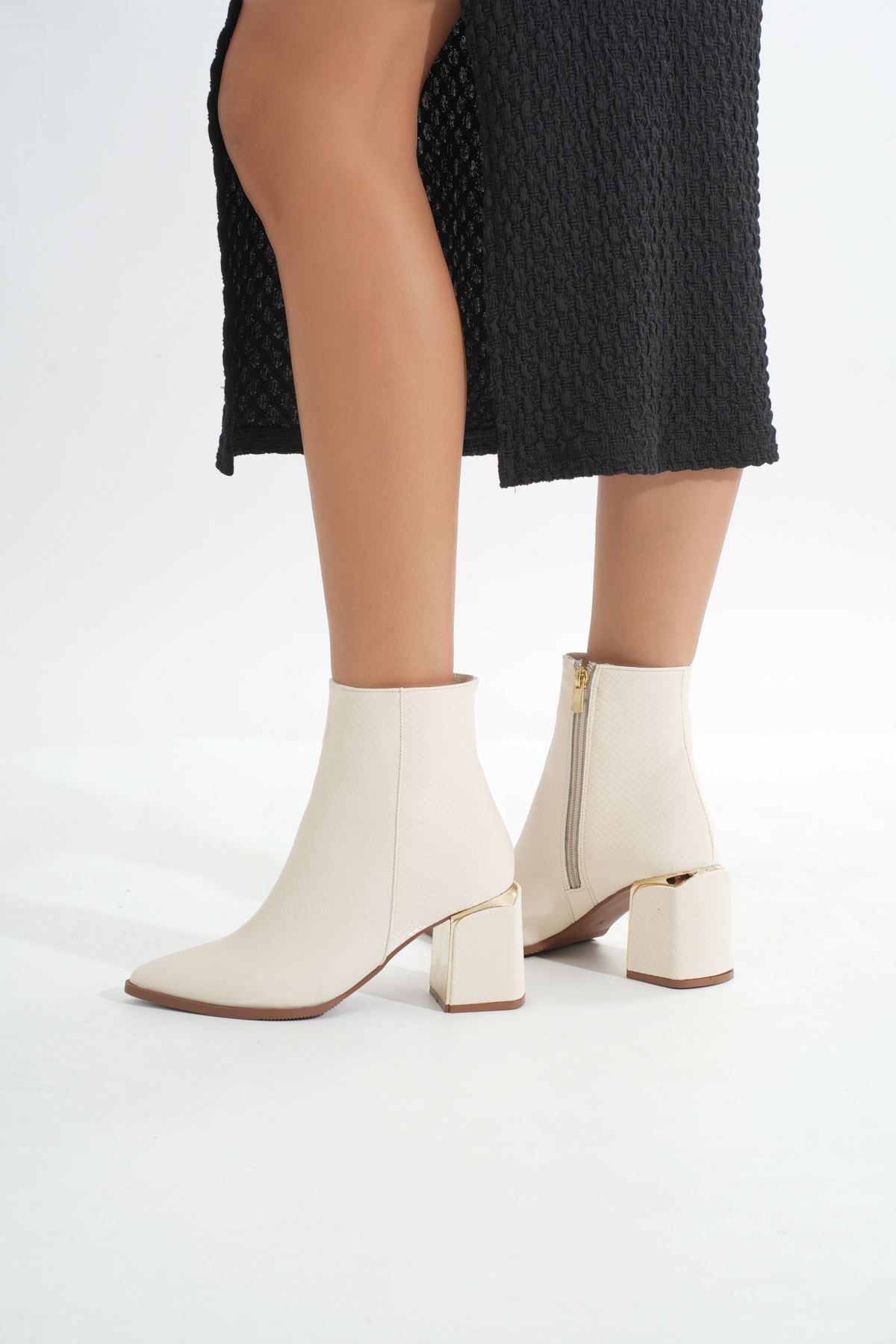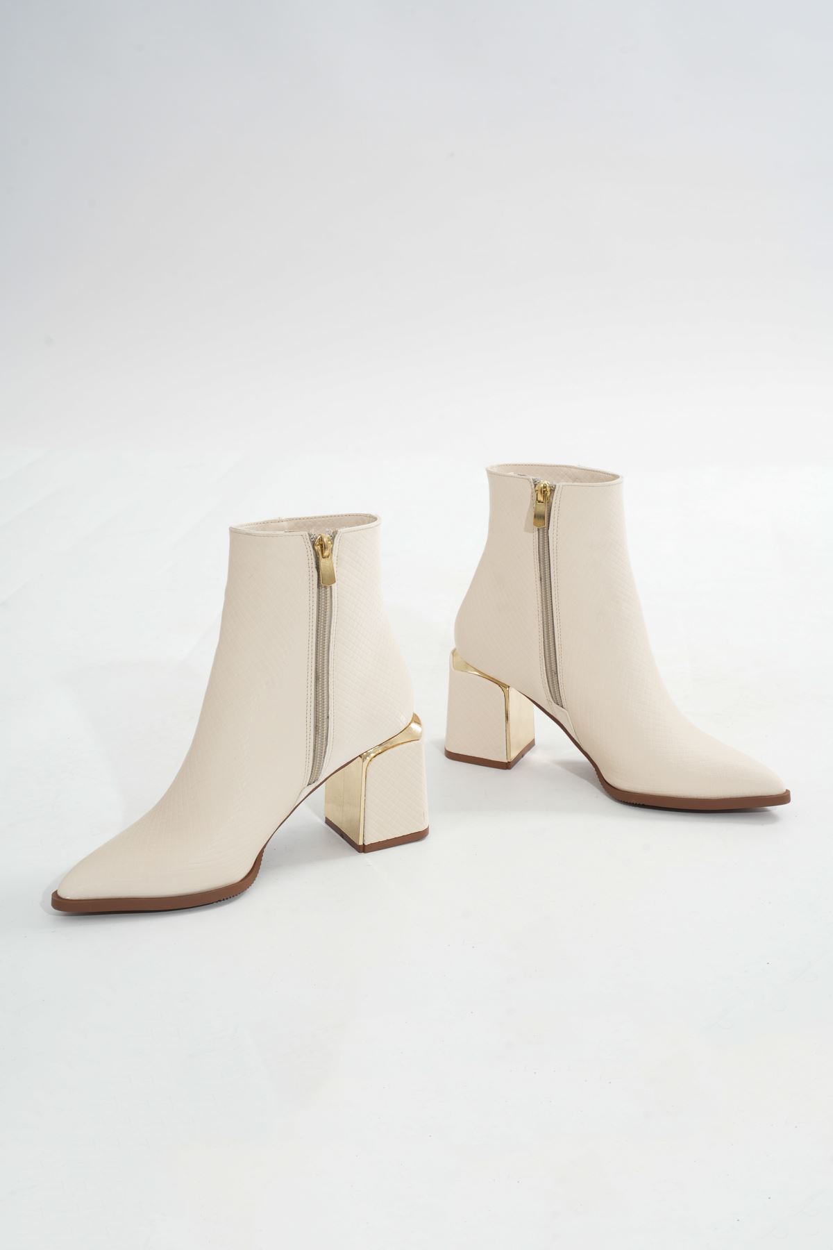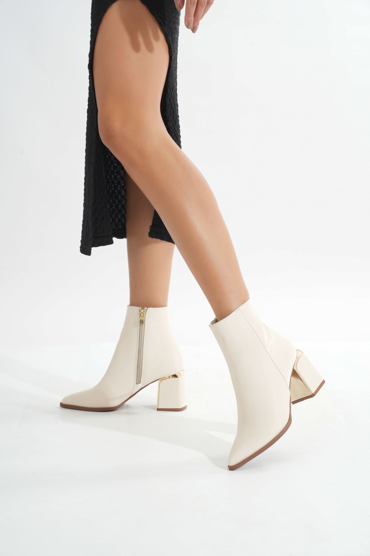 DNZ-409 Bej Fermuarlı Topuklu Kadın Günlük Bot
