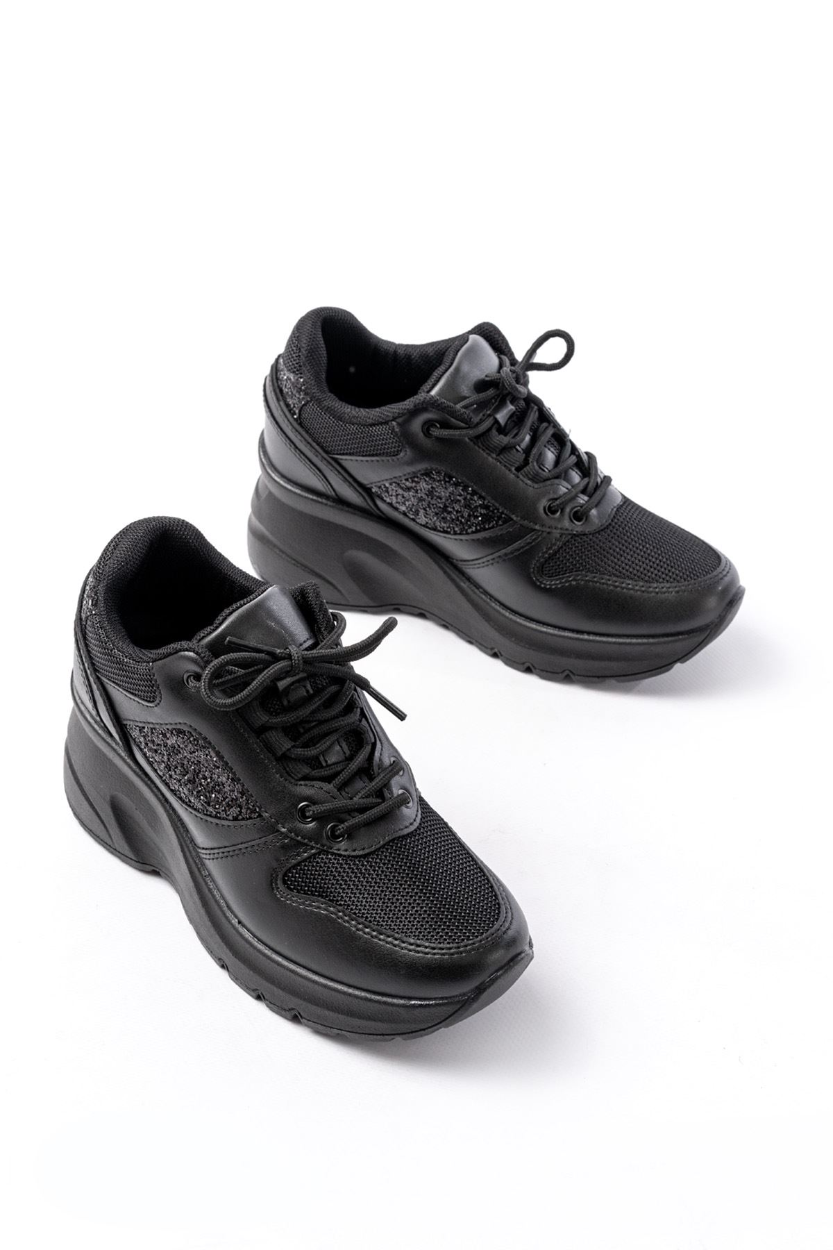 F-185 Siyah Günlük Bağcıklı Taş Aksesuarlı Yazlık Spor Ayakkabı