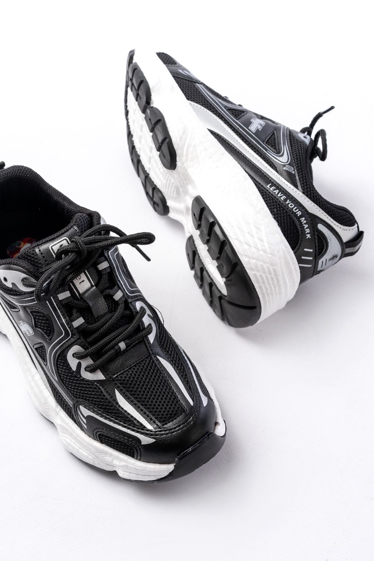 F-329 Siyah Günlük Bağcıklı Beyaz Tabanlı Yazlık Spor Ayakkabı