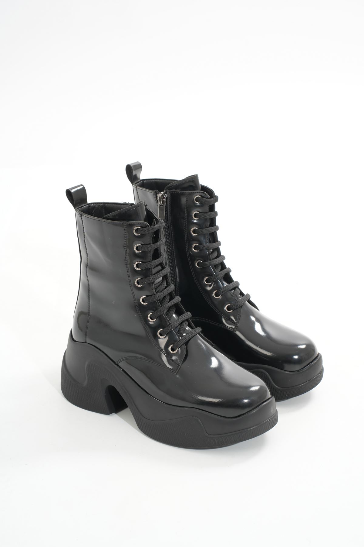 FZ-2550 Siyah Rugan Yüksek Tabanlı Bağcıklı Fermuarlı Günlük Kadın Bot
