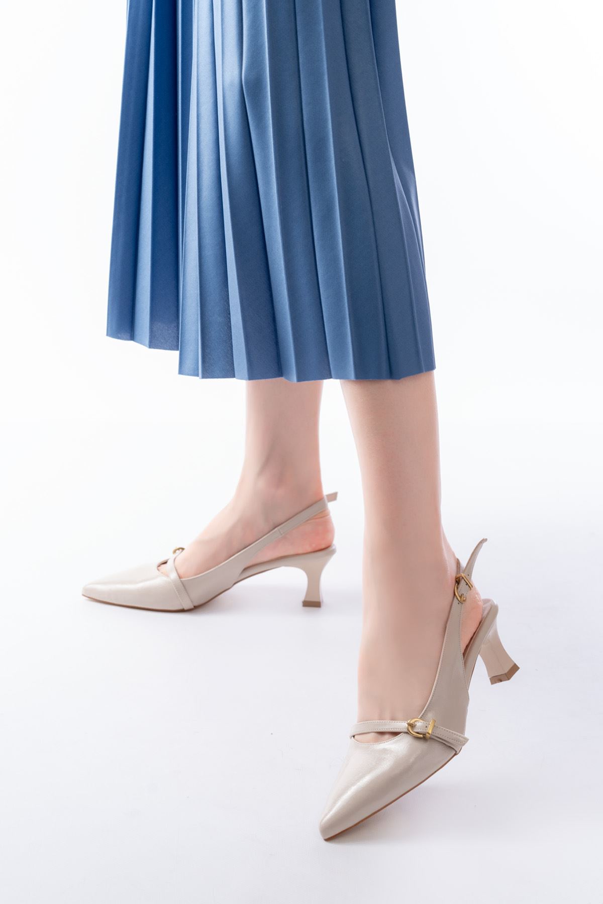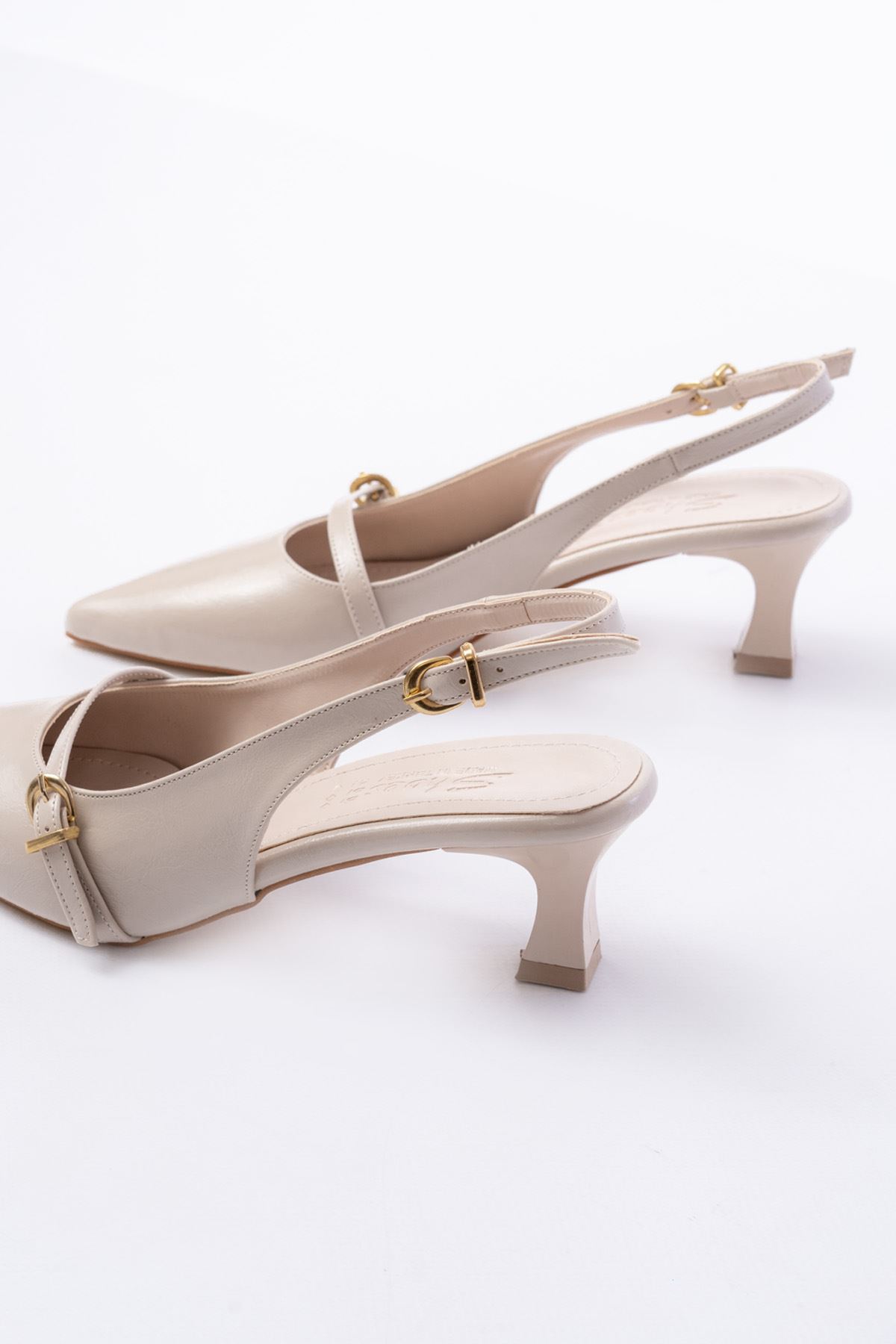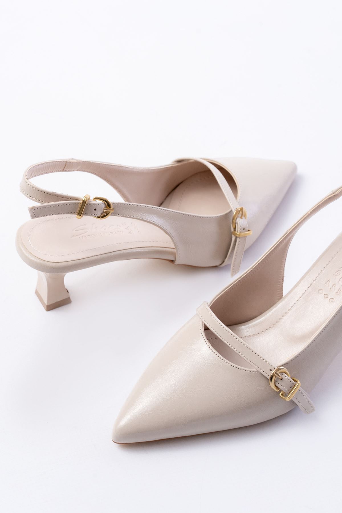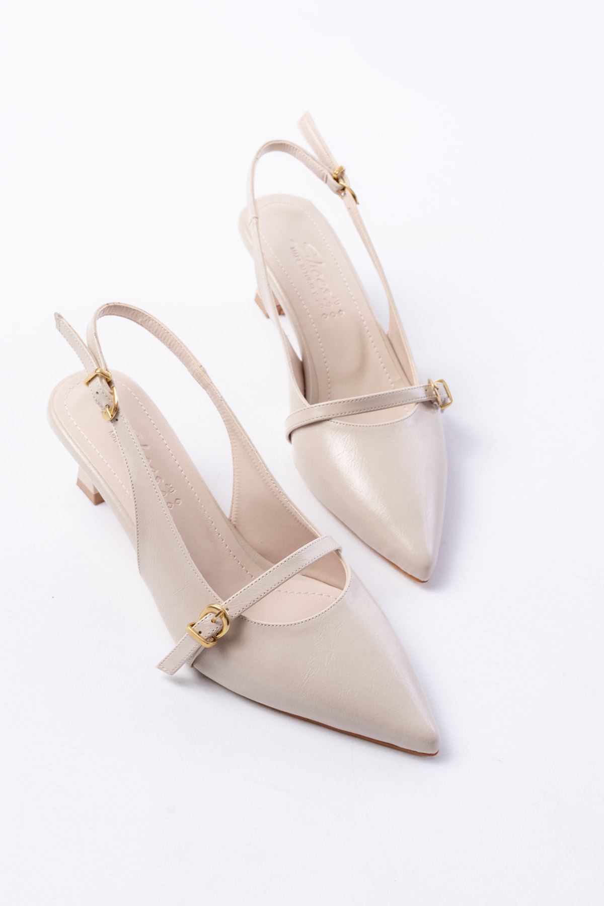 H-470 Bej Rugan Baret Tokalı Arkası Açık Günlük Kadın Sandalet
