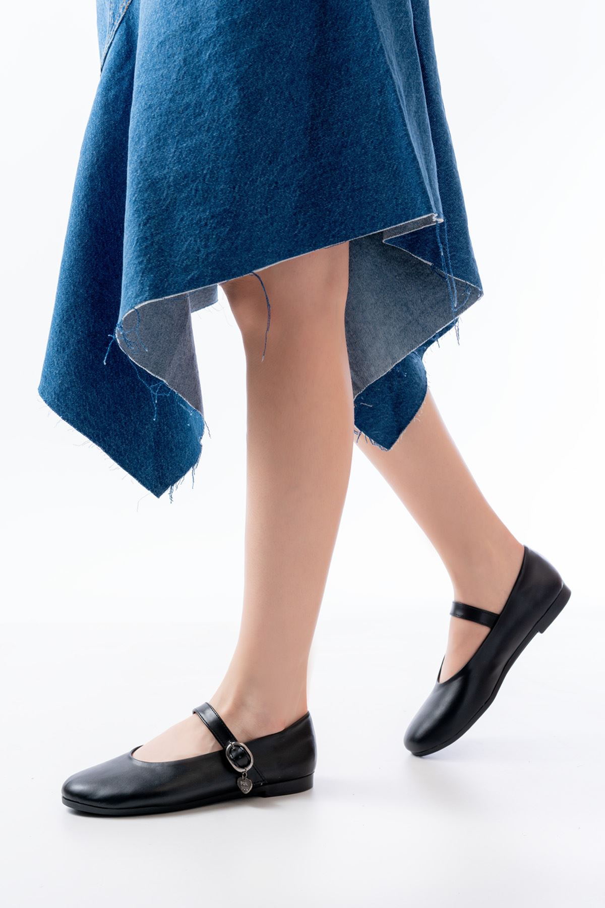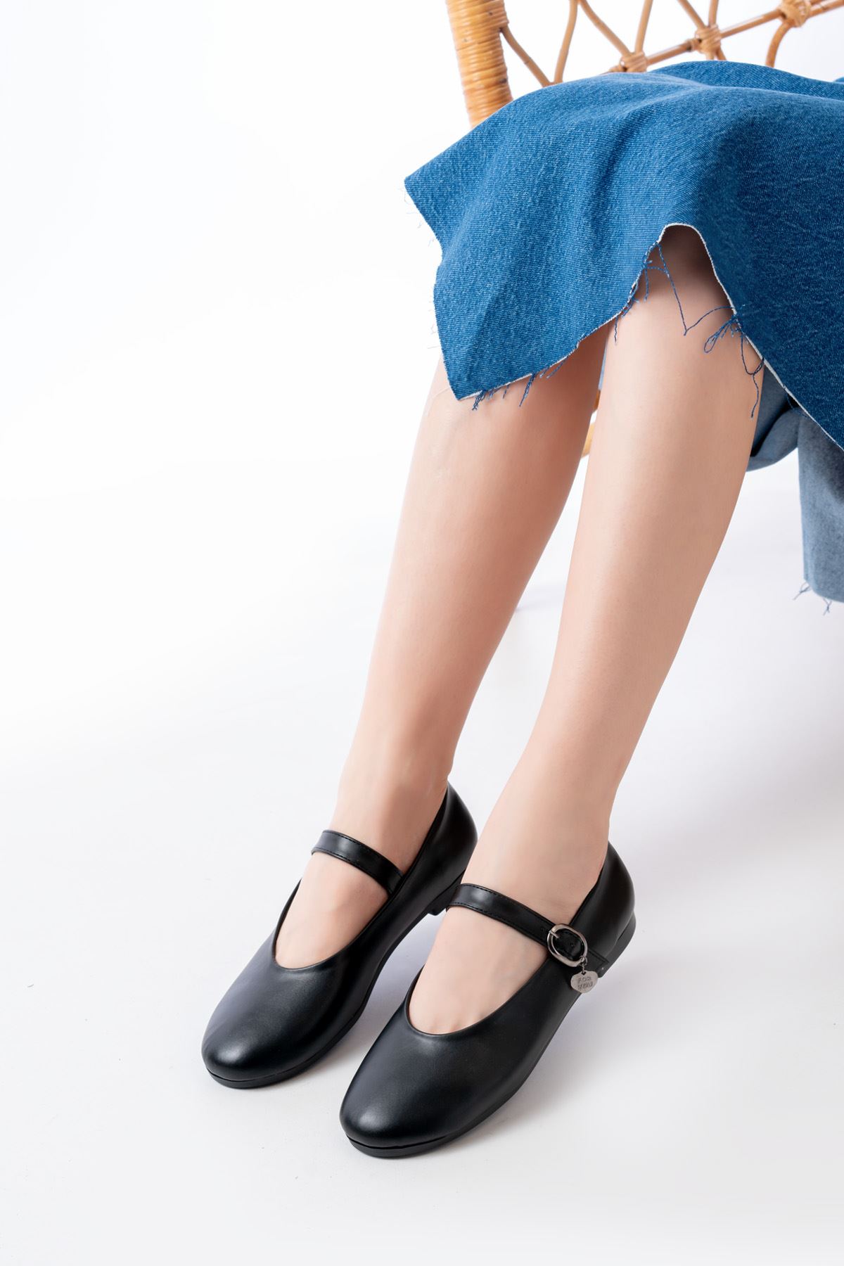İNF-324 Siyah Baretli Tokalı Günlük Kadın Babet