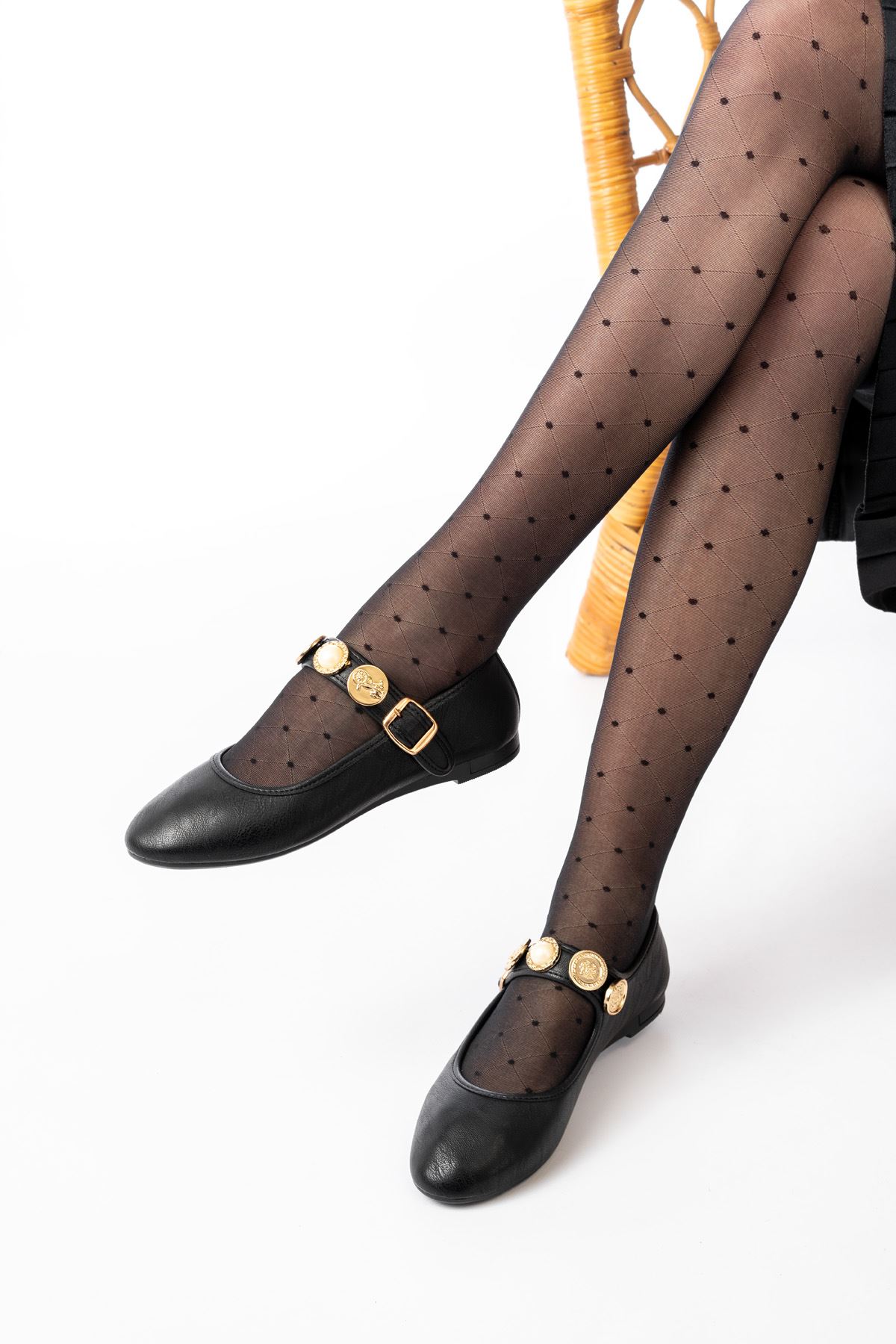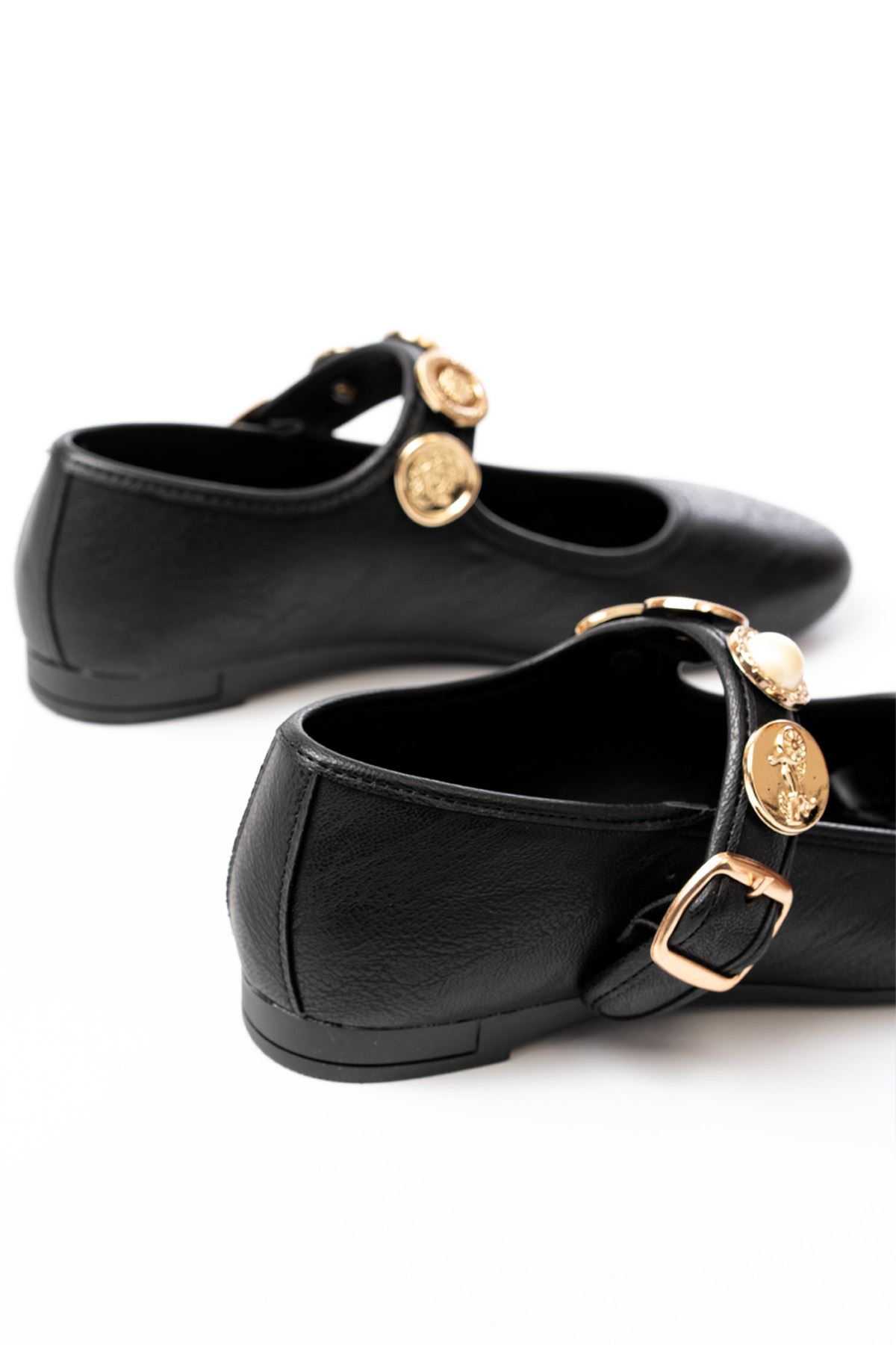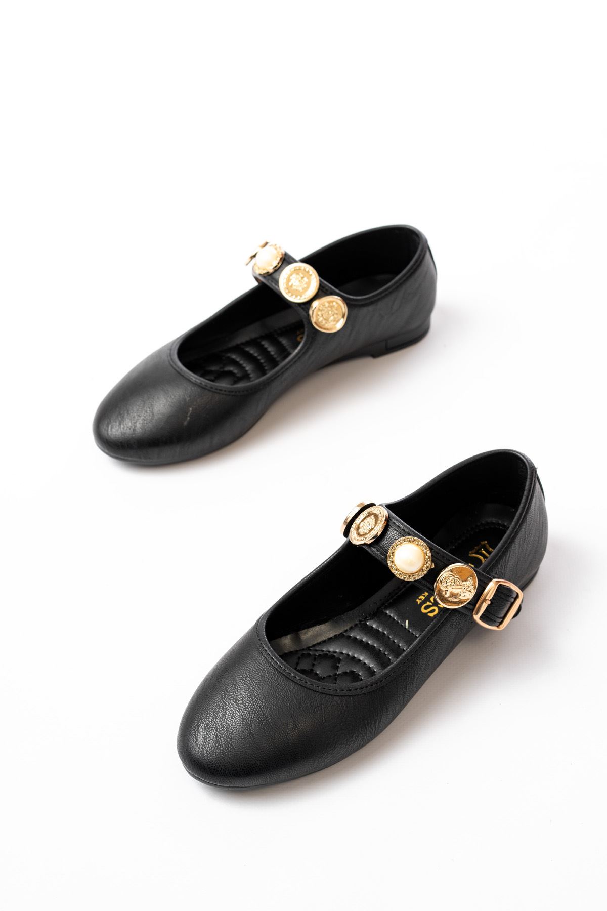 İNF-6363 Siyah Baret Tokalı Günlük Bayan Ayakkabı
