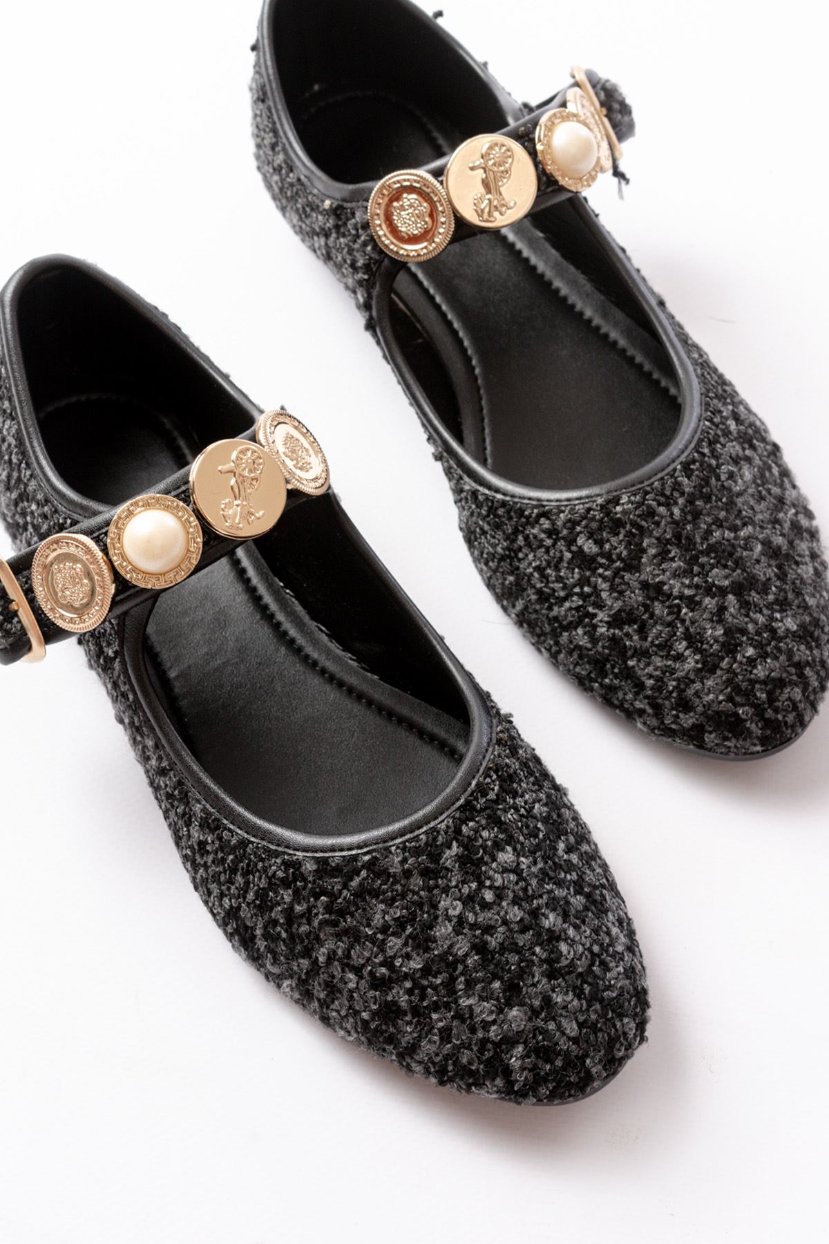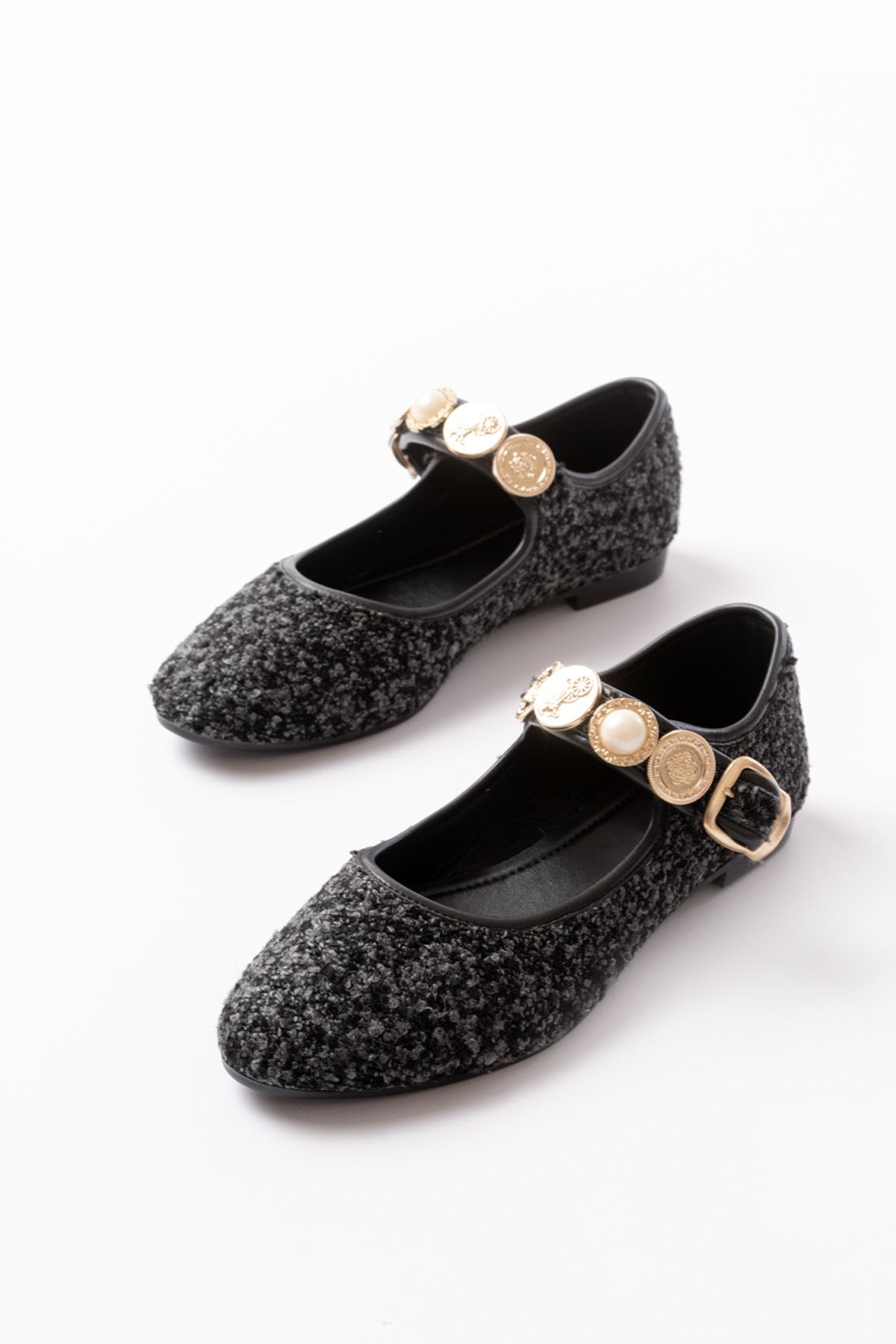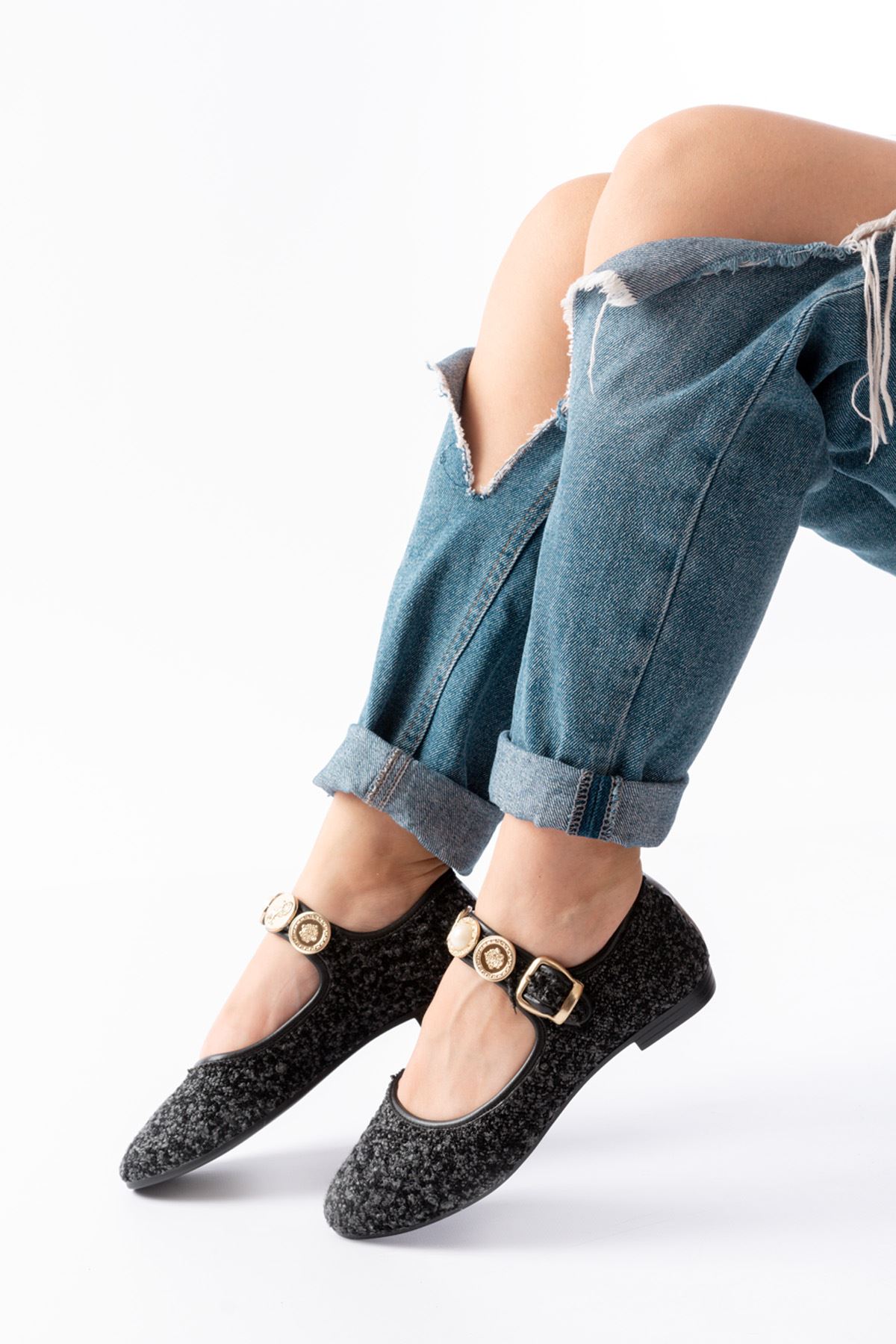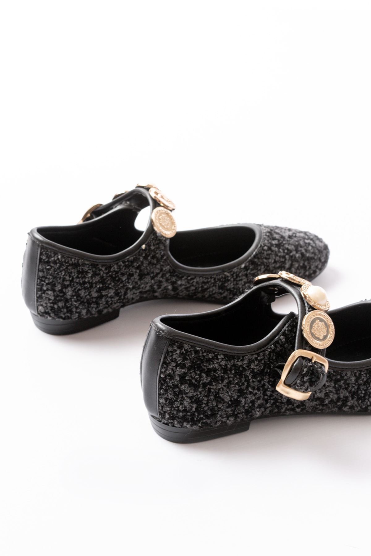 İNF-6363 Siyah Havlu Desenli Baret Tokalı Günlük Bayan Ayakkabı