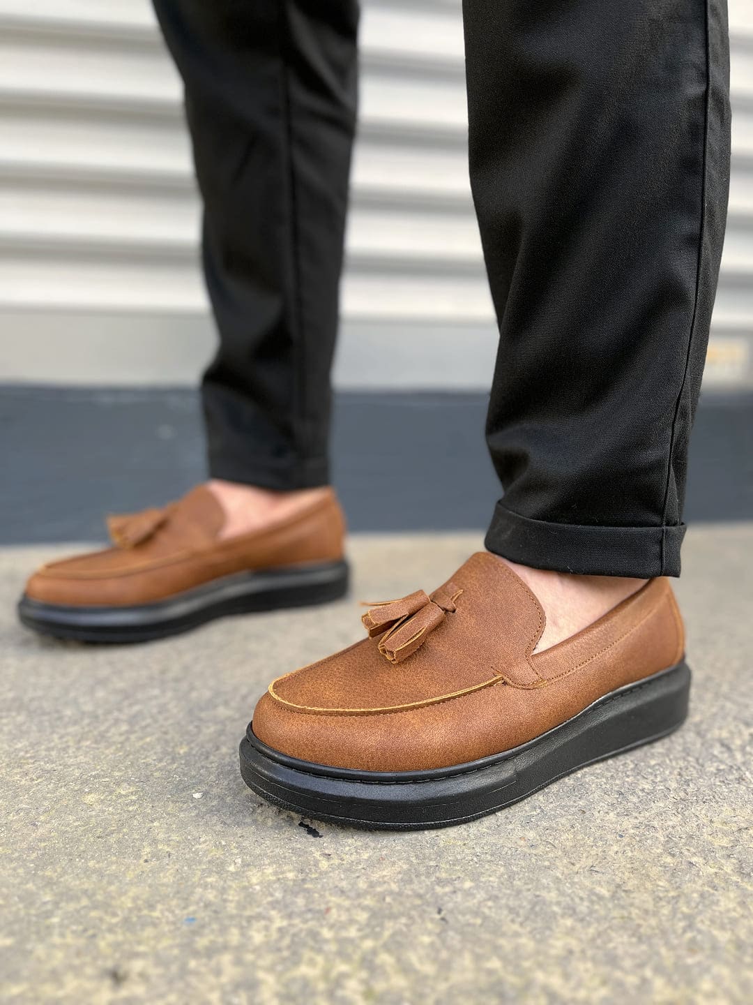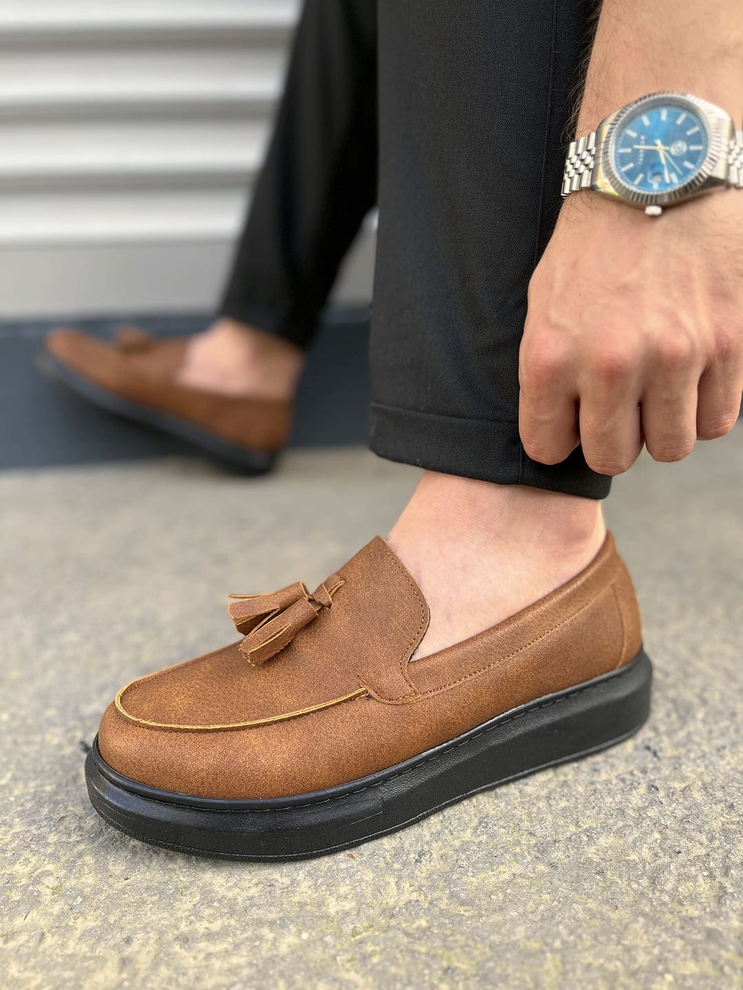 JY154 Blaze Bağcıksız Püsküllü Cilt Erkek Günlük Spor Klasik Ayakkabı CST – Taba