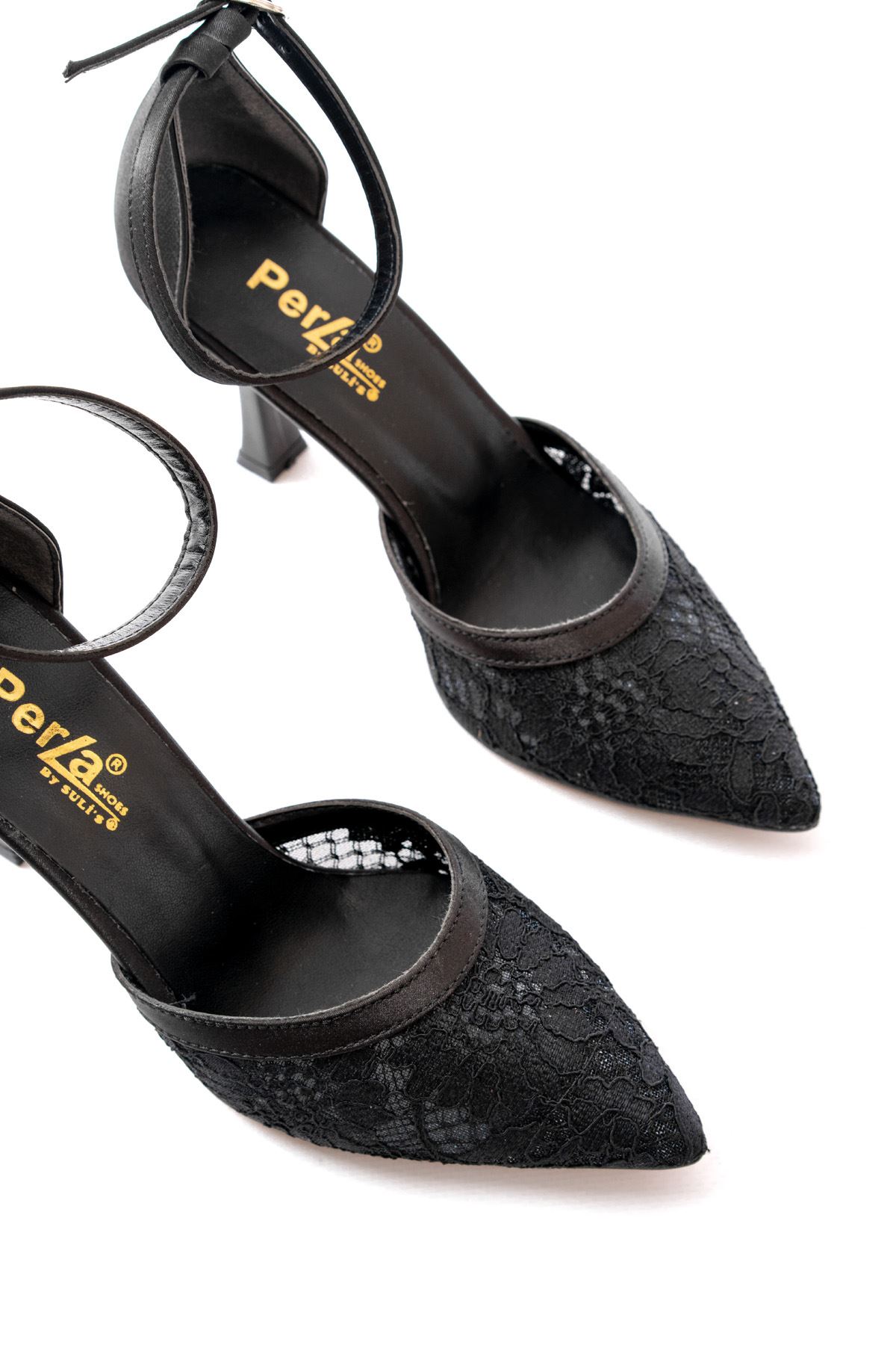 K-404 Siyah Fileli Çiçek Detaylı Kadın Topuklu Ayakkabı