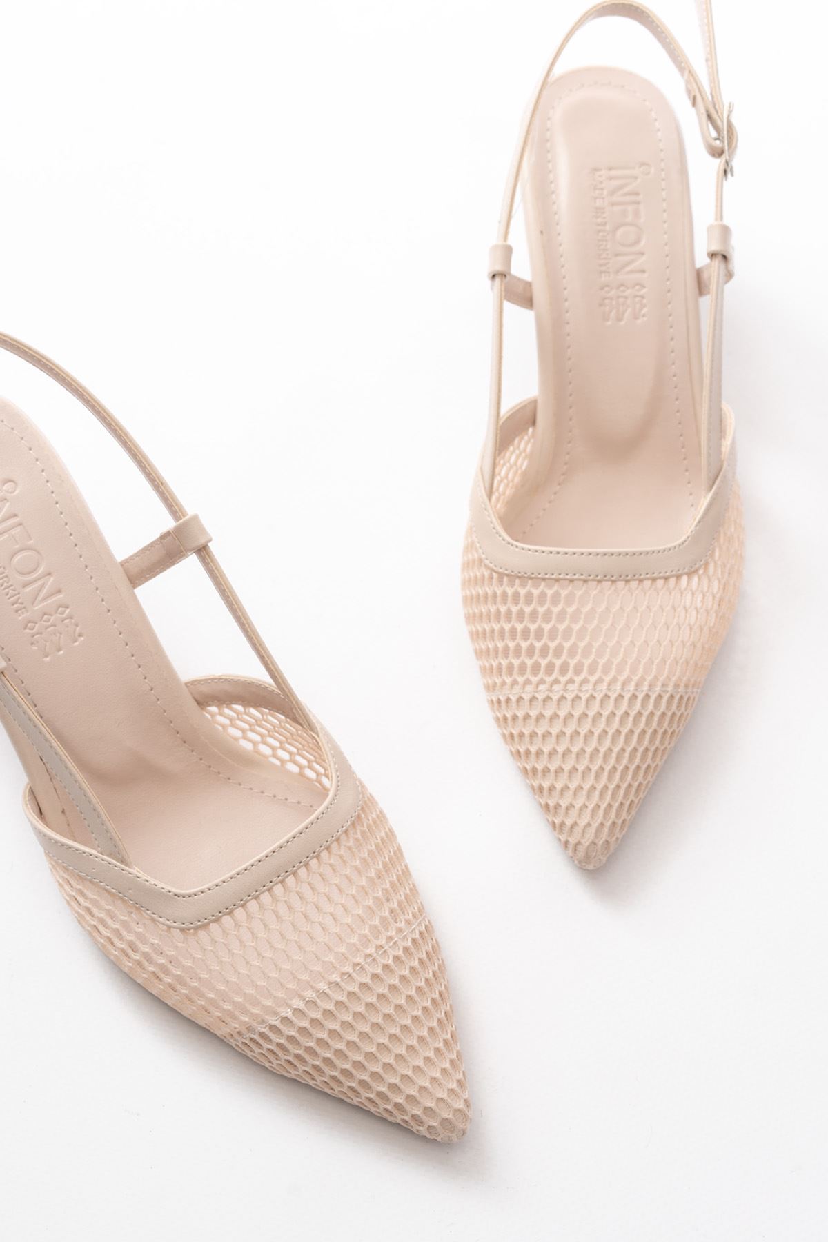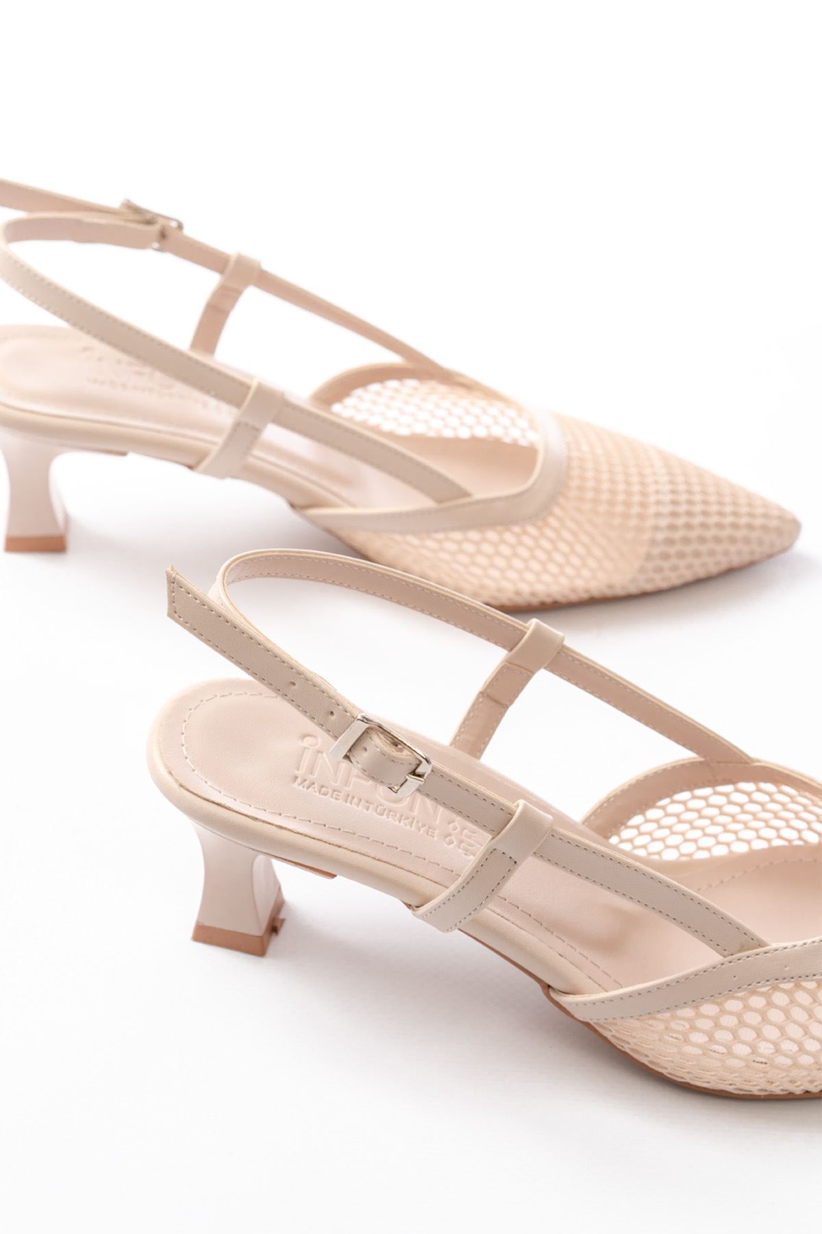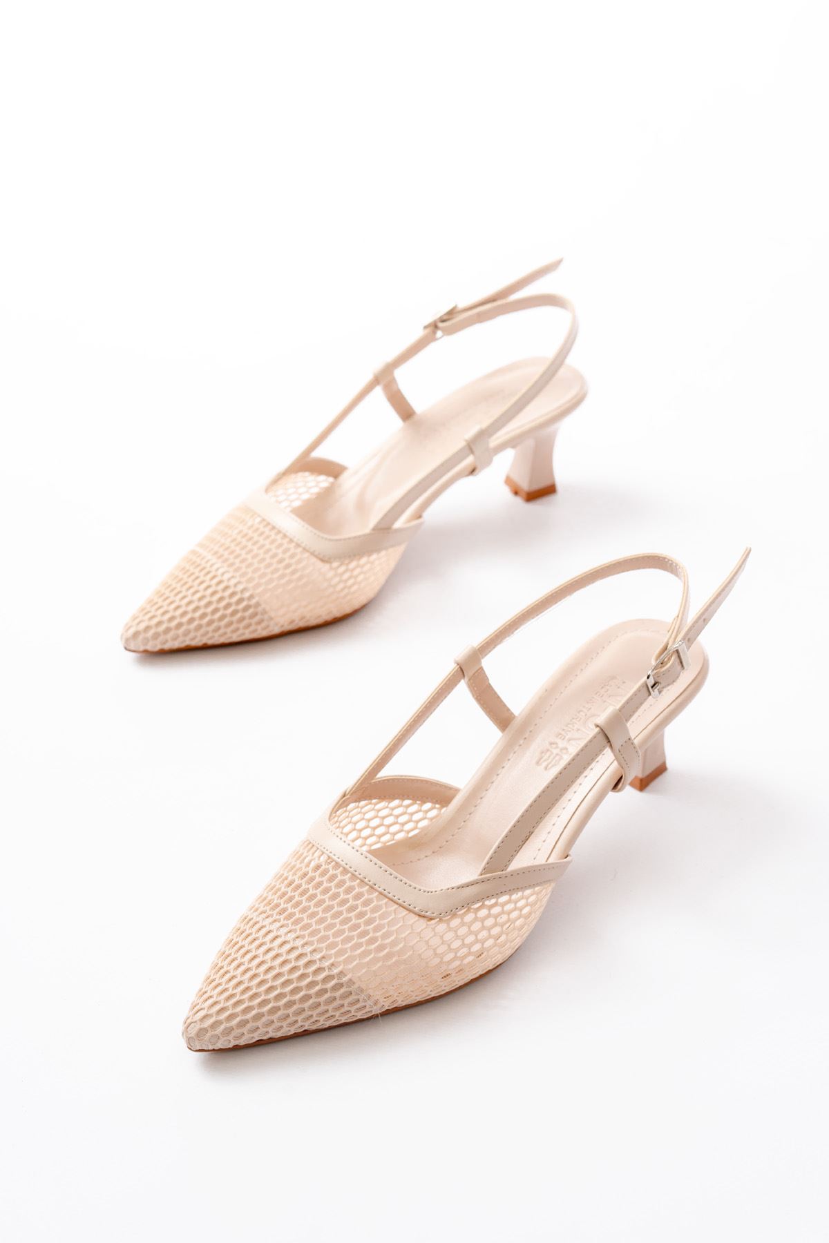 K-607 Bej Günlük Fileli Arkası Açık 7 cm Topuklu Bayan Ayakkabı