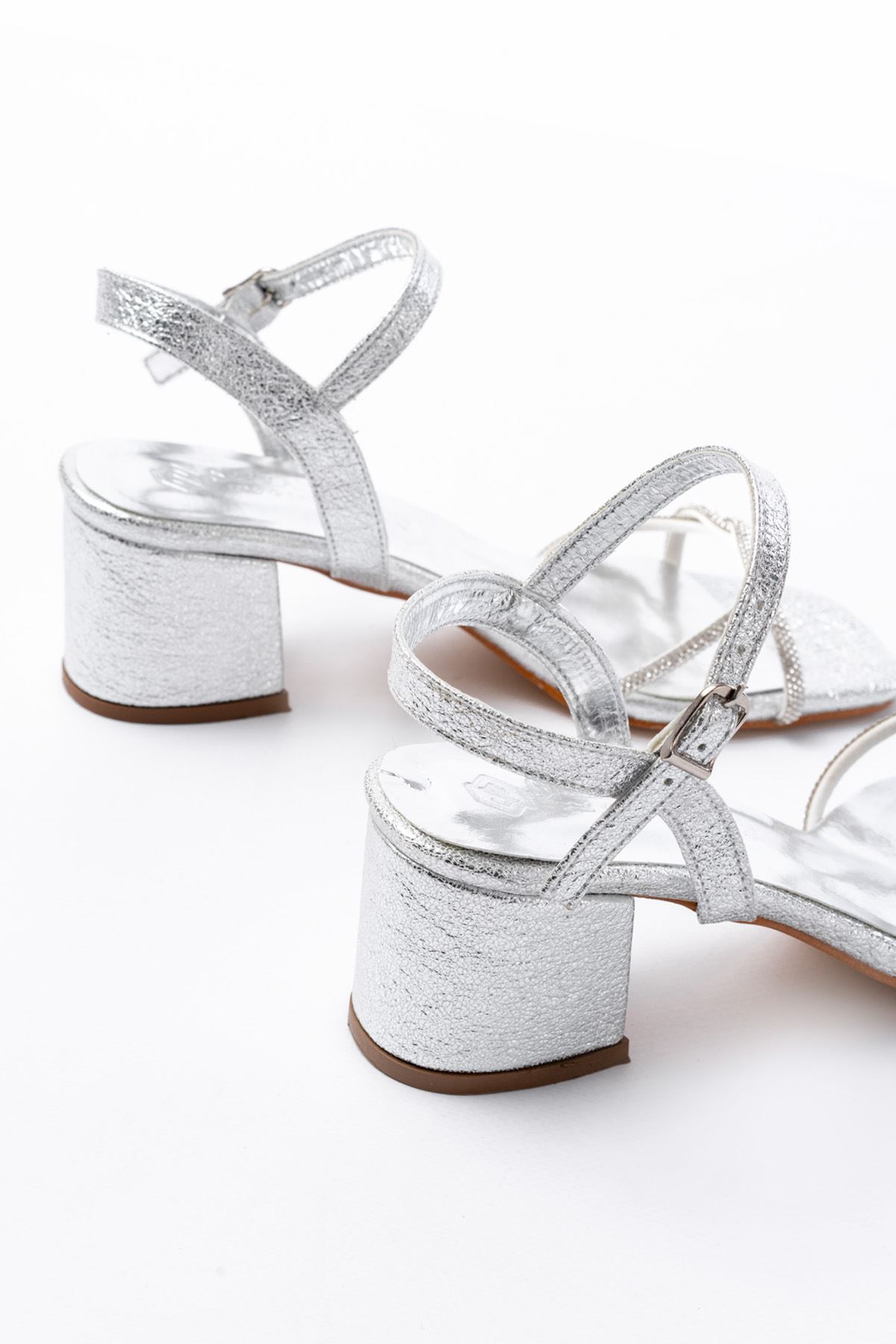 K-888 Kadın Gümüş İnce Sarmal Bantlı Topuklu Ayakkabı