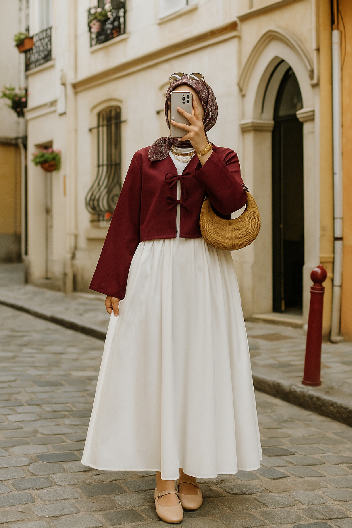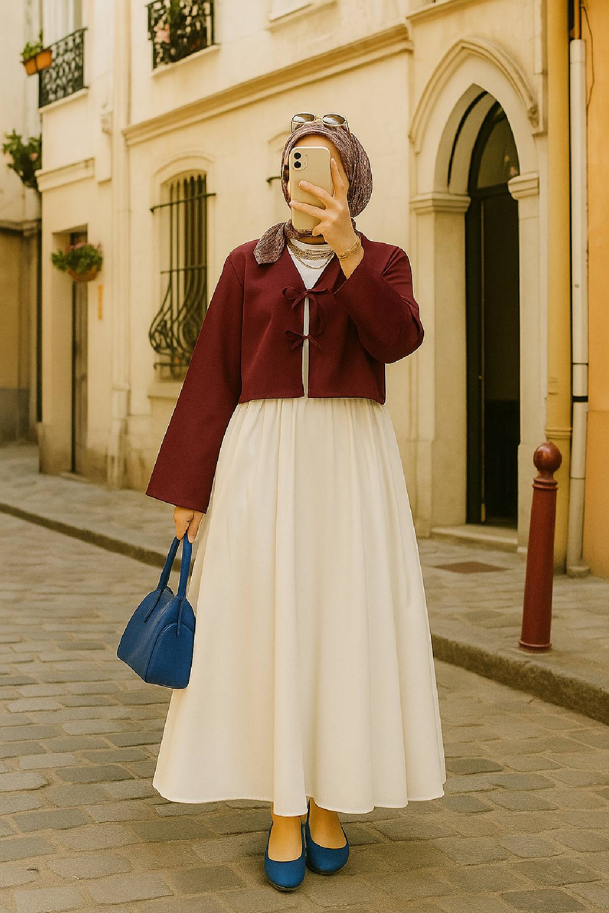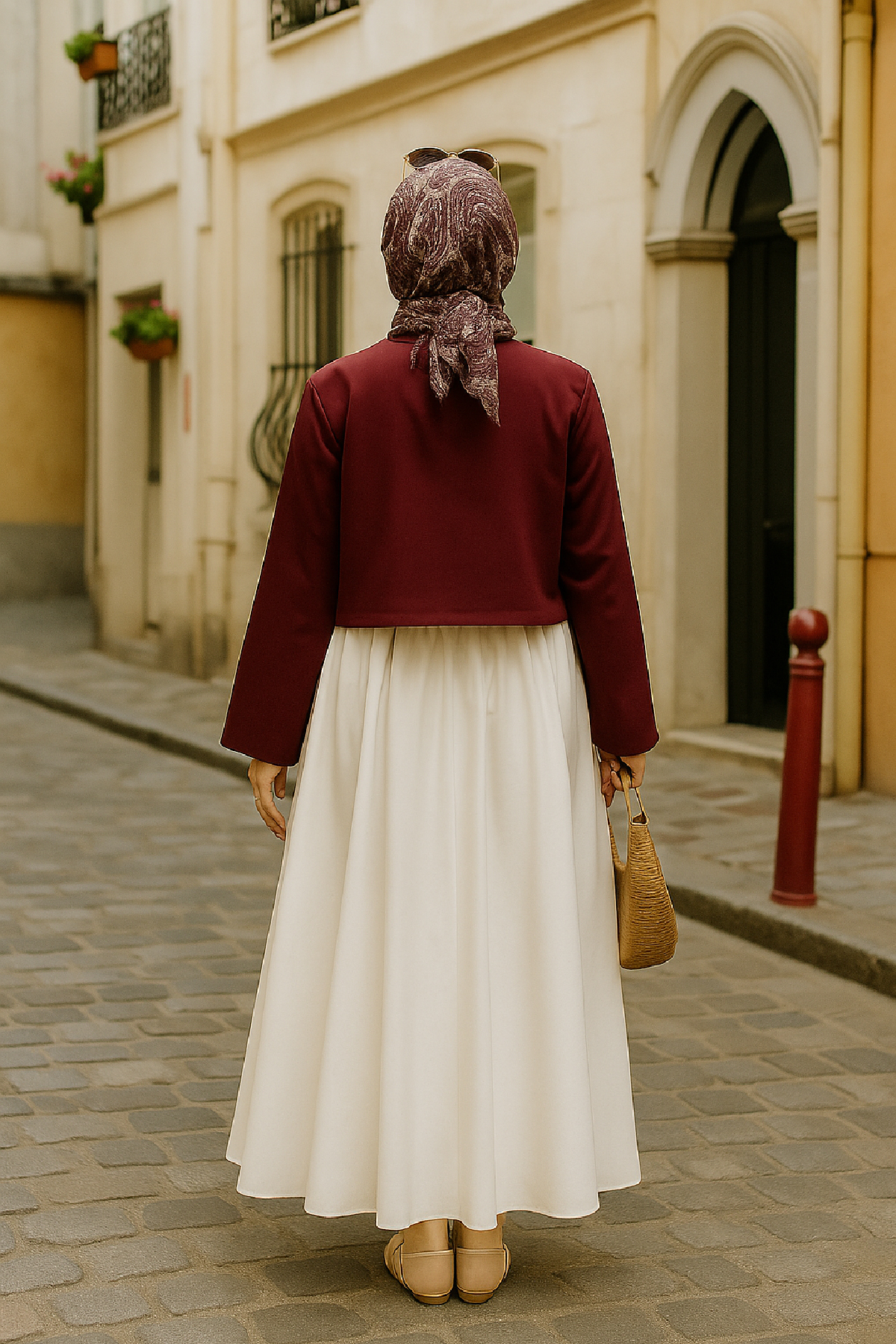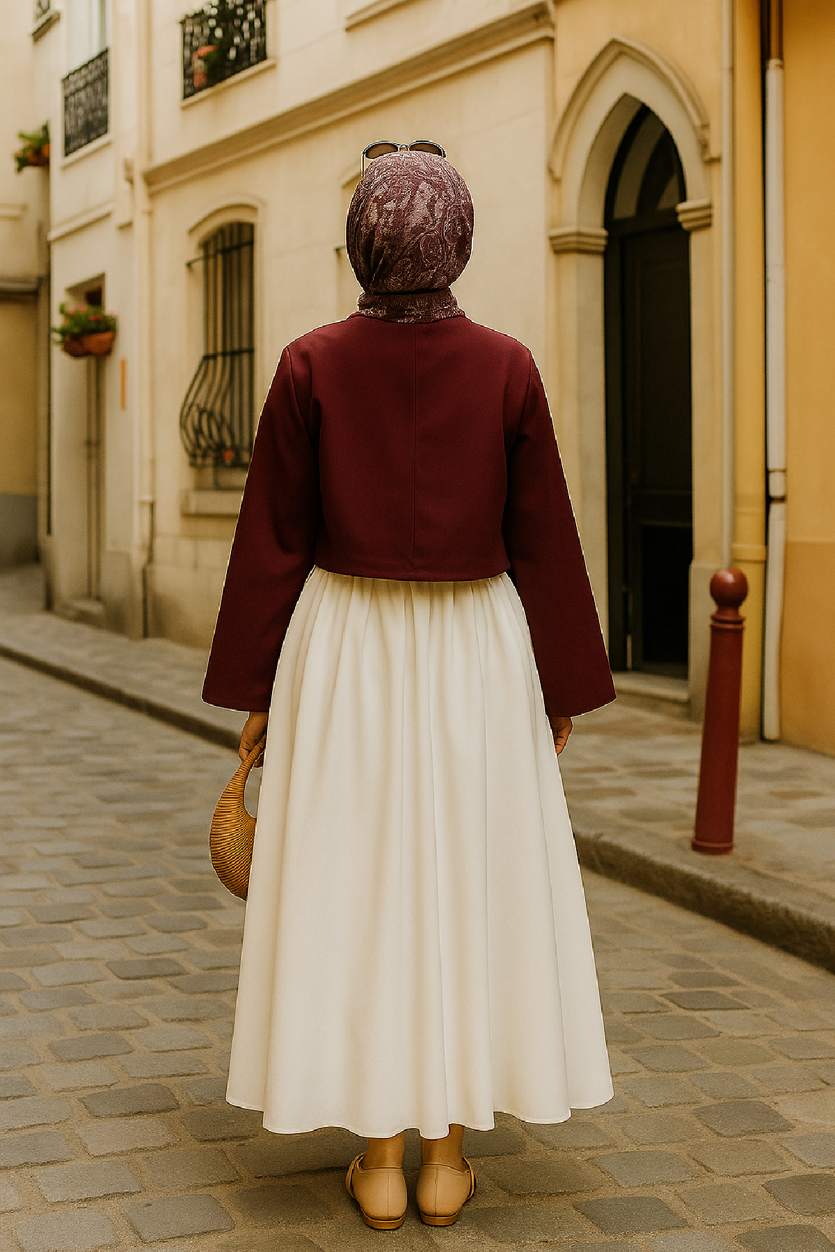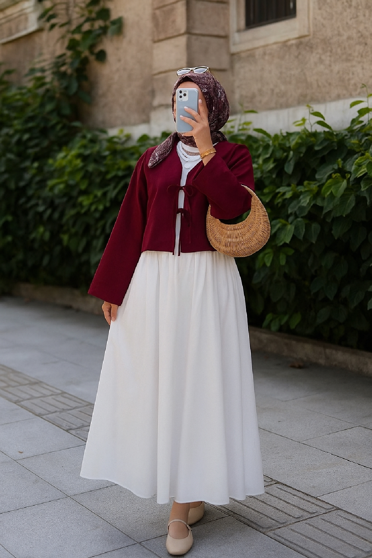 • Tesettür Kombinleri: Uzun elbiseler veya tuniklerle uyum sağlayarak zarif bir alternatif sunar.