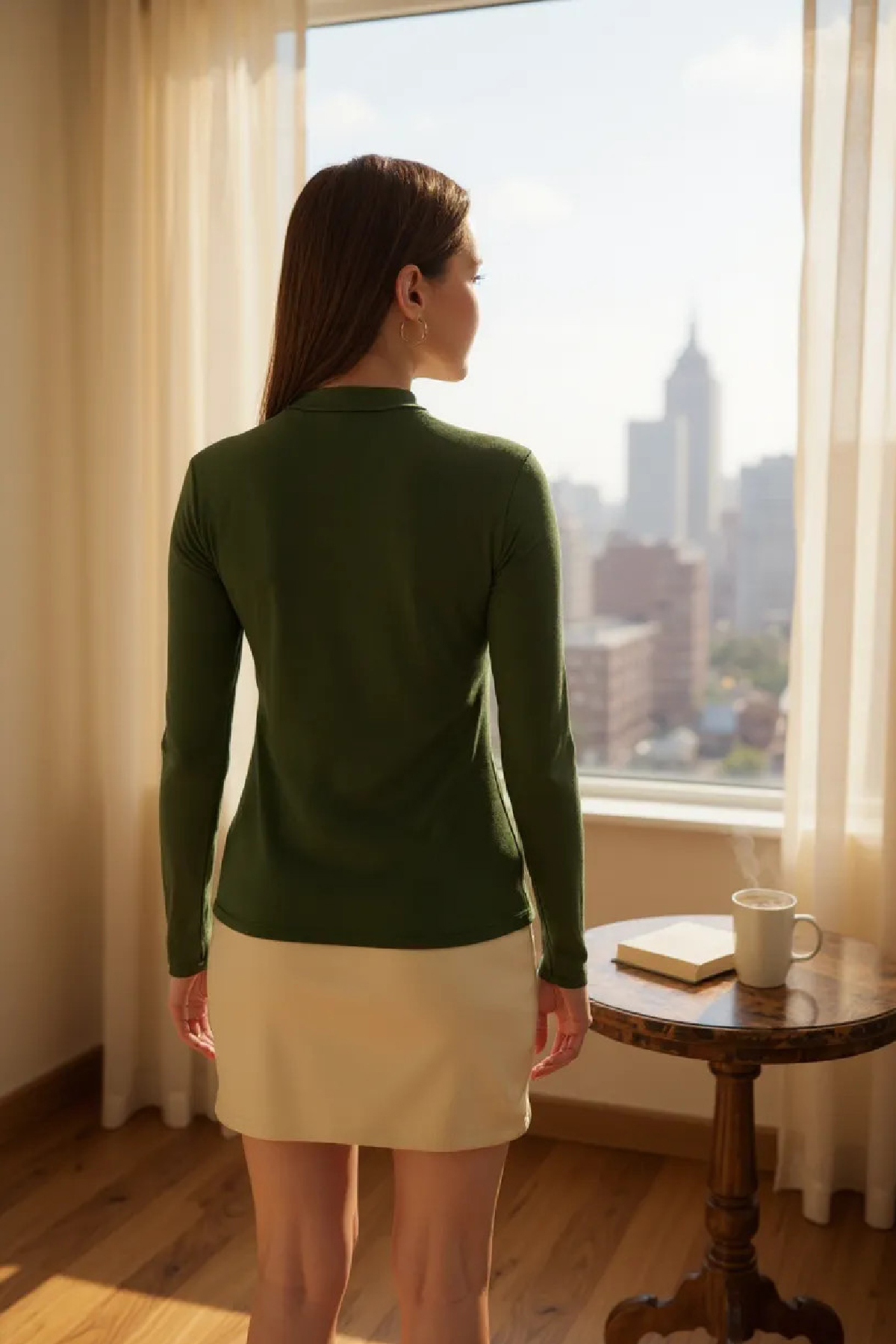 • Bu kadın haki yeşili uzun kollu body, doğallığı ve şıklığı aynı anda sunarak hem günlük hem de özel kombinlerinizde vazgeçilmez bir parça olacak.