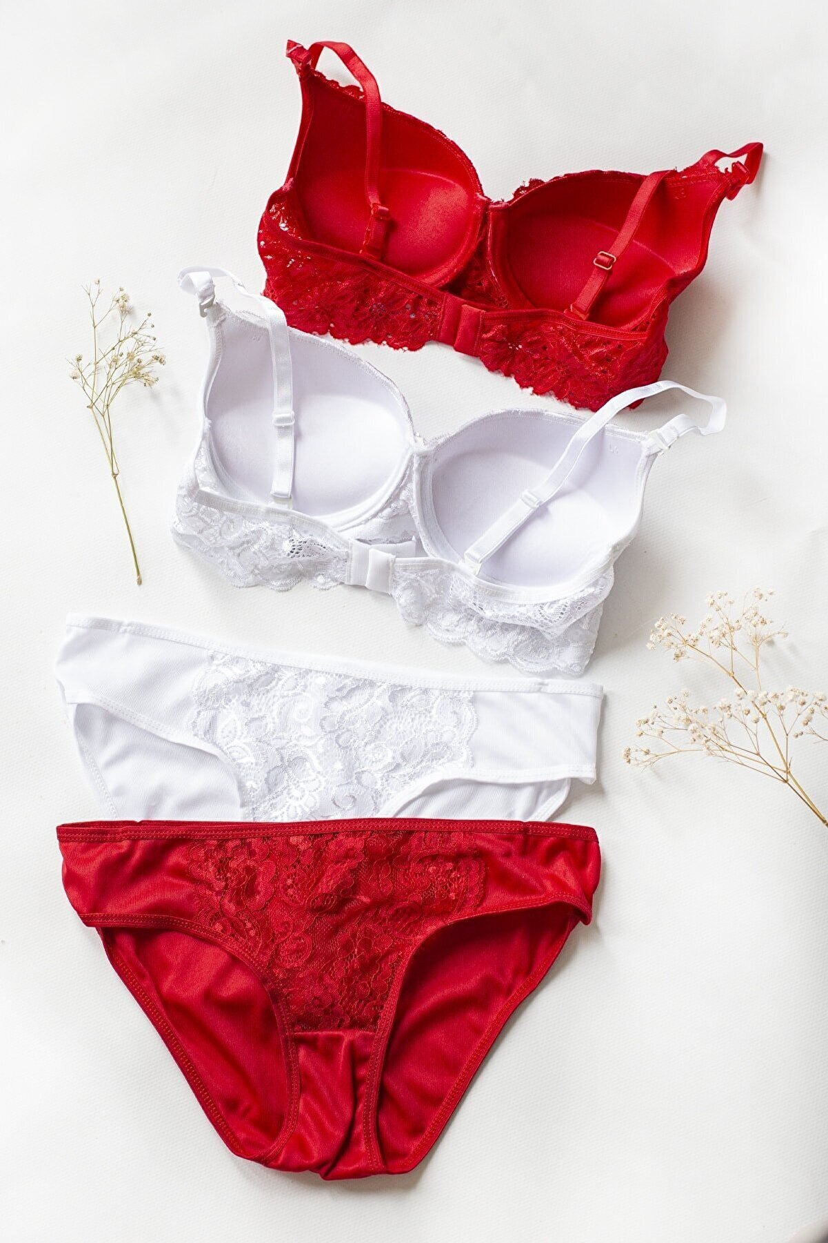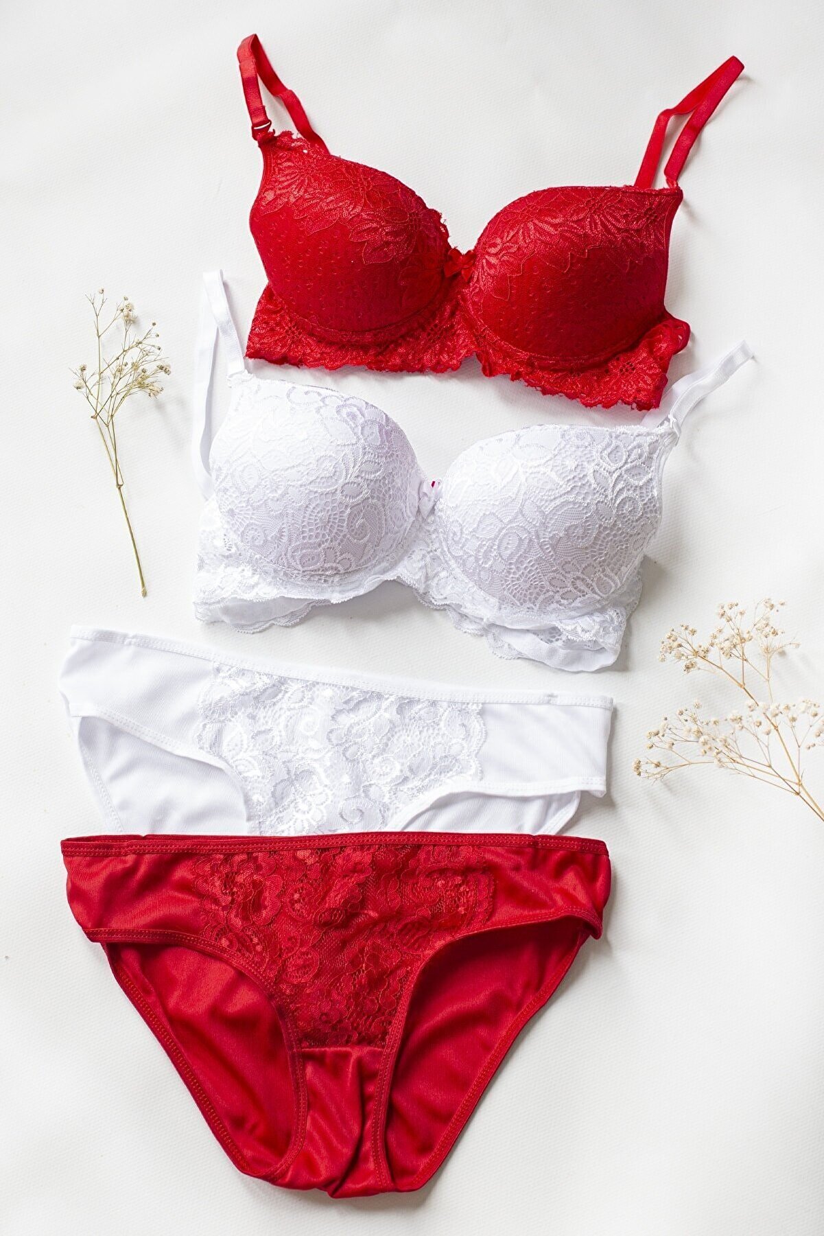 Kadın Kırmızı ve Beyaz Dolgulu Balenli Sütyen Külot 2’li Paket – Modern ve Şık Tasarım