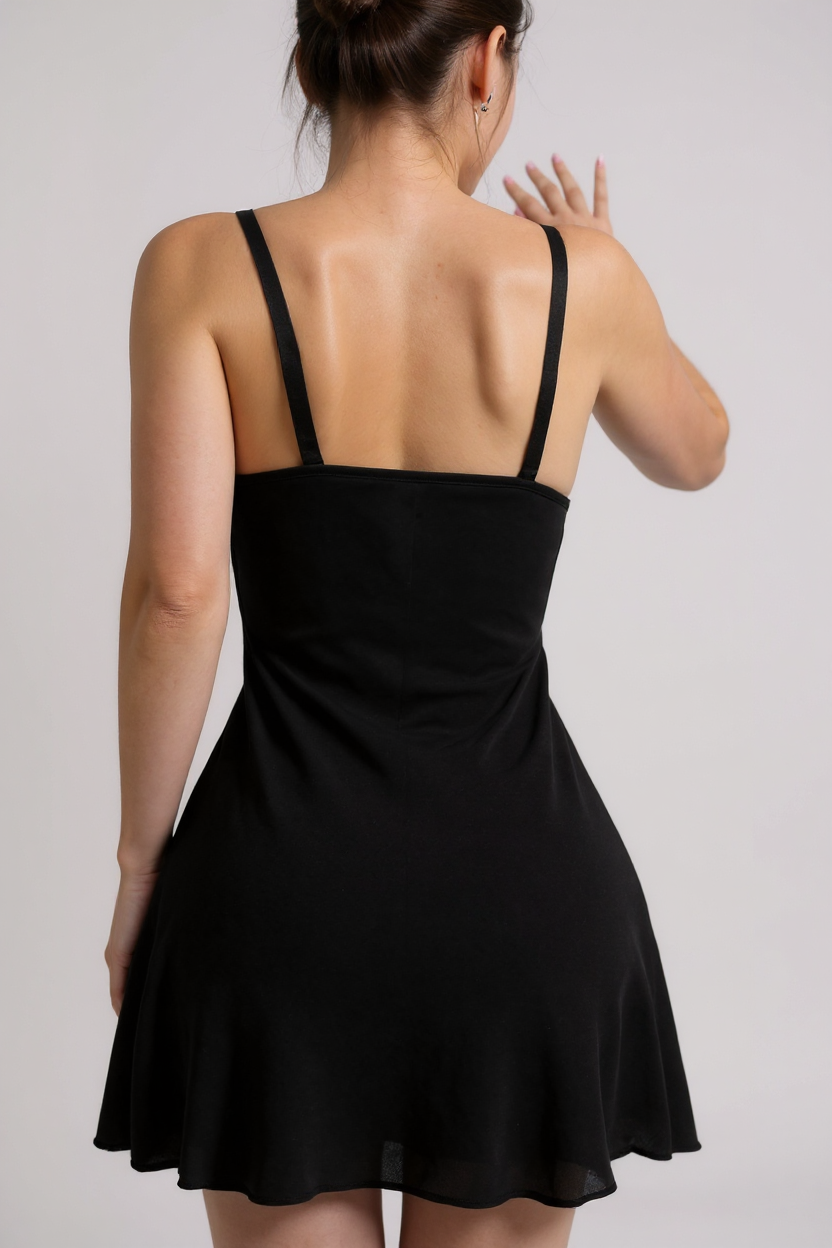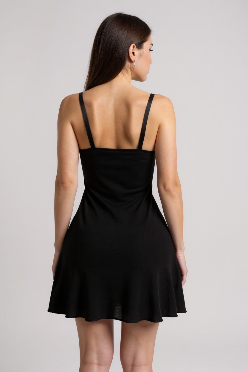 Kadın Siyah Askılı Beli Dantelli Göğsü Fiyonklu Şık Gecelik – Modern ve Şık Tasarım
