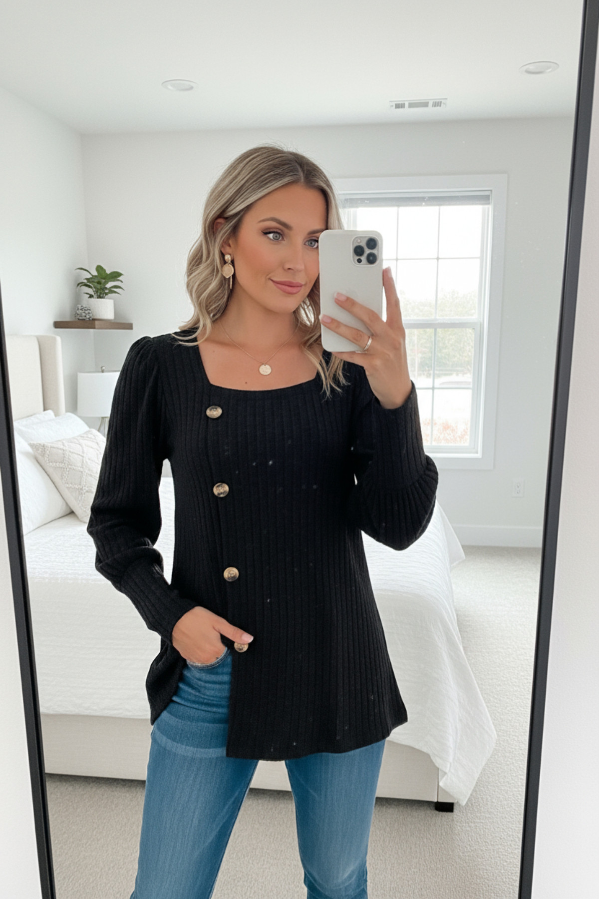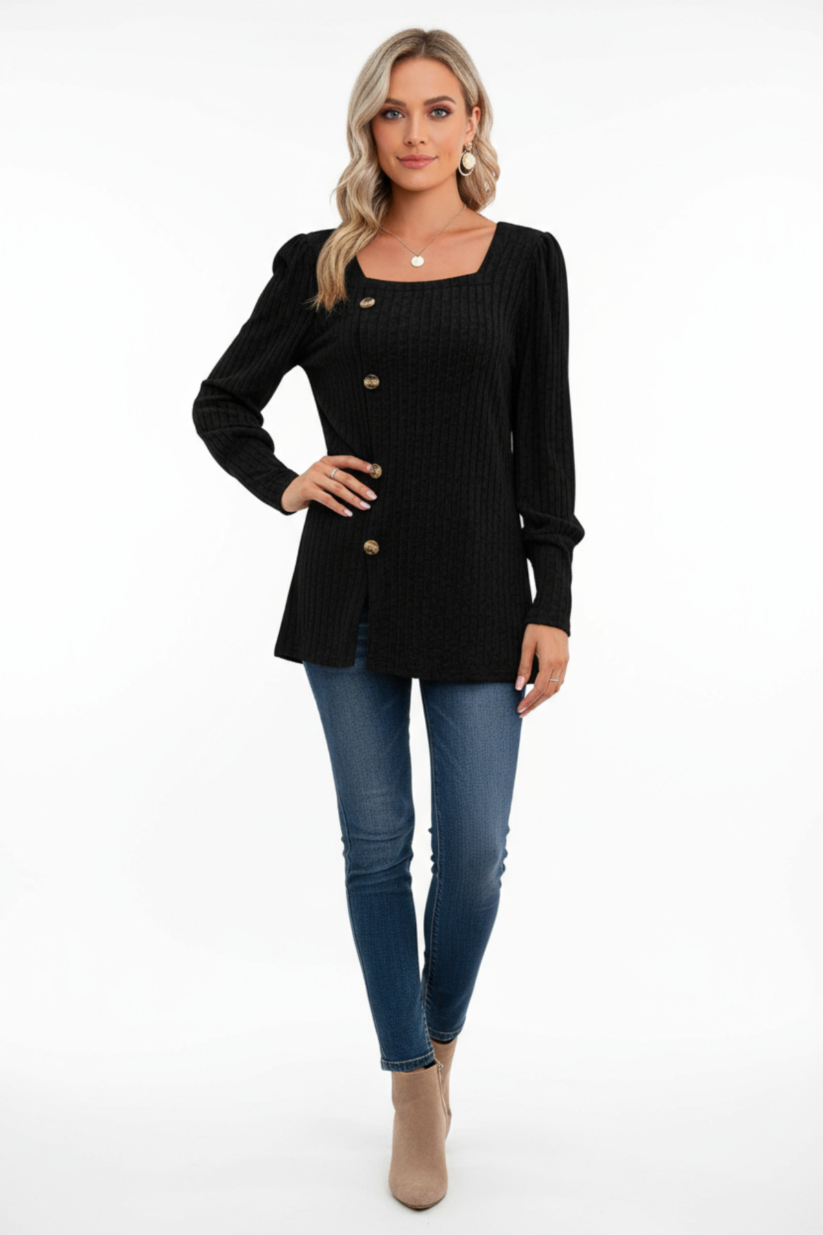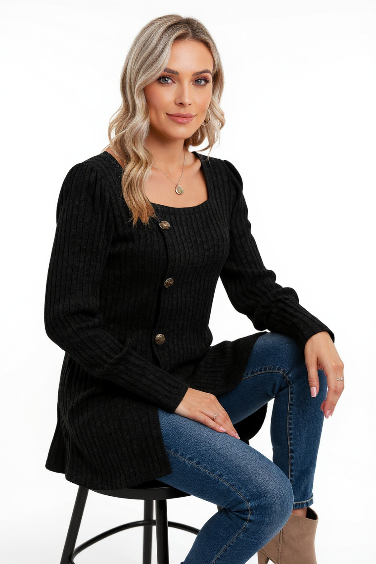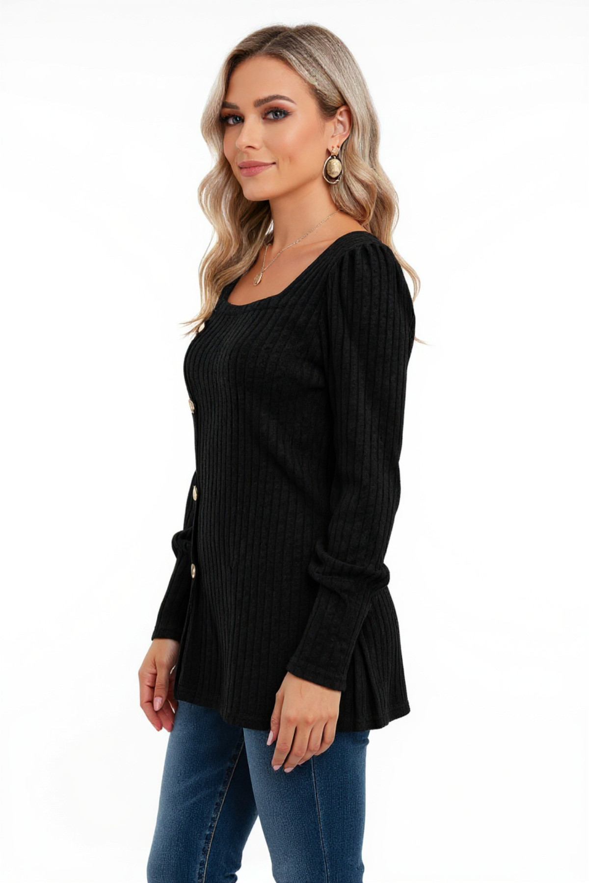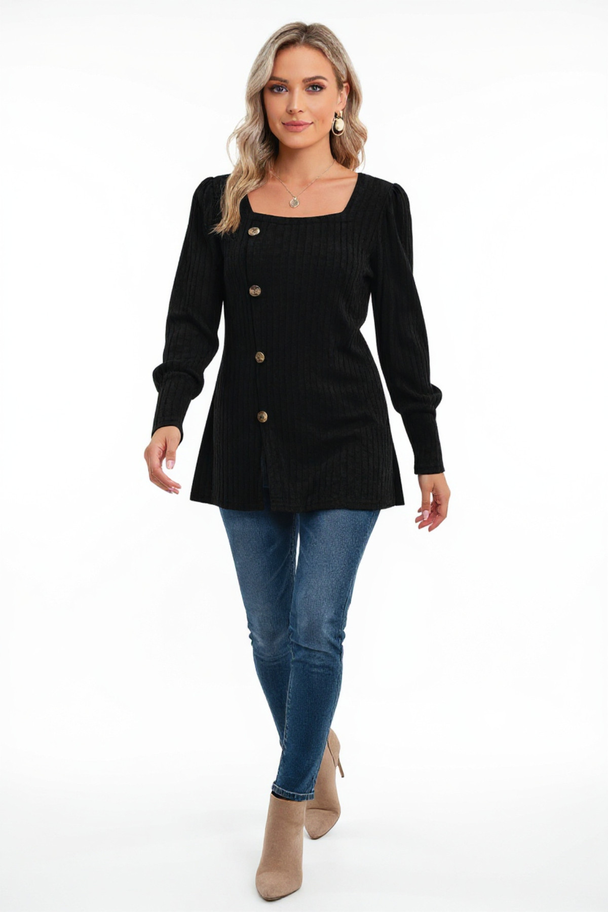 Kadın Uzun Kollu Düğmeli Mevsimlik Bluz – Yumuşak Dokulu, Esnek ve Sıcak Tutan Kumaş