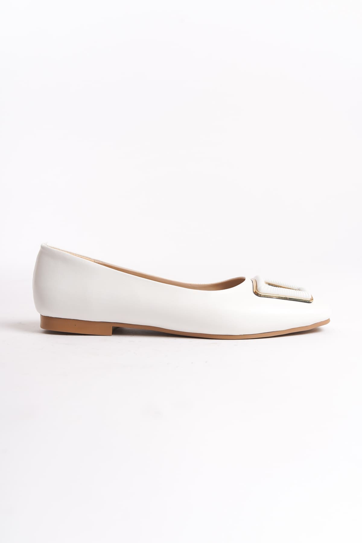 KAYLEE Bağcıksız Ortopedik Rahat Taban Toka Detaylı Kadın Babet Ayakkabı CKT – Beyaz