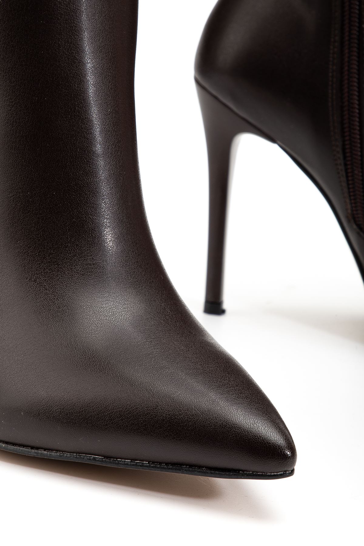 LS-226 Kahve Cilt Fermuarlı Lastikli İnce Yüksek Topuklu Kadın Çizme