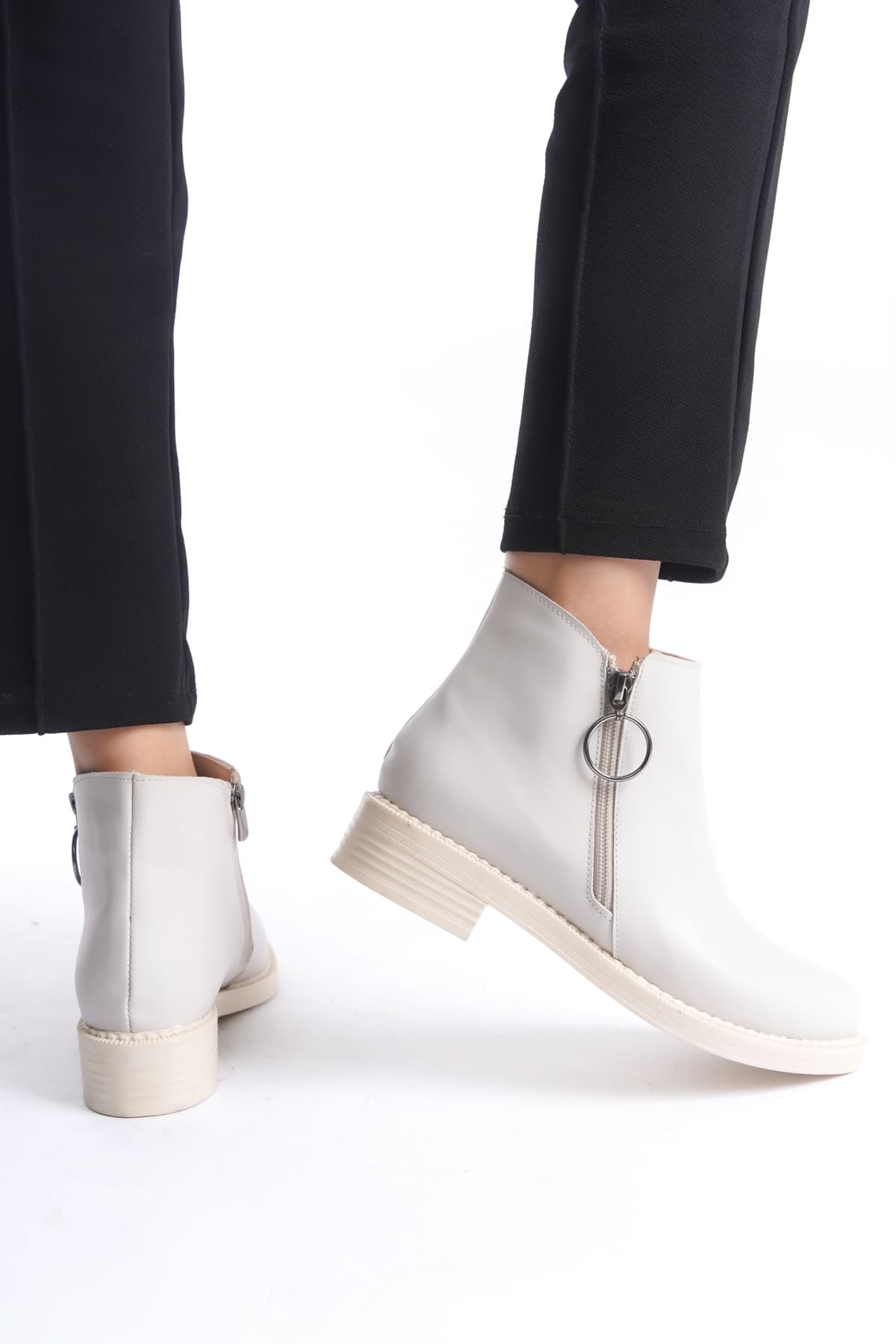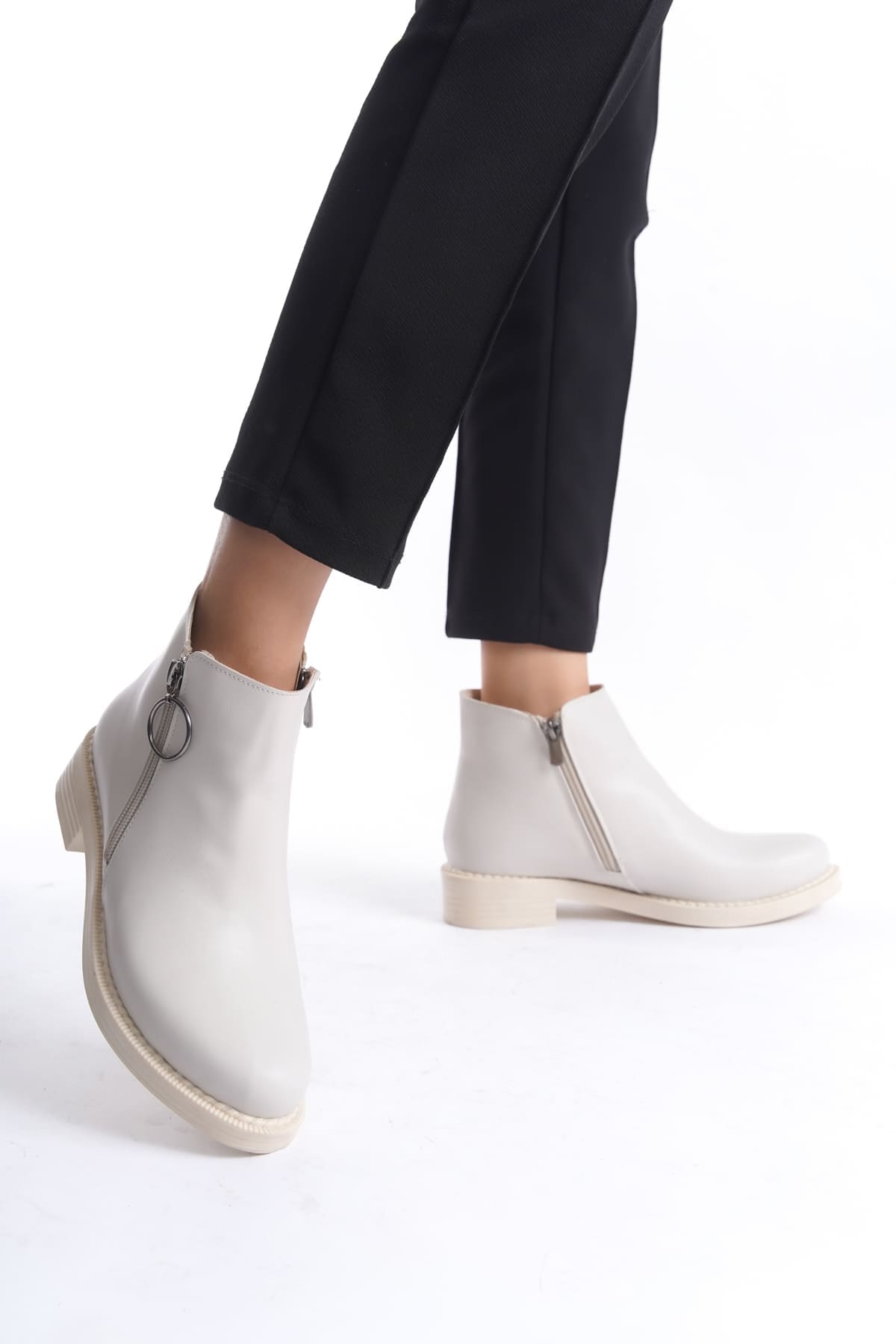 MARGARET Fermuarlı Ortopedik Taban Topuklu Kadın Bot CKT – Krem