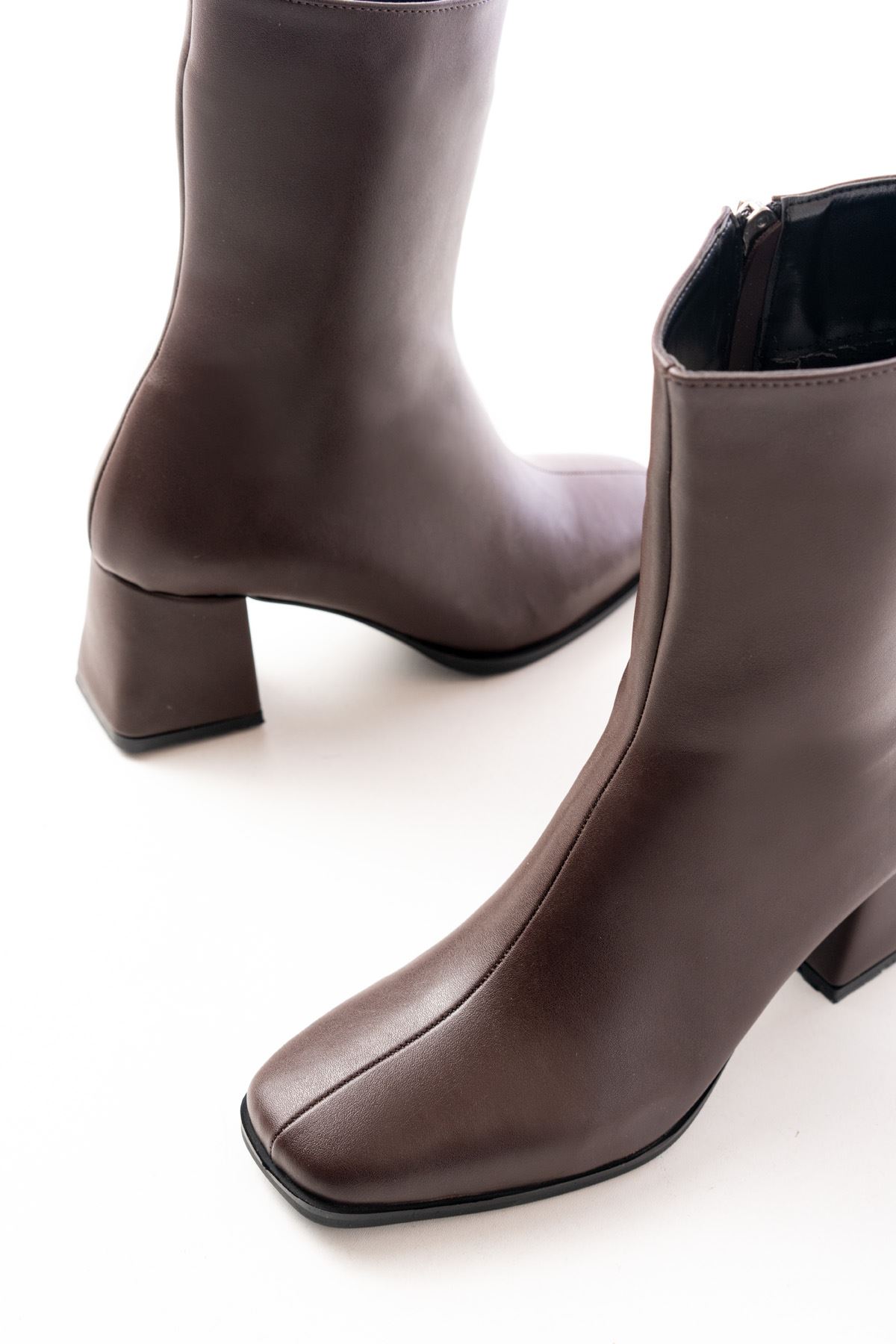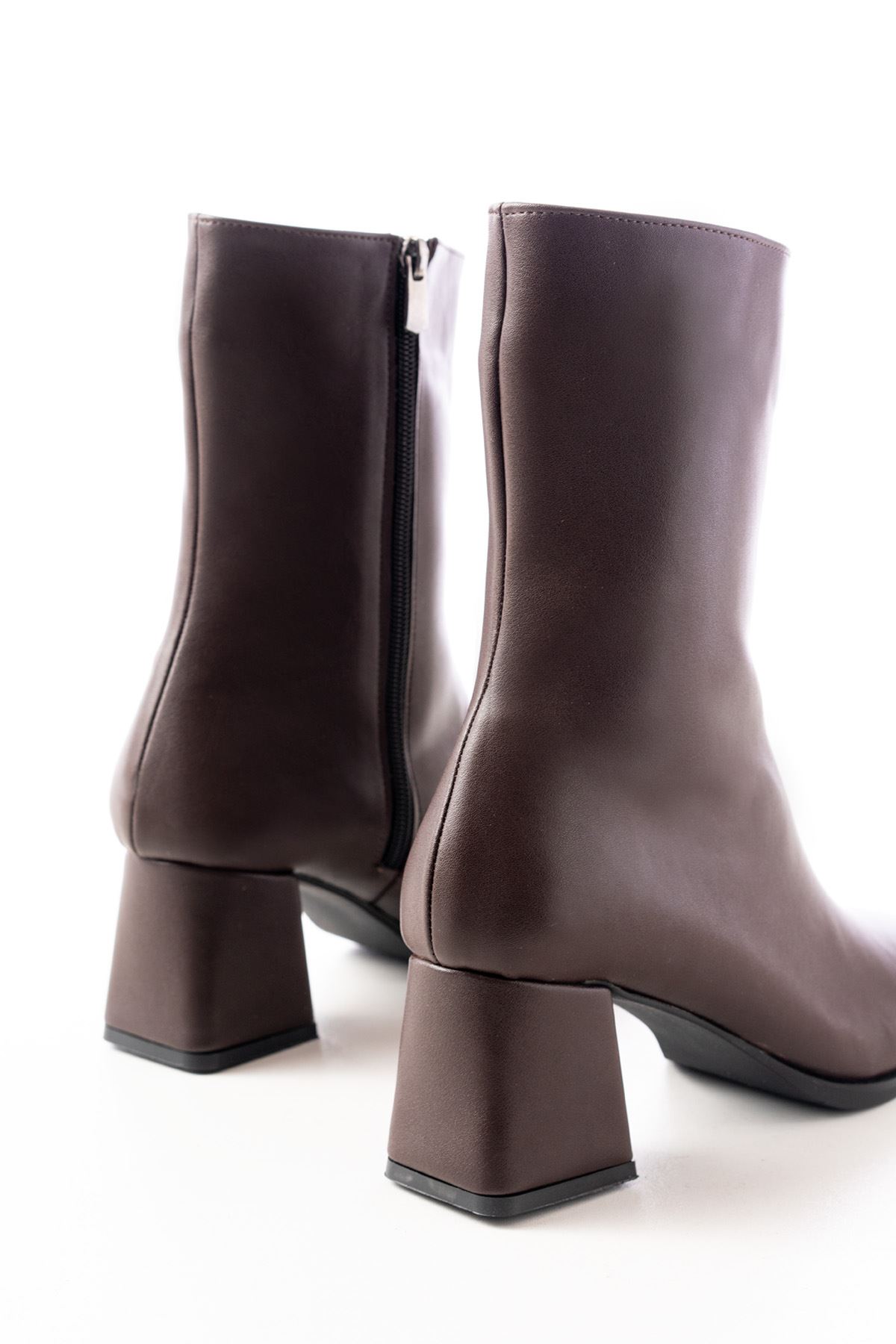 MSK-032 Kahve Topuklu Fermuarlı Kadın Bot