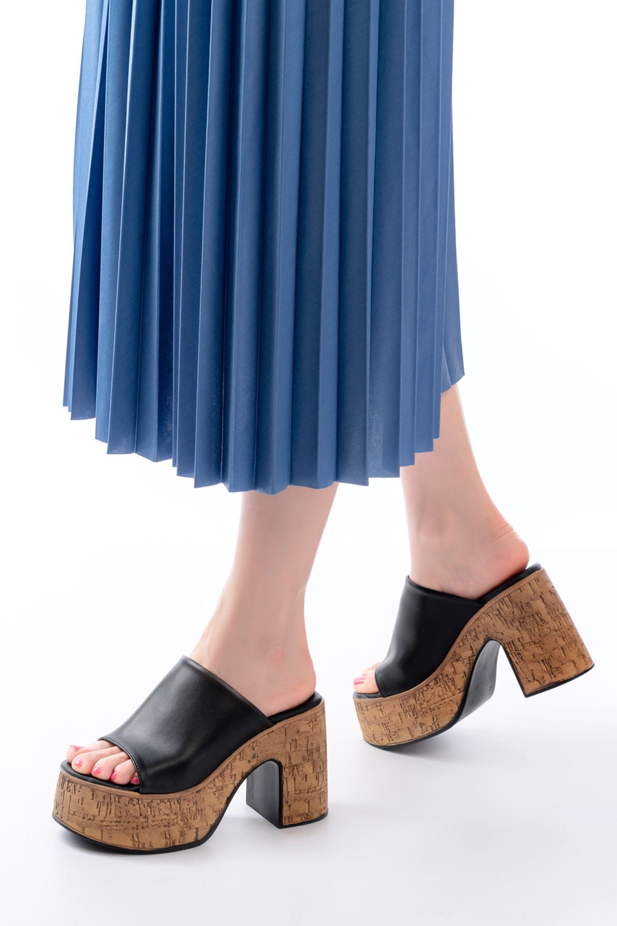 N-7308 Siyah Kalın Yüksek Taban Kadın Terlik
