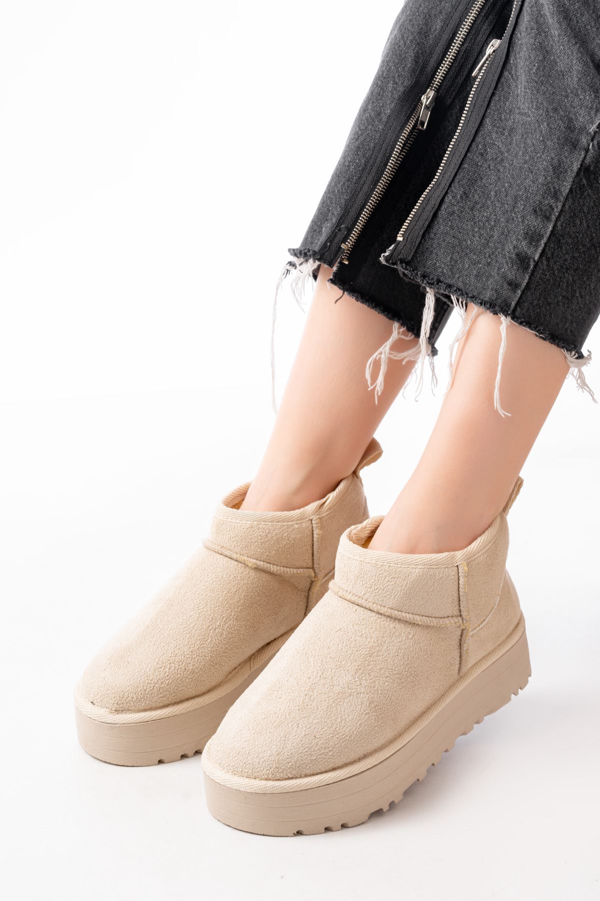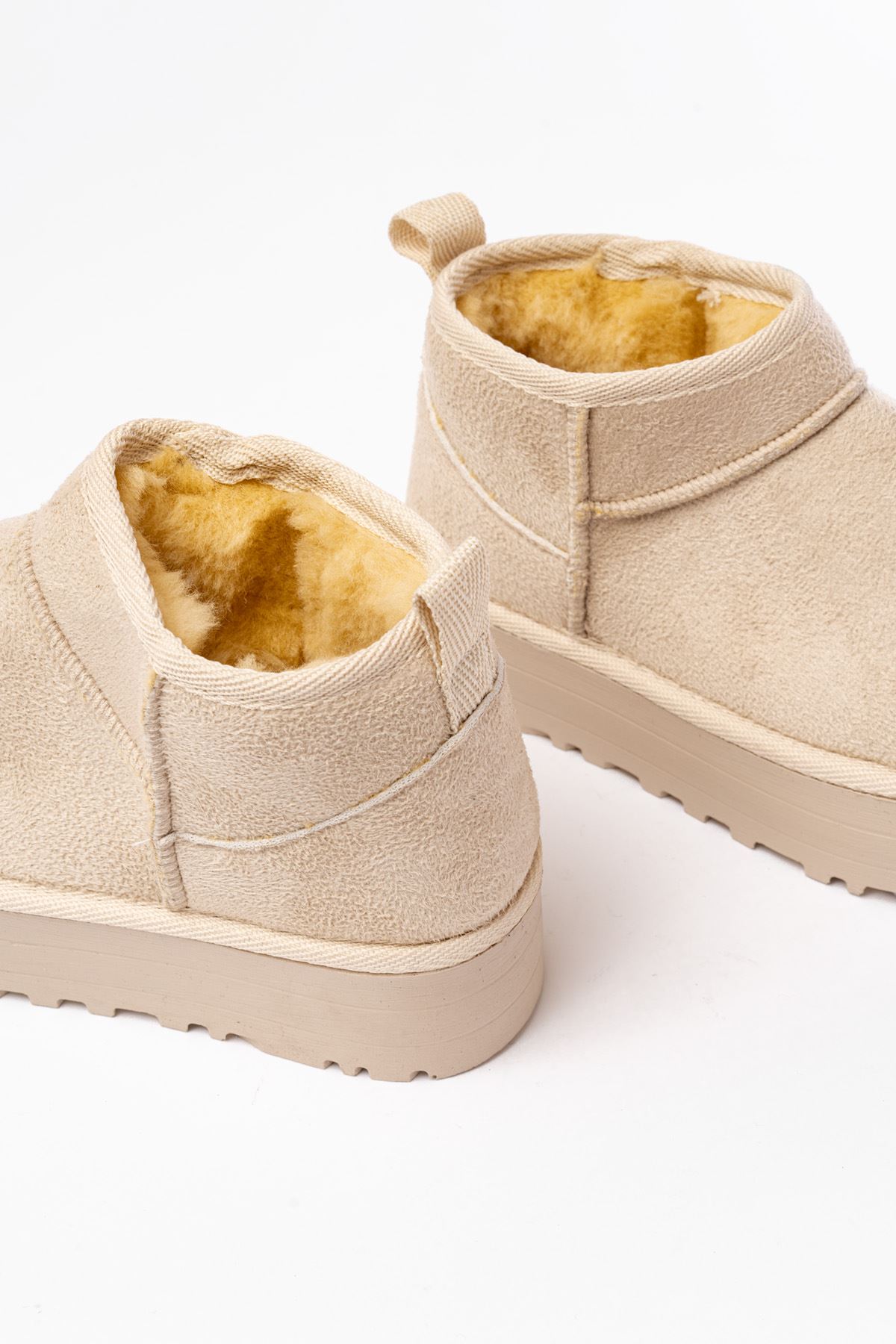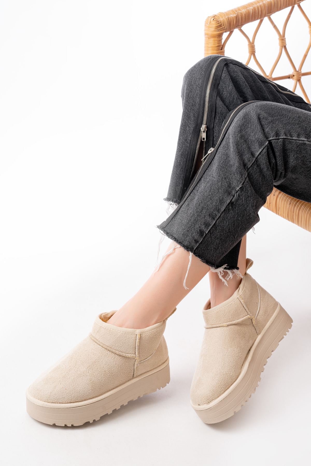 NDR-2850 Bej Süet İçi Kürklü Kışlık Kapalı Burun Kadın Günlük Terlik
