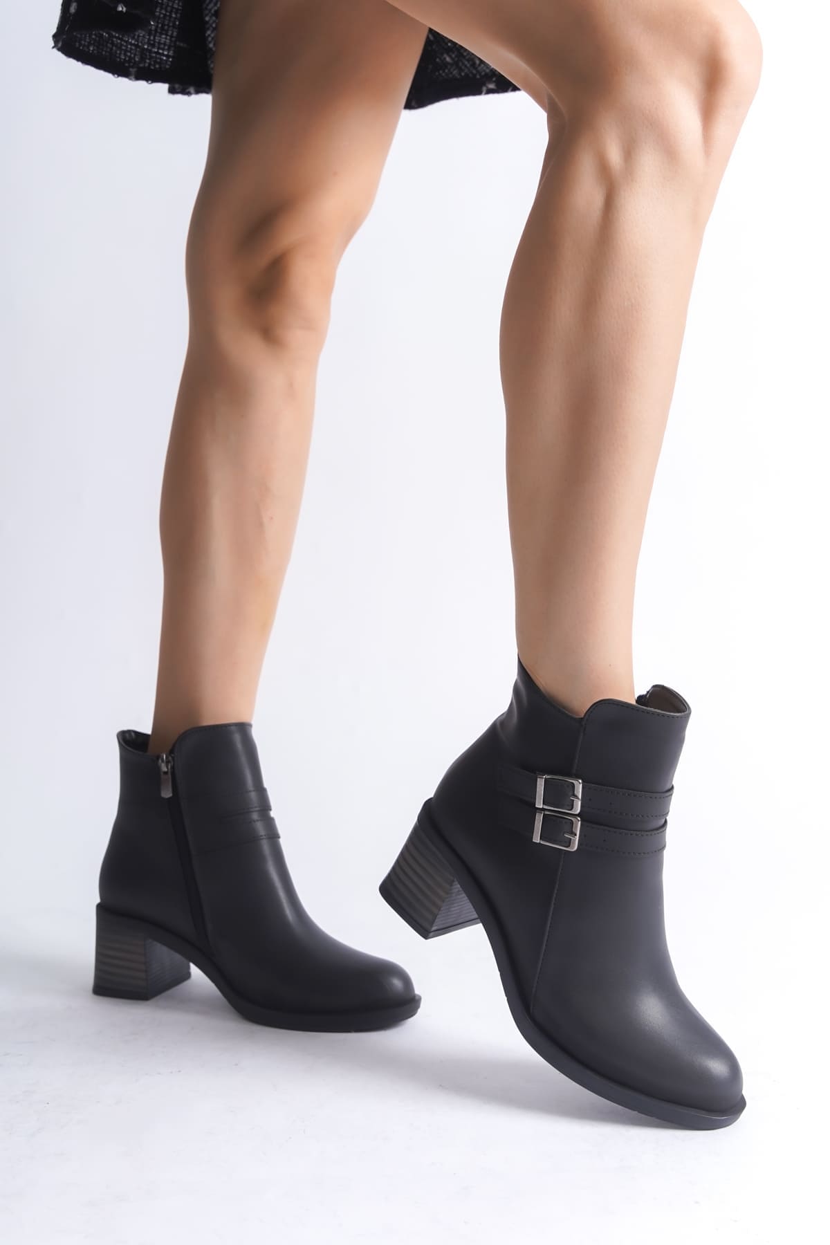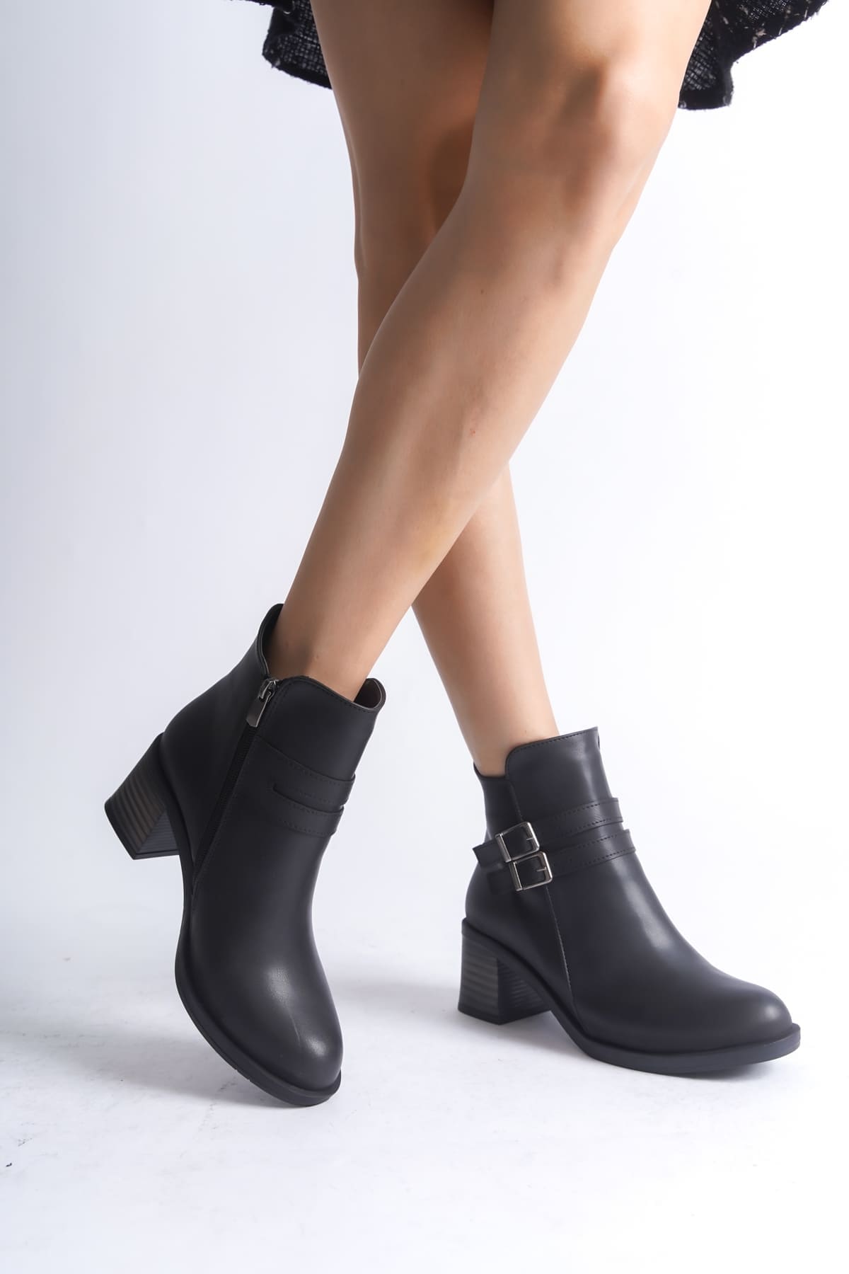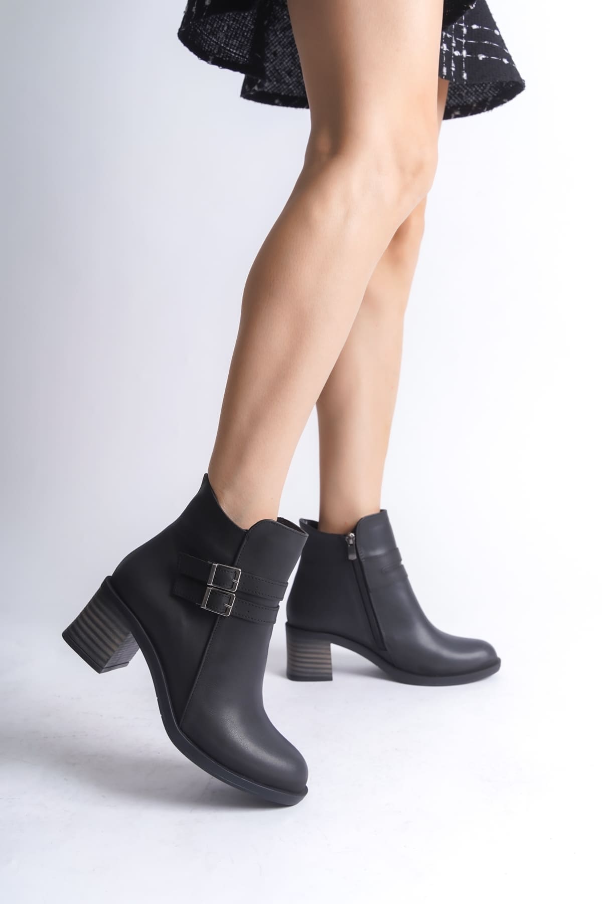 NOEMI Tokalı Fermuarlı Ortopedik Taban Topuklu Kadın Bot CST – Siyah