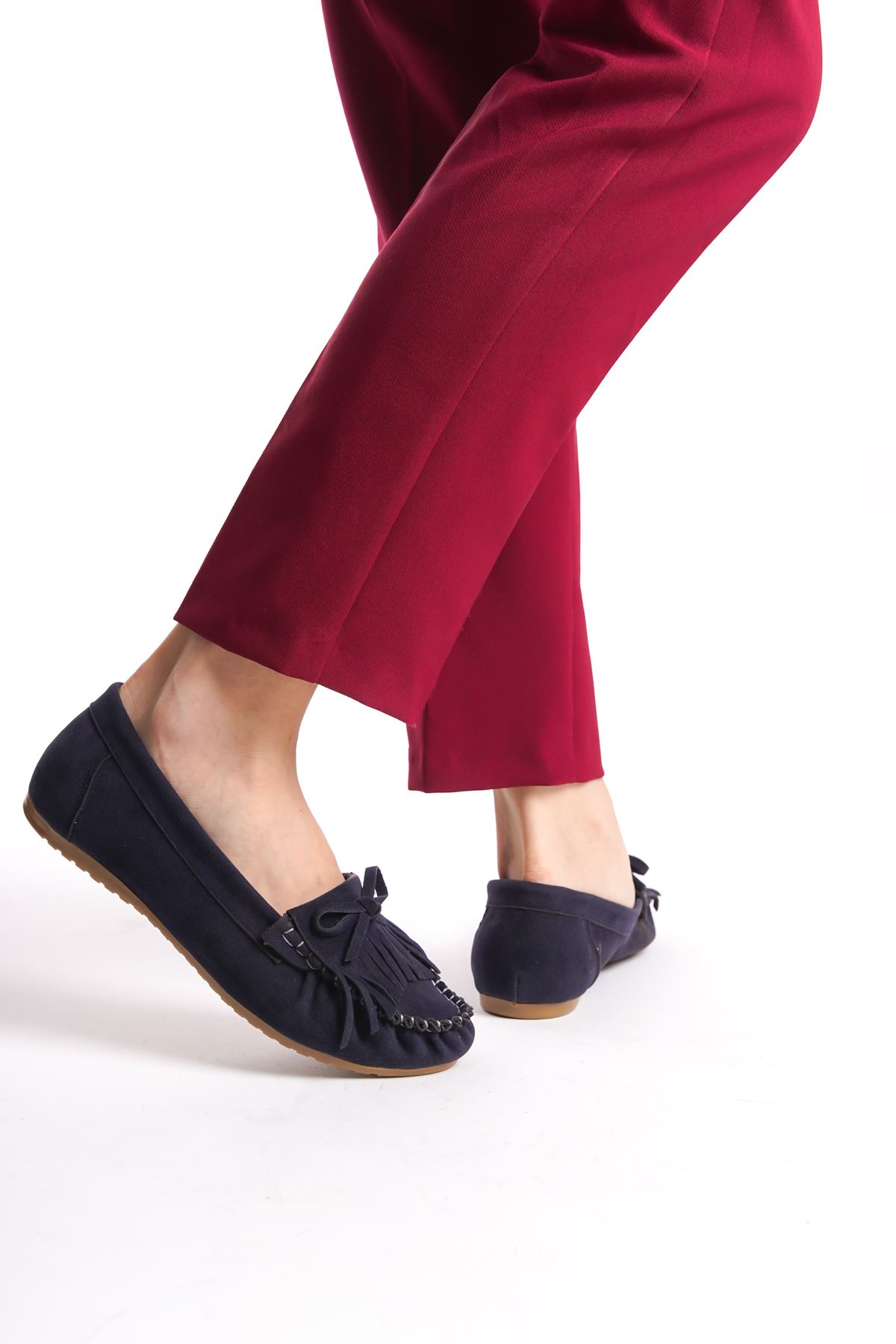 PS-100 Lacivert Süet Püsküllü Günlük Kadın Babet
