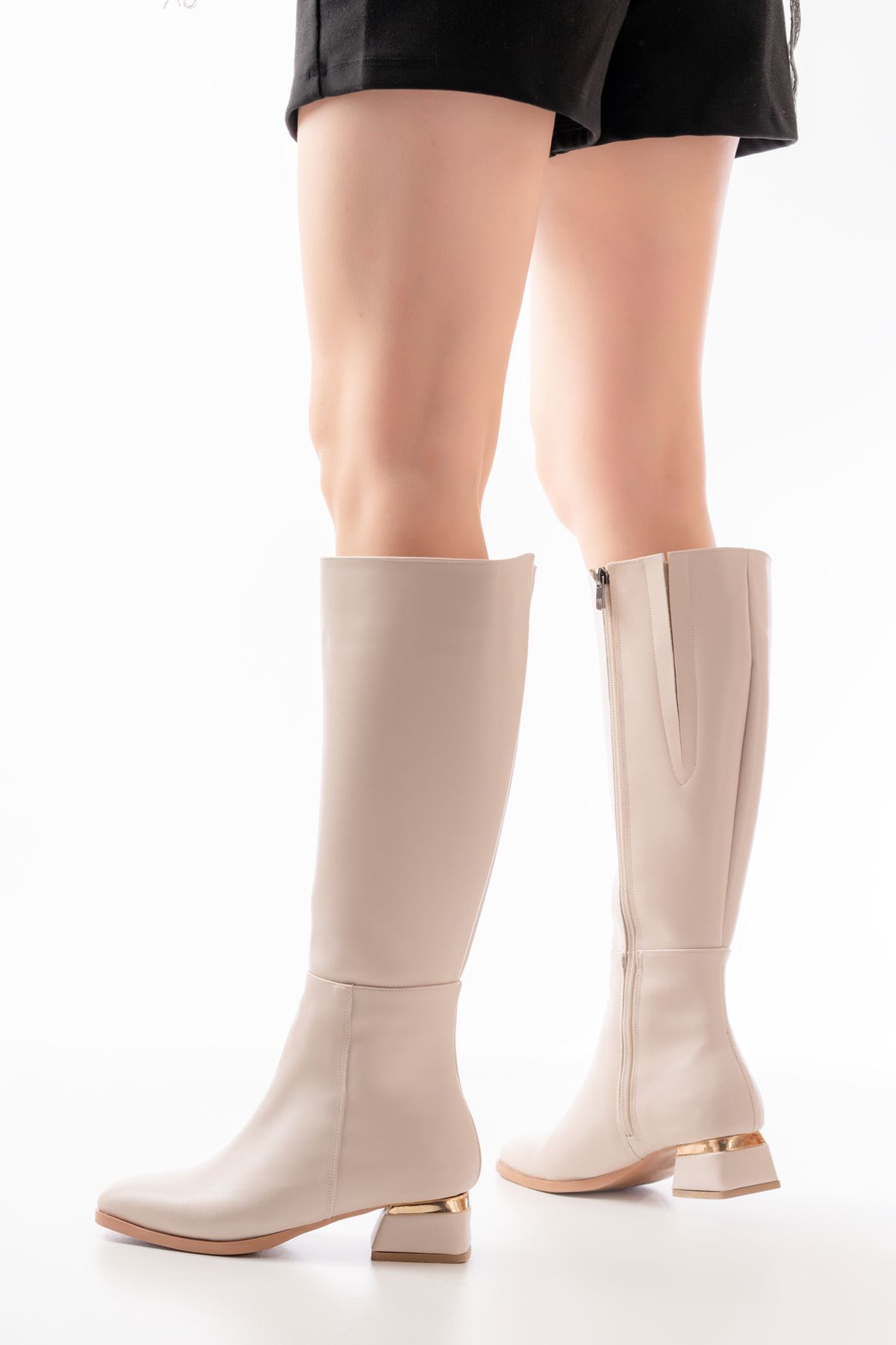 RM-505 Bej Topuklu Fermuarlı Günlük Kadın Çizme