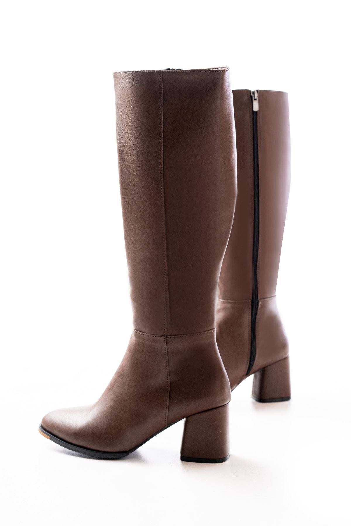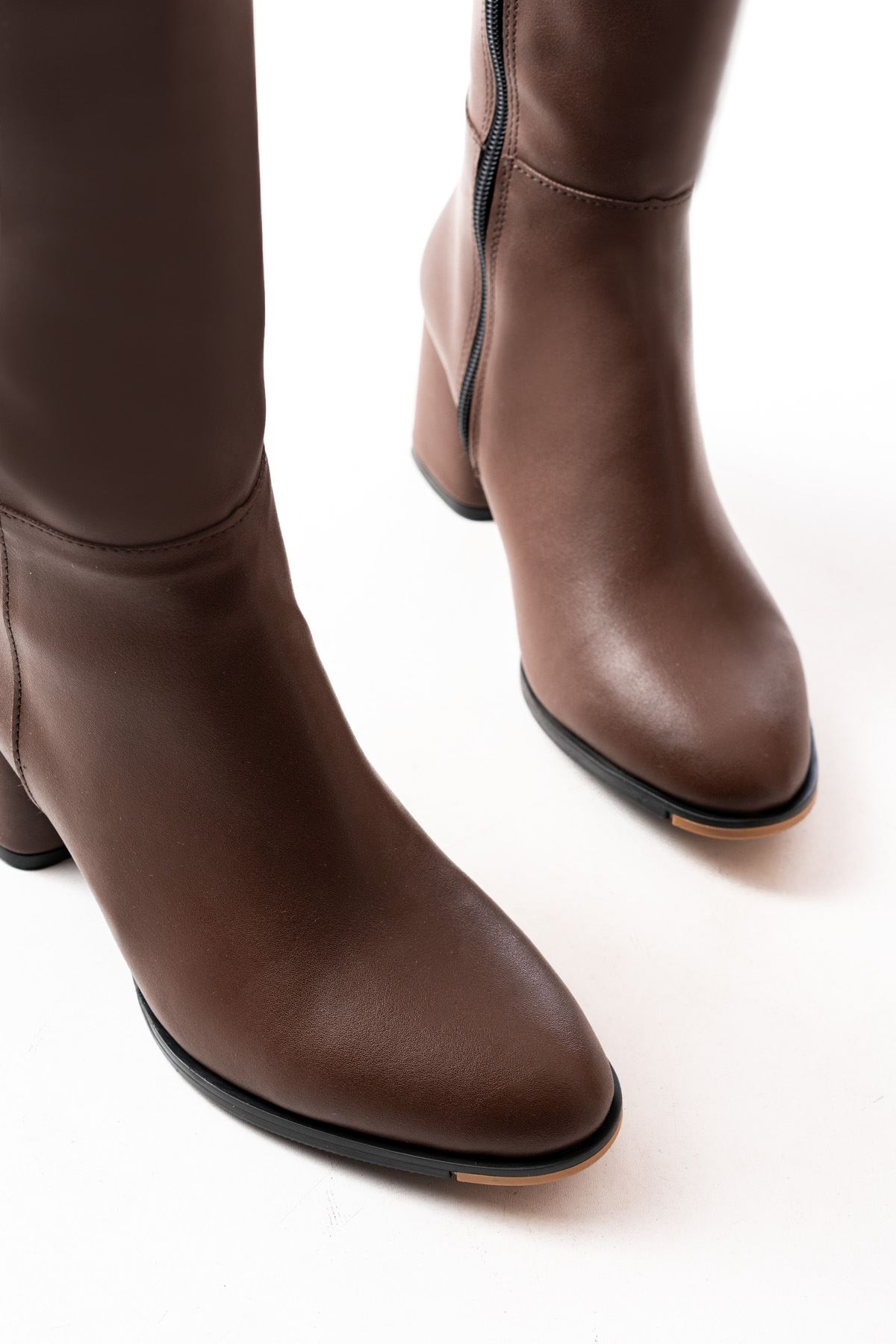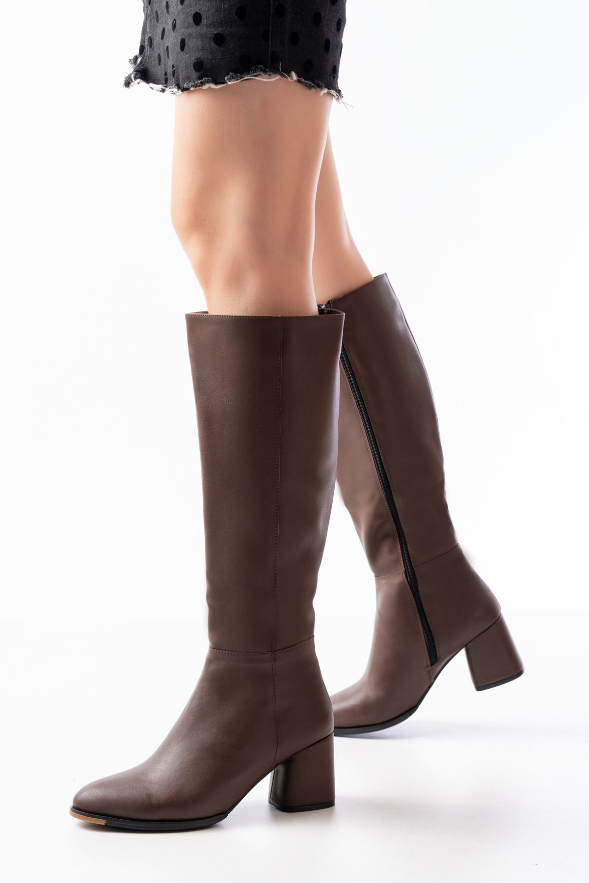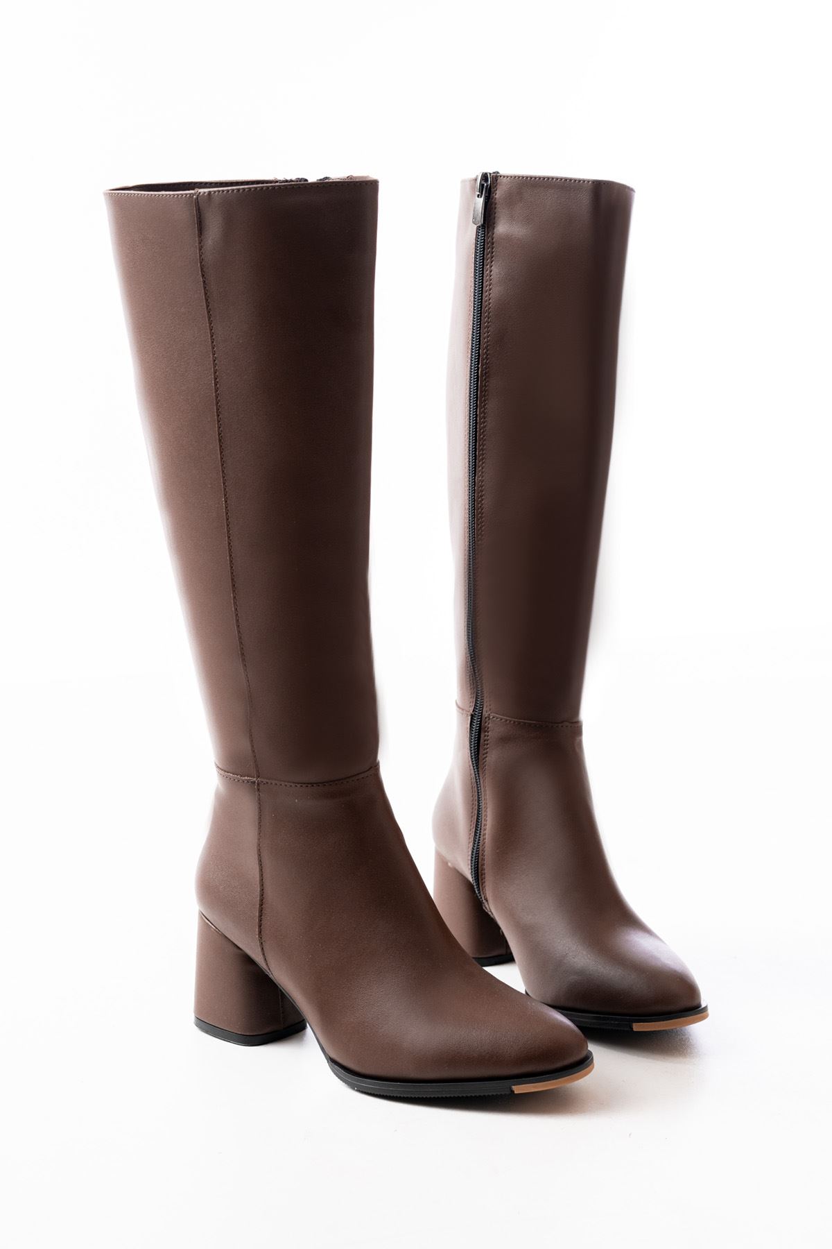 RS-2432 Kahverengi Topuklu Fermuarlı Günlük Kadın Çizme