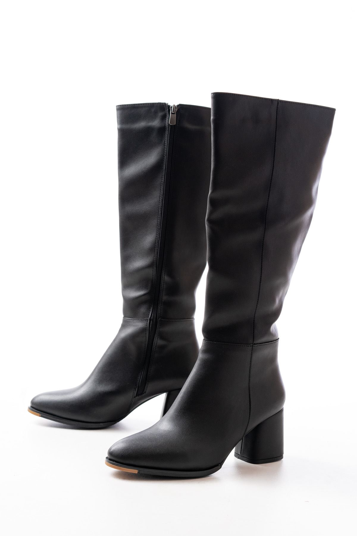 RS-2432 Siyah Topuklu Fermuarlı Günlük Kadın Çizme