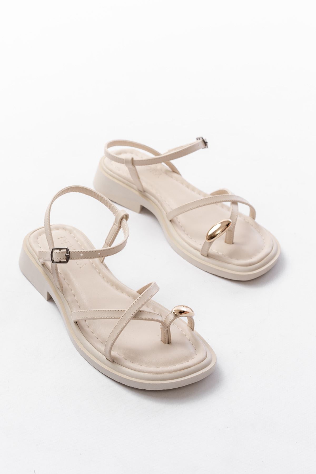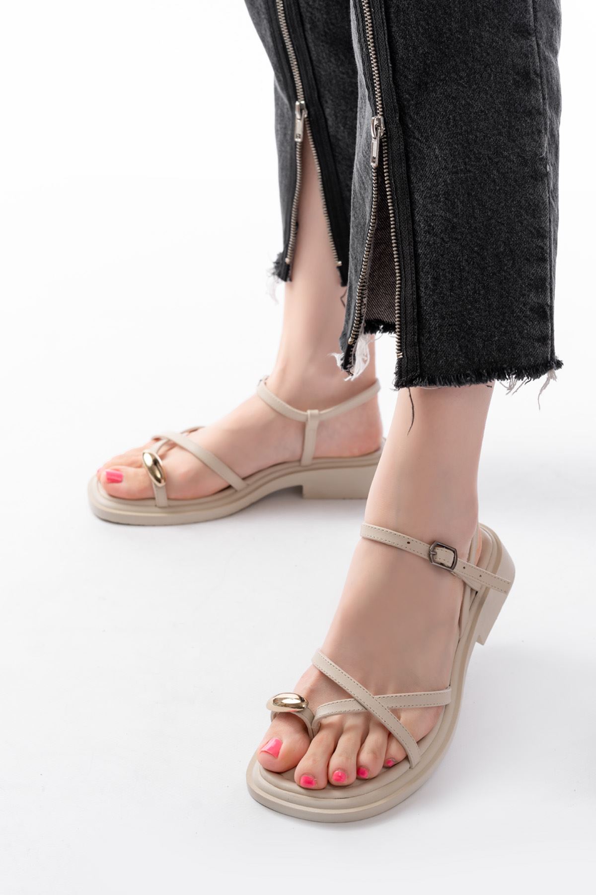 S-101 Bej Parmak Arası Taş Detaylı Günlük Kadın Sandalet