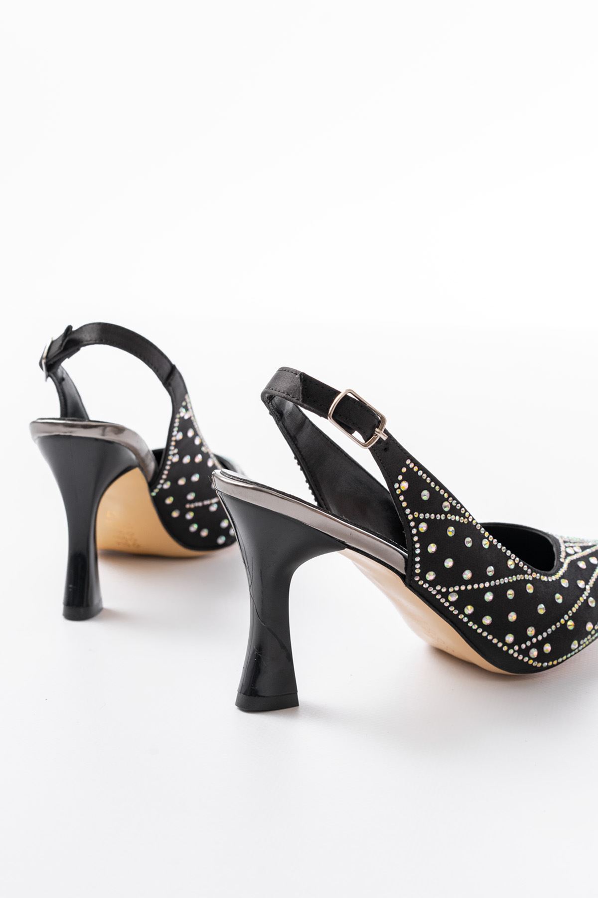 S-601 Siyah Arkası Açık Taş Aksesuarlı Günlük Kadın Sandalet