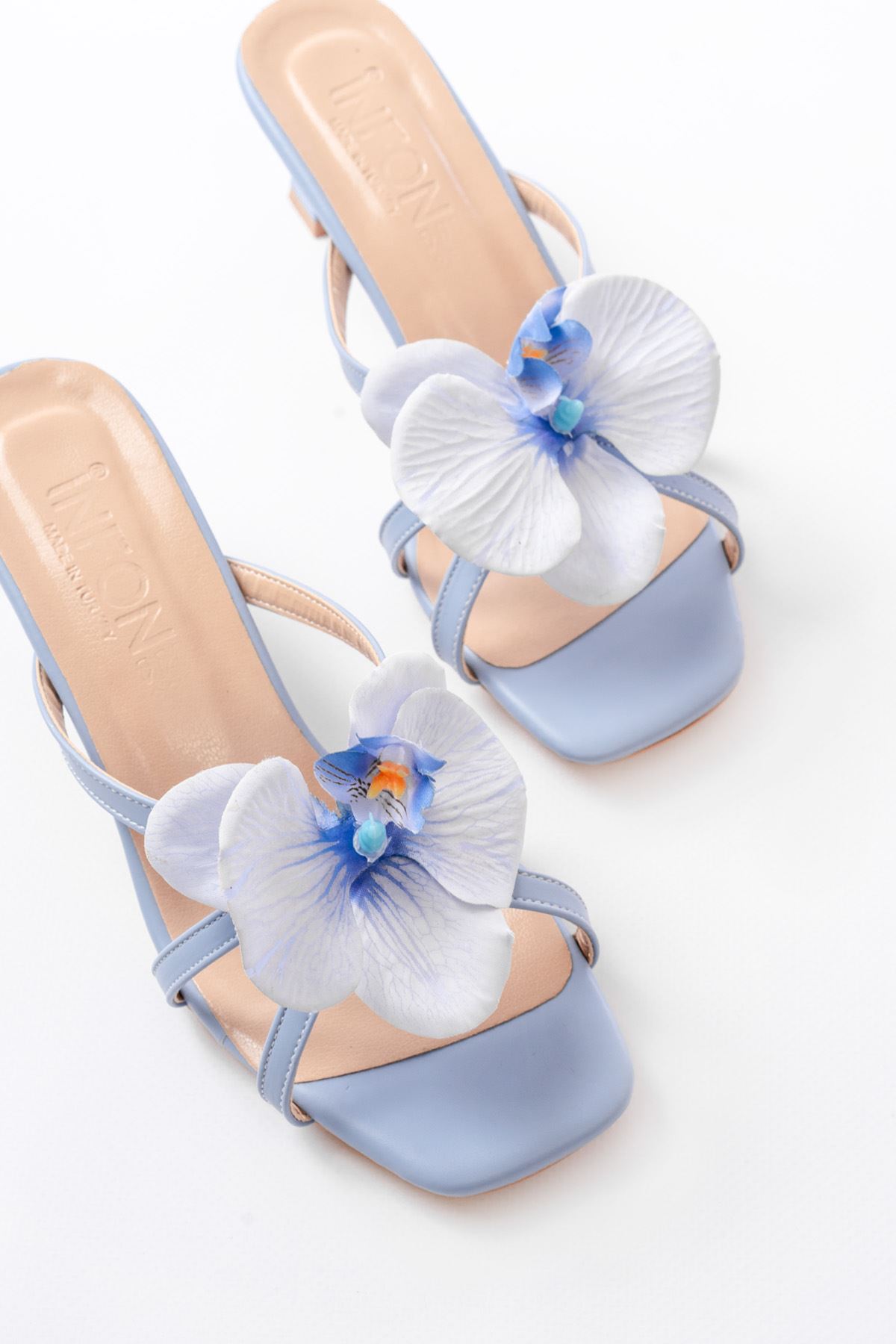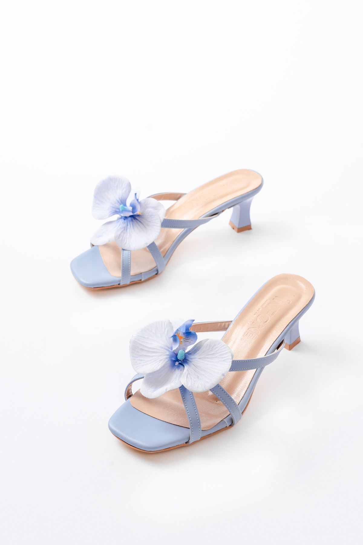 S-622 Bebe Mavi Orkide Detaylı İnce Topuklu Kadın Terlik
