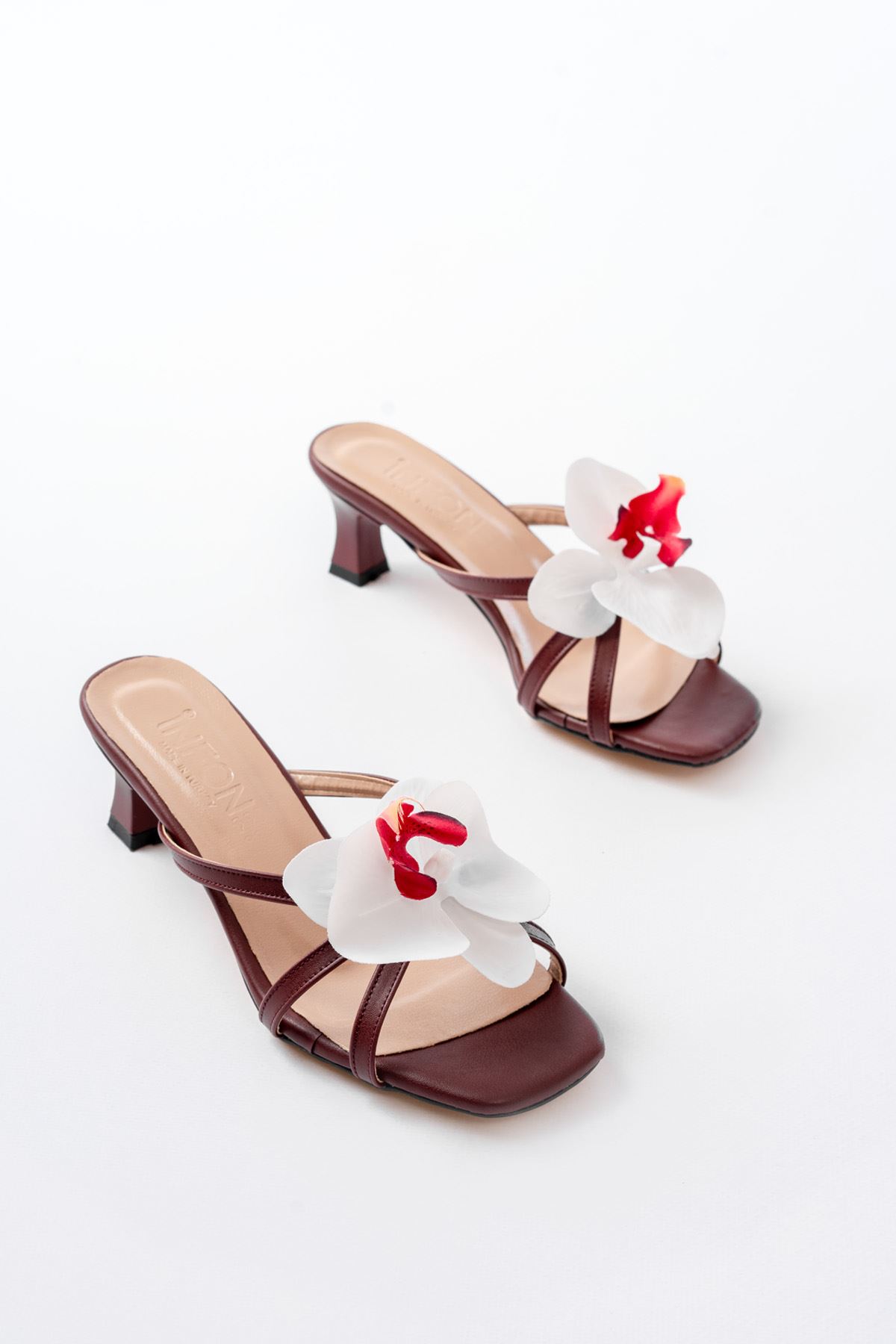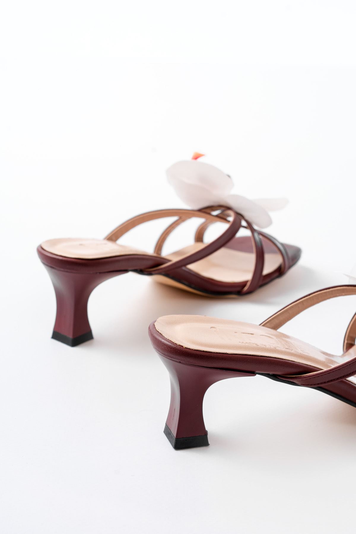 S-622 Bordo Orkide Detaylı İnce Topuklu Kadın Terlik