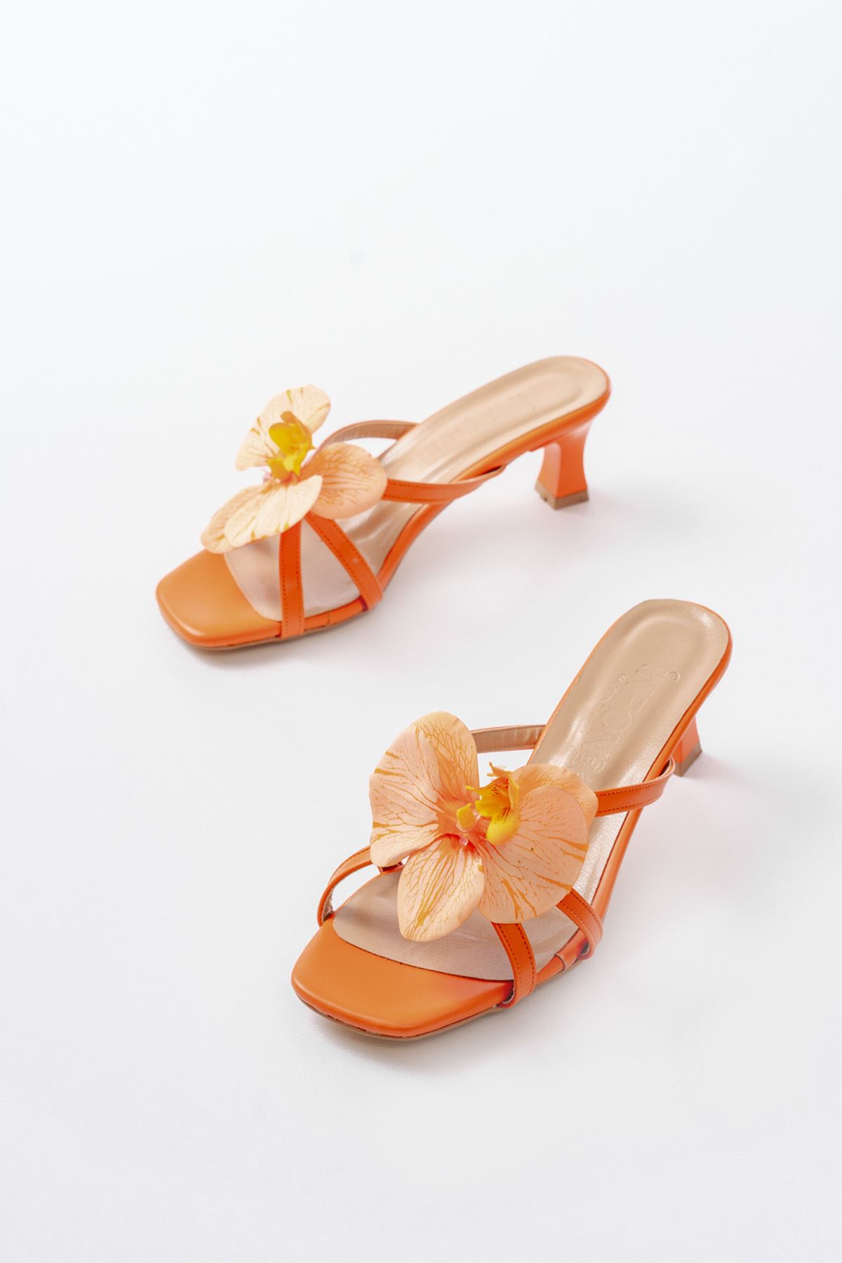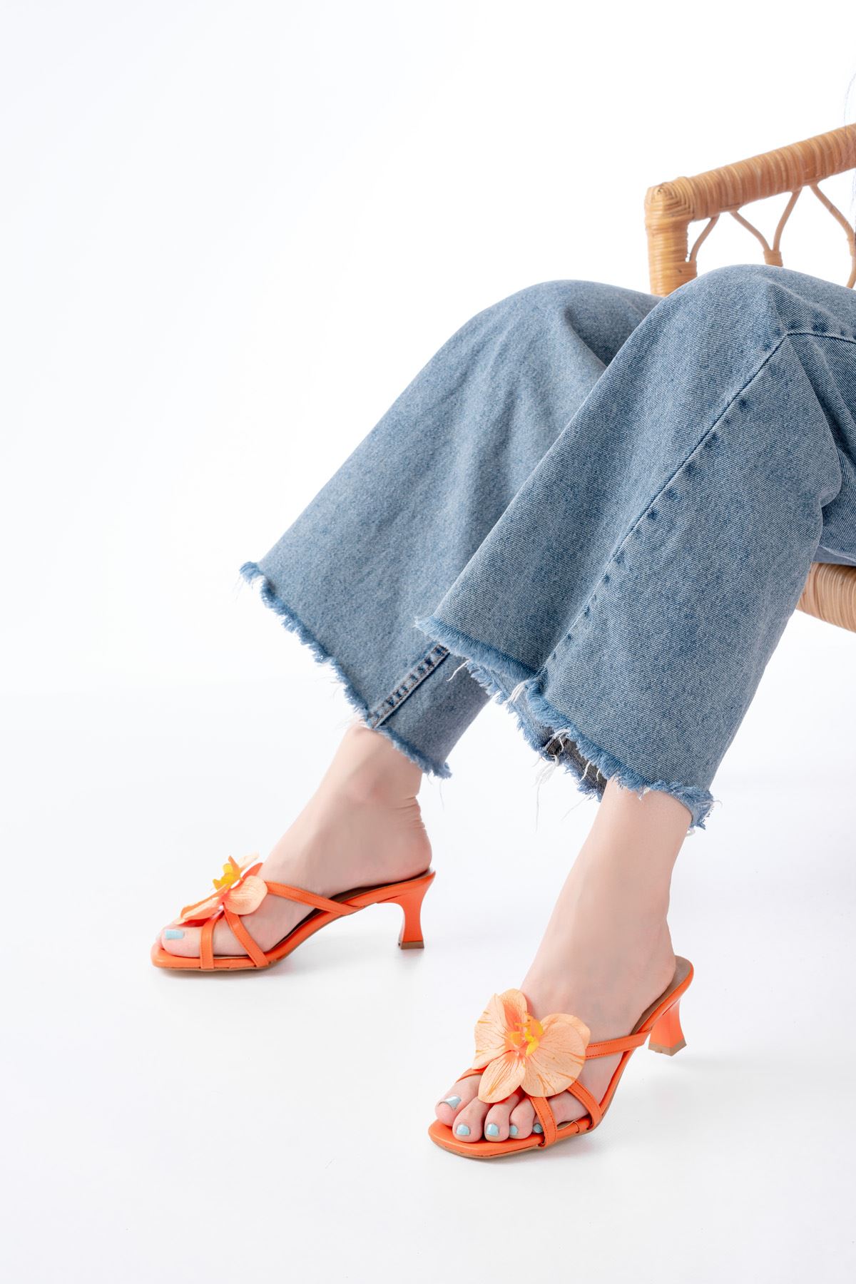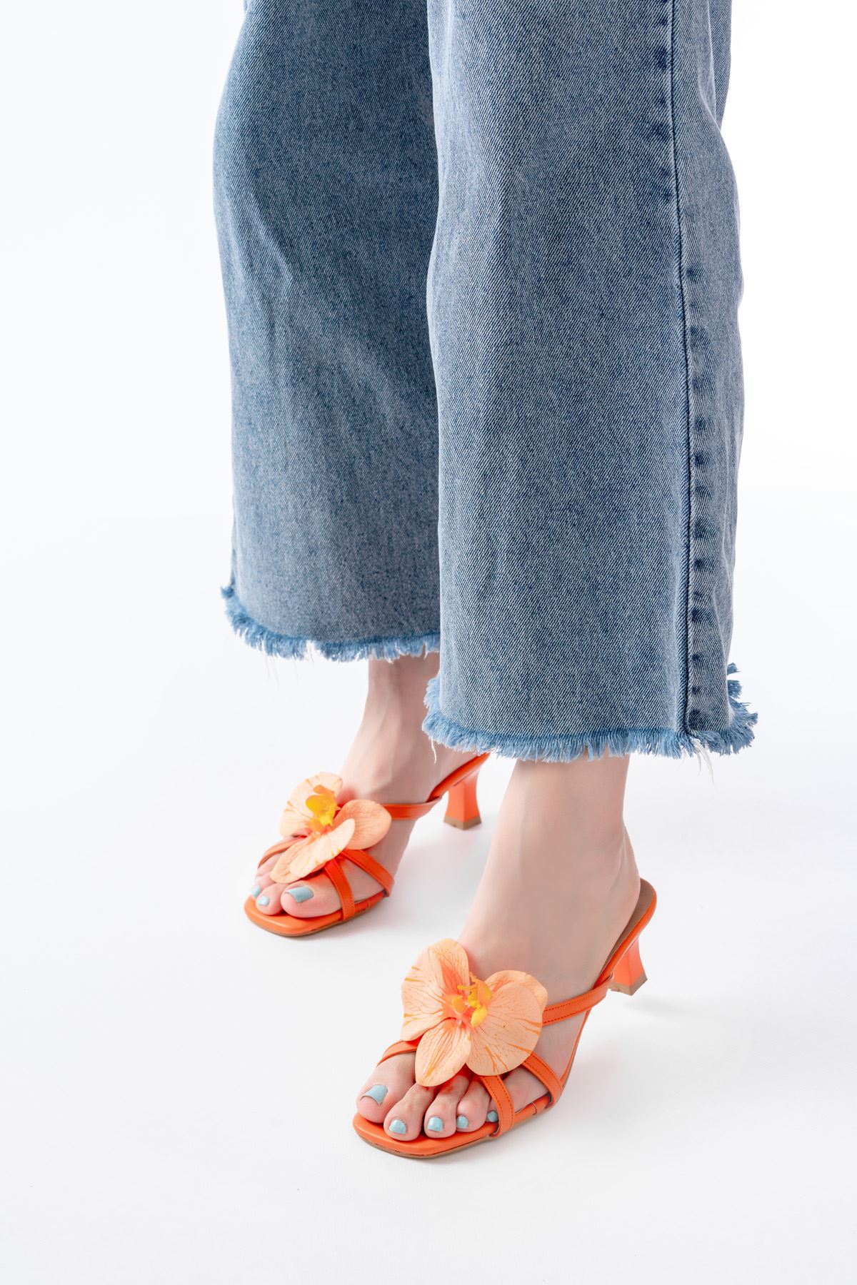 S-622 Orange Orkide Detaylı İnce Topuklu Kadın Terlik