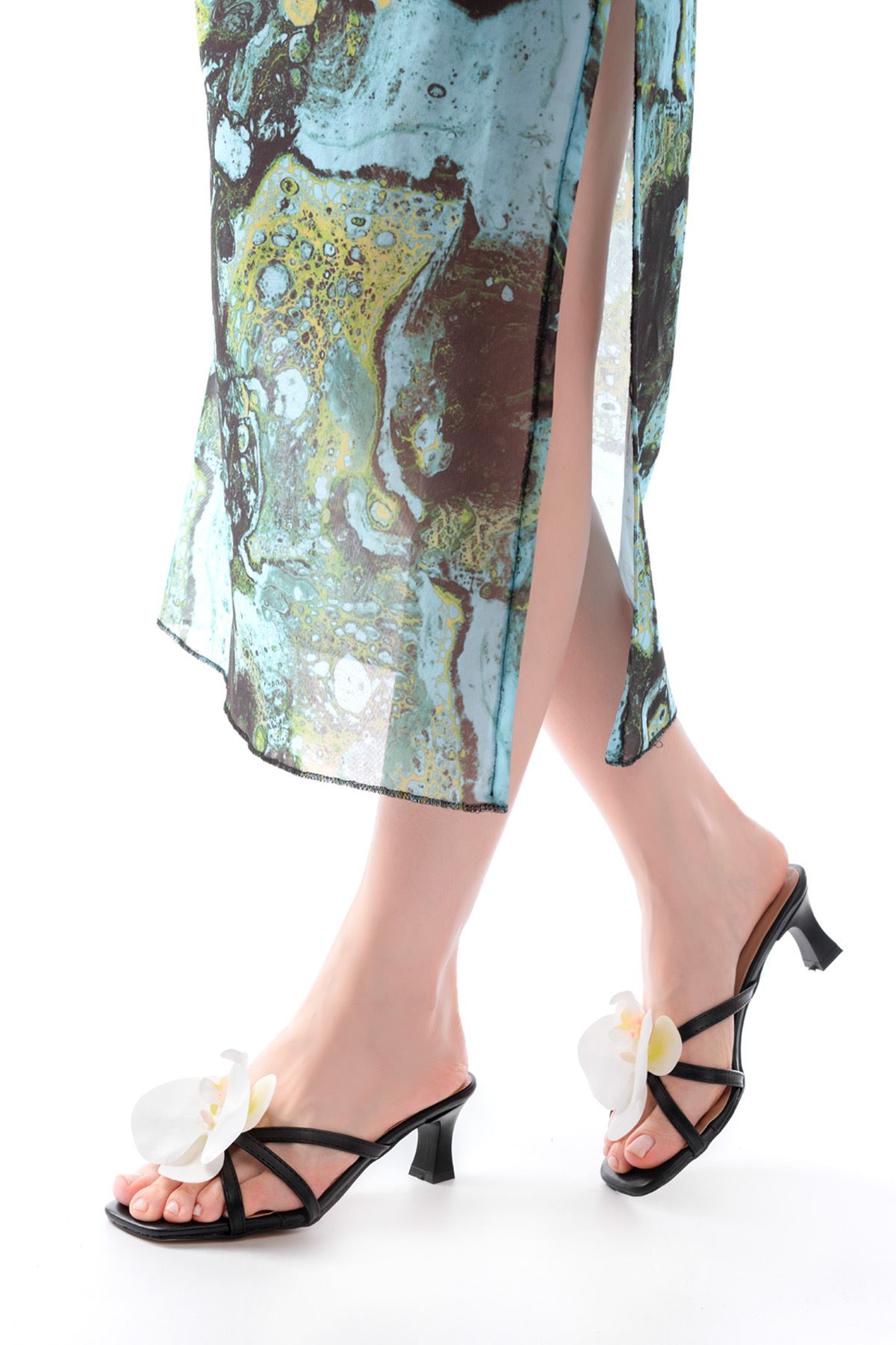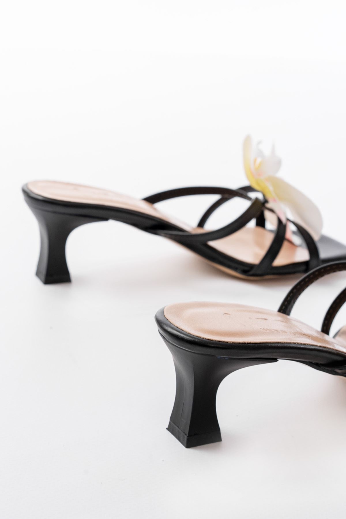 S-622 Siyah Orkide Detaylı İnce Topuklu Kadın Terlik
