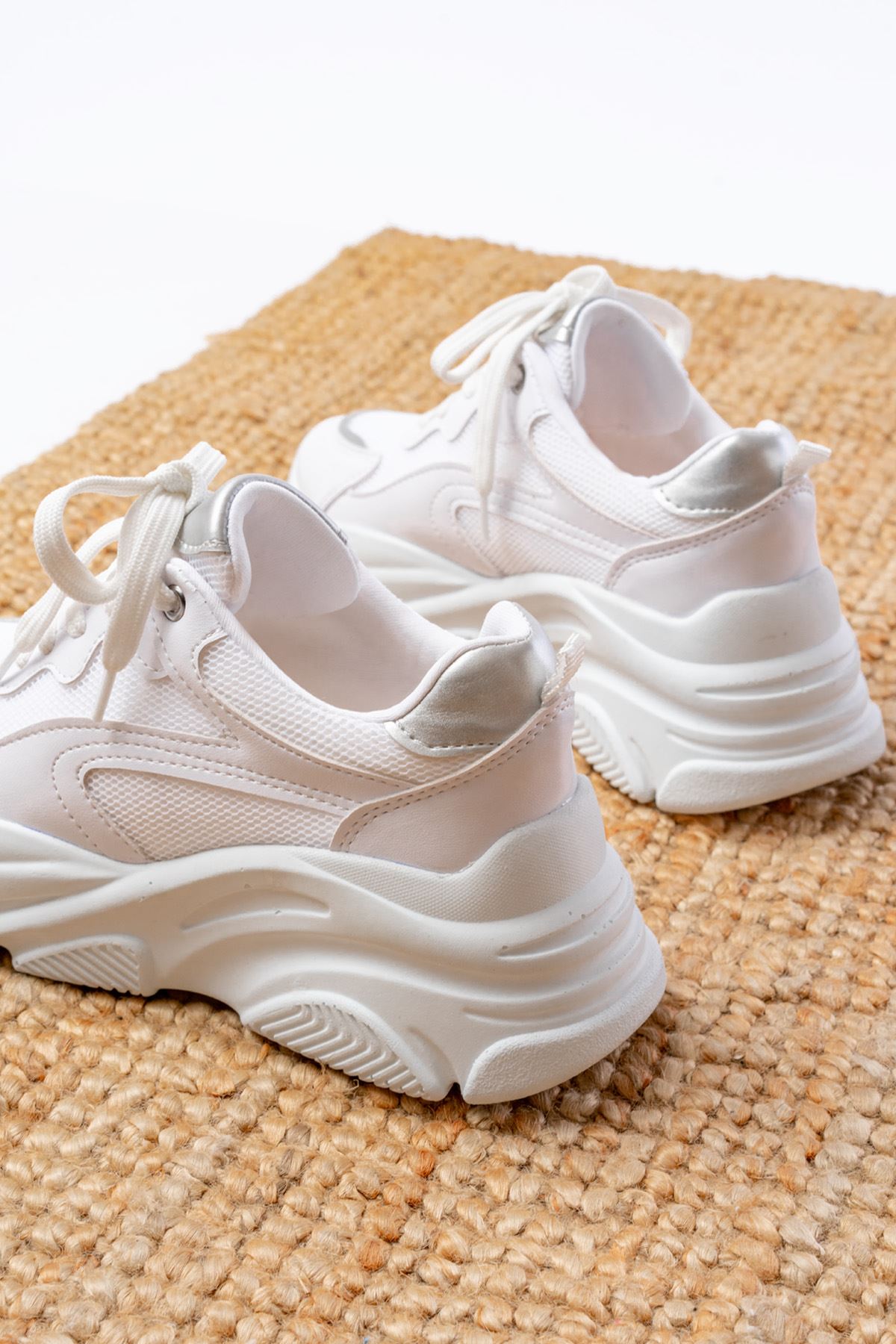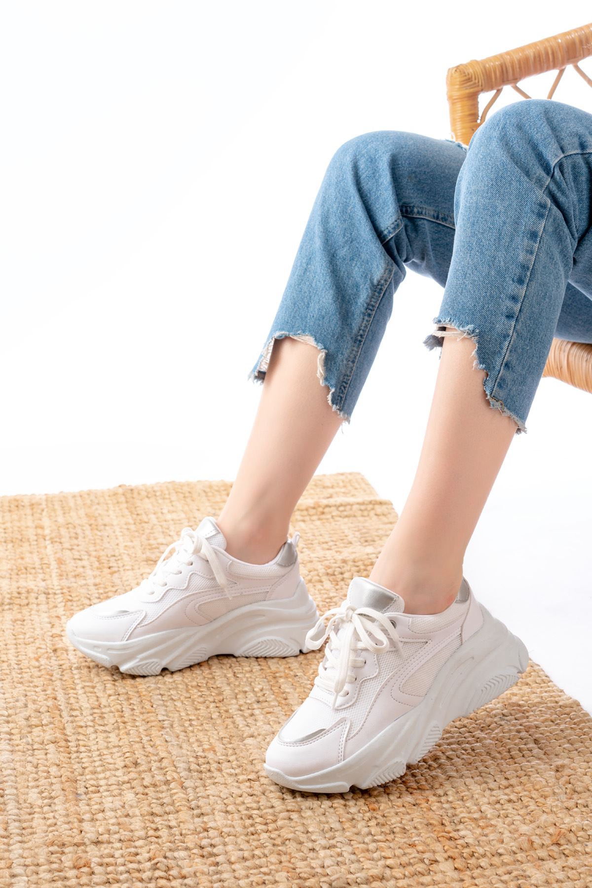 SP-149 Beyaz Gümüş Bağcıklı Fileli Günlük Spor Ayakkabı