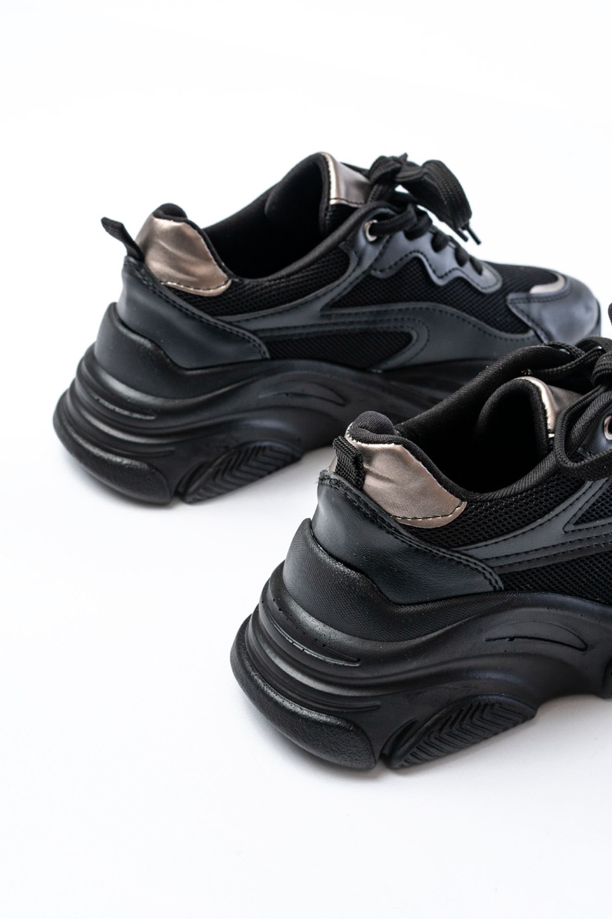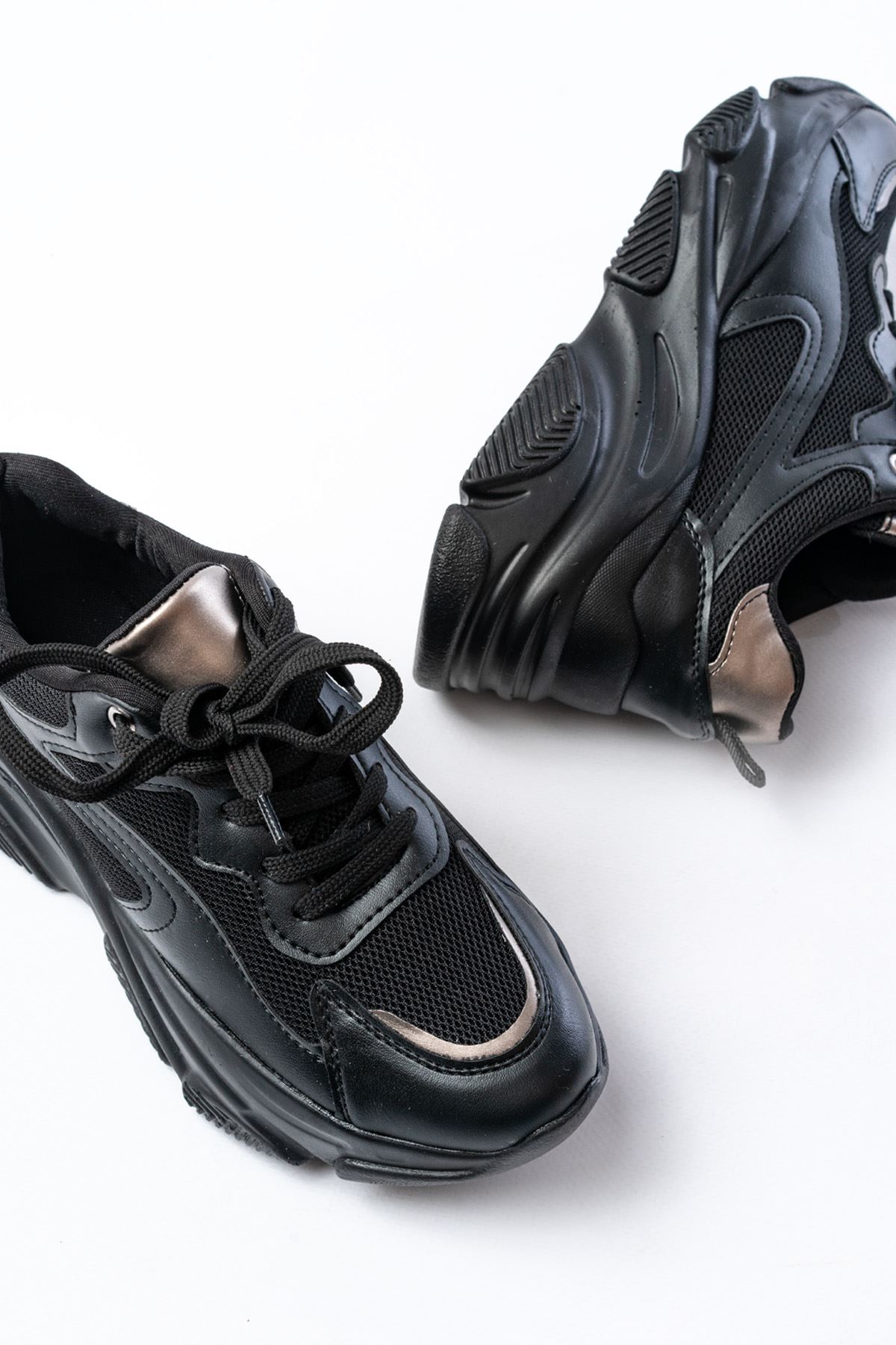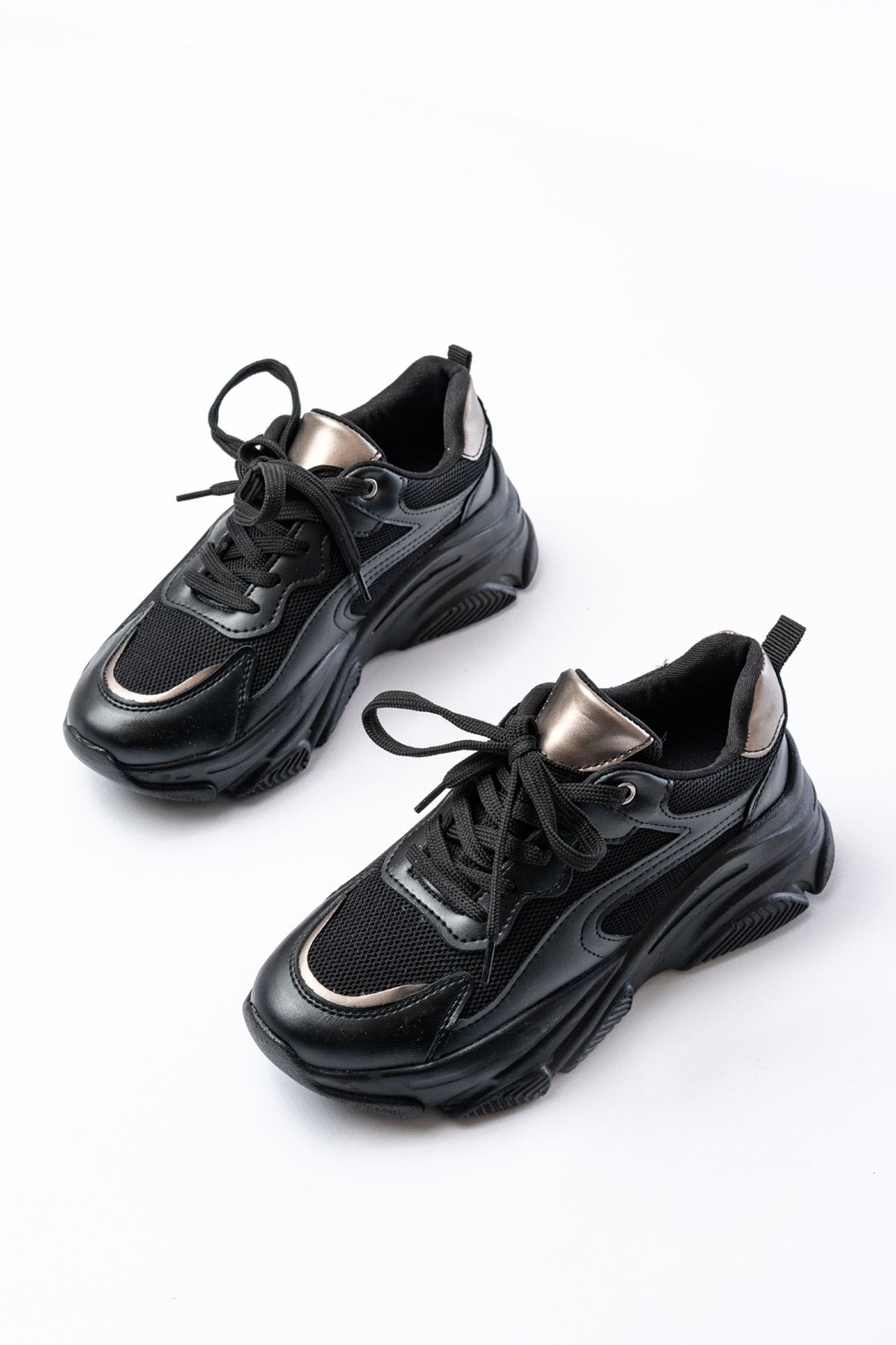 SP-149 Siyah Platin Bağcıklı Fileli Günlük Spor Ayakkabı