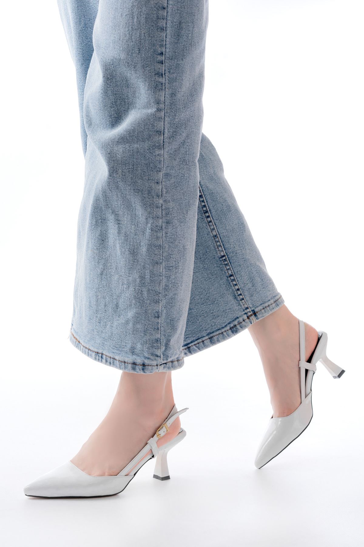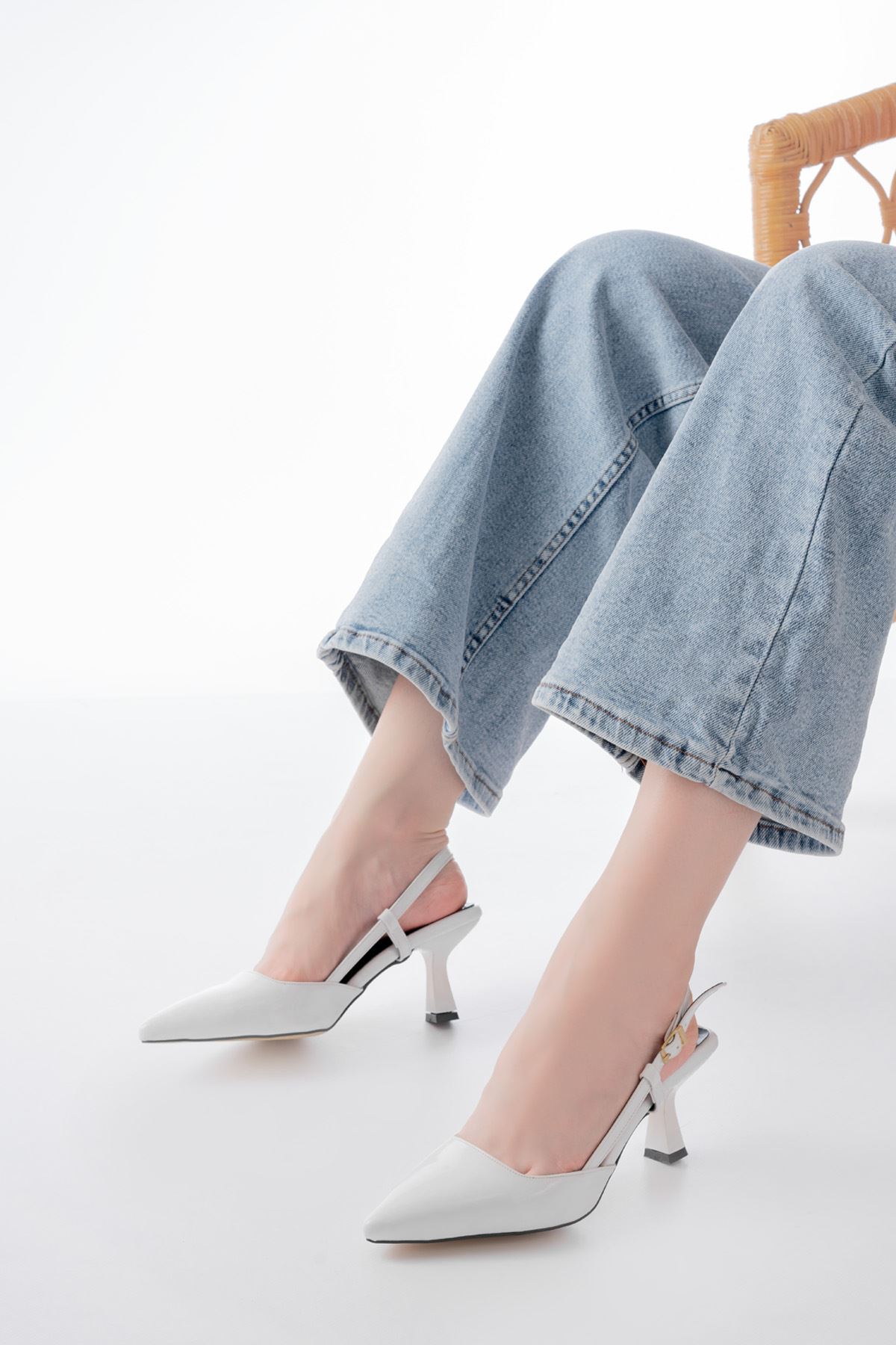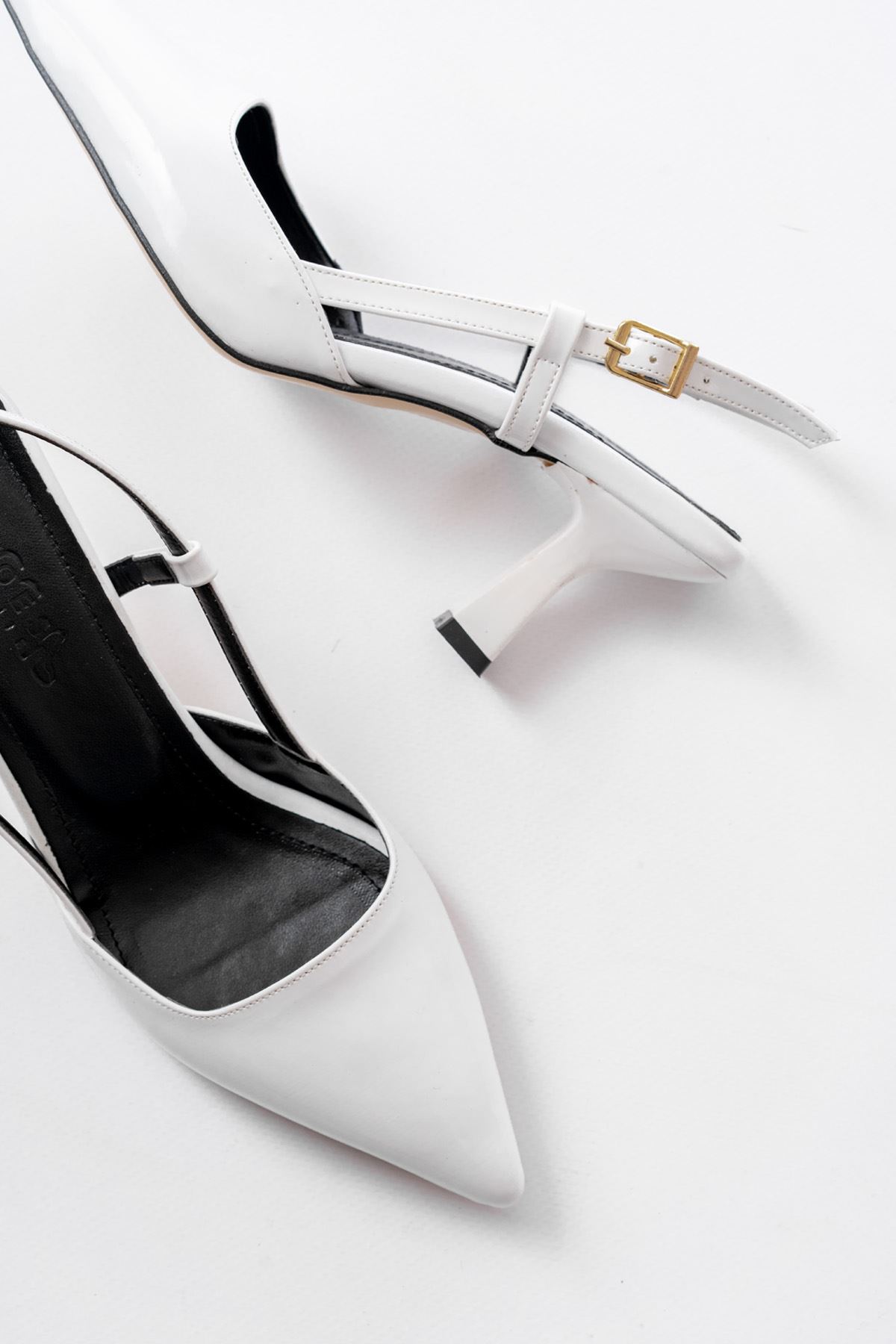ST-002 Beyaz Rugan Günlük 7 cm Topuklu Bayan Ayakkabı