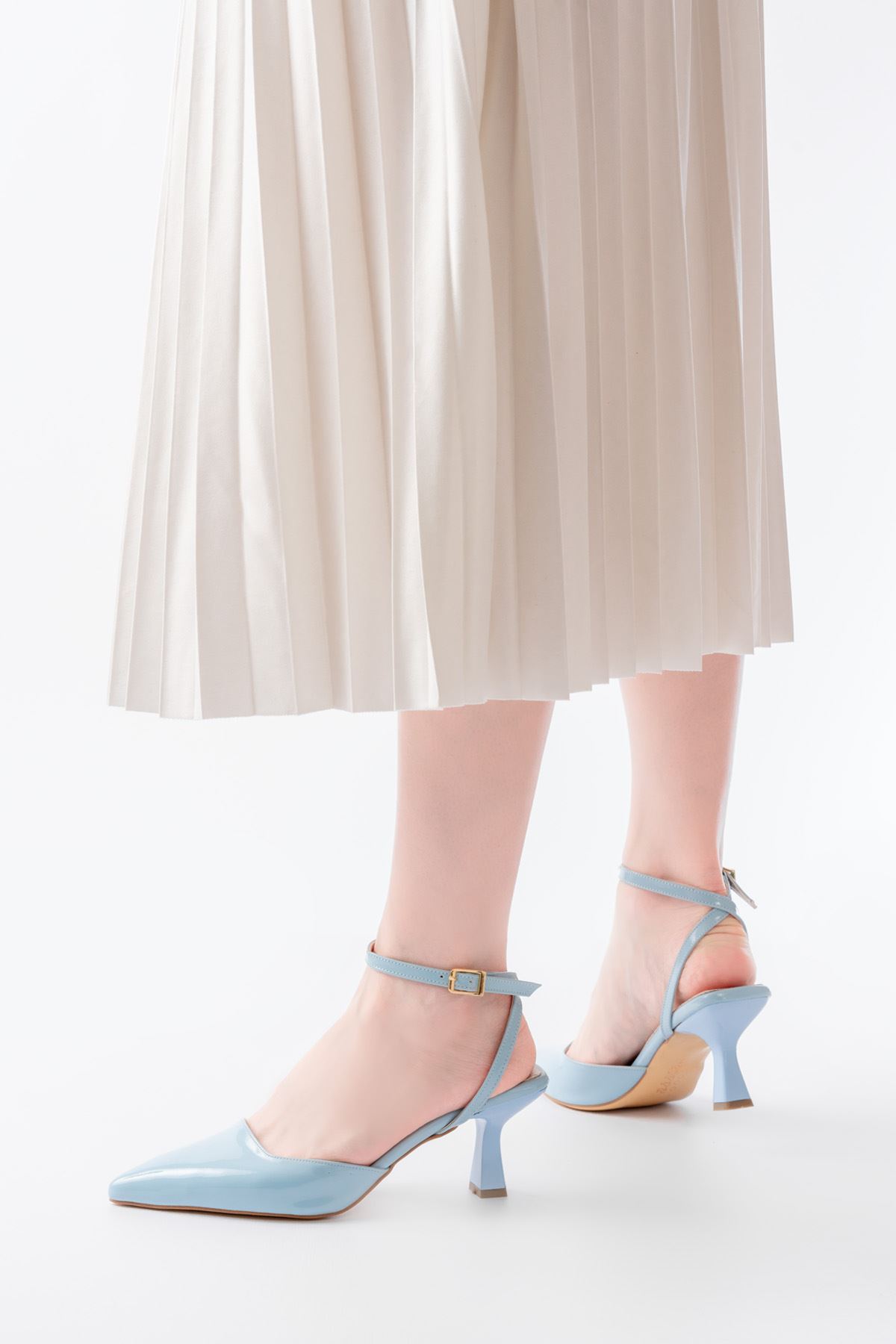 ST-004 Bebe Mavi Rugan Günlük 7 cm Topuklu Bayan Ayakkabı